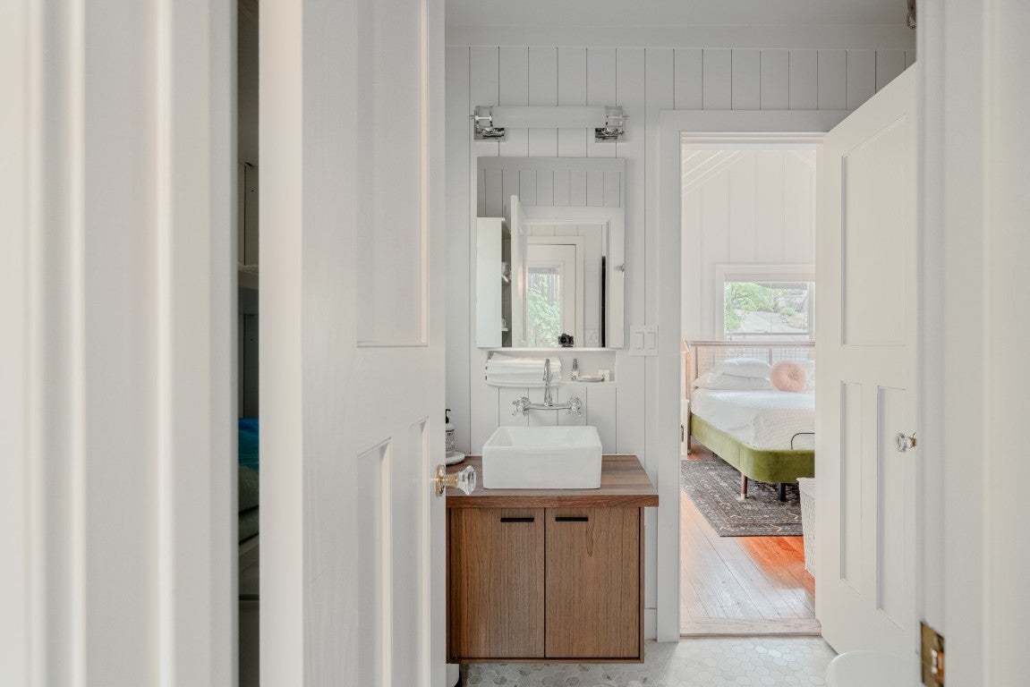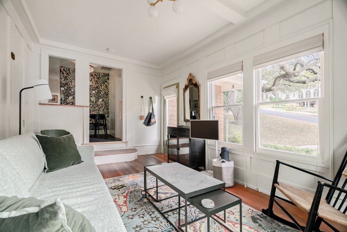 Under the shade of a magnificent heritage oak, this jewel-box residence blends timeless craftsmanship with every modern comfort. The perfect pied-a-terre, this Travis Heights retreat offers an elegant alternative to downtown condos, without the high-rise setting or hefty HOA fees. It’s a charming, low-maintenance landing pad that delivers a true lock-and-leave lifestyle without compromising on character or location. Whether for game days at UT, weekends on South Congress, or simply as a private Austin escape, this home feels as practical as it is enchanting. A custom-made front door with vintage hardware opens to interiors where master-craftsman crown molding, hand-carved beams, and antique lighting meet thoughtful updates. This one-bedroom, one-and-a-half-bath home has been fully reimagined in recent years, boasting all-new systems—HVAC with updated ducts and vents, electrical panel and wiring, plumbing lines, spray foam insulation, and a tankless hot water heater—creating a lifestyle of lock-and-leave ease. The living room’s faux beams and dual-glazed picture window invite natural light, while the kitchen is outfitted with marble backsplash, instant hot water filtration, and Sub-Zero refrigeration. The bedroom is crowned by an open-beamed ceiling with a rewired antique chandelier, brass sconces, and custom shades, with crystal Baldwin hardware adding elegance. Every finish, from marble to wood counters to the carefully curated fixtures, strikes a balance between historic charm and modern ease. Outside, you’ll find a gated section tucked away for your storage needs. Cedar siding offers timeless curb appeal. Travis Heights is one of Austin’s most beloved neighborhoods, walkable to South Congress and the Lady Bird Lake trail, minutes to Downtown and the airport. If you’re looking to fly in, settle in, and start enjoying Austin right away (whether you’re here for a long weekend, game day, or just your favorite season), this home is designed to make it effortless.