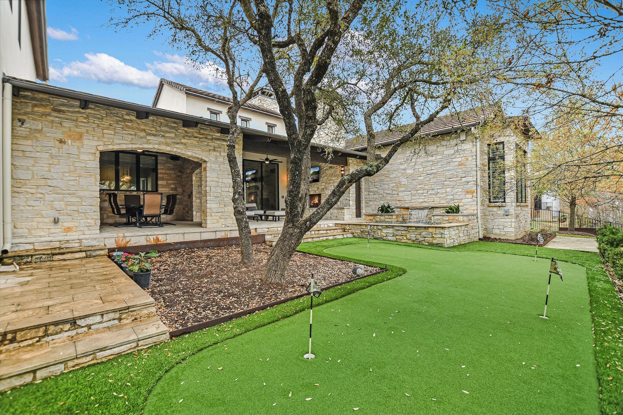 4700 Monte Carmelo Place showcases amazing design and top-tier materials throughout. The living room provides a sophisticated sanctuary, where a welcoming fireplace offers comfort and warmth, complemented by the grandeur of a high ceiling adorned with rich beamed detailing. Culinary artistry finds its home in the exquisitely appointed kitchen, featuring a striking backsplash and a generously sized kitchen island, perfect for gathering and preparation. This space is equipped with a high-end range oven, custom hood, and elegant shaker cabinets, all beneath a distinctive wood ceiling. A Large Butler Pantry is also conveniently located behind the kitchen providing an ideal space for a Coffee Bar and Caterer use when entertaining. Retreat to a primary bathroom designed for ultimate relaxation, offering a spacious tiled walk in shower for invigorating starts to the day and a luxurious soaking tub, providing a tranquil escape for unwinding. The property encompasses four secondary bedrooms, each with an ensuite bath, in addition to 2 well-appointed half baths, ensuring comfort and privacy for all. Convenience is paramount with three dedicated garage spaces, and the exterior boasts a welcoming covered porch and patio. A curved driveway offers a grand arrival, while the outdoor living space, complete with a large spa, putting green, & covered outdoor living & dining areas, provides an idyllic setting for leisure and outdoor entertainment overlooking Little Barton Creek. This residence within the gated community of Spanish Oaks offers an opportunity to embrace a lifestyle of sophisticated comfort and serene indulgence. HOA Fee includes Access to community pool & private fish pond. Spanish Oaks Country Club membership is not included in the HOA Fee. Club Membership is available to home owners for additional fees.