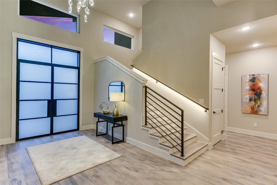 A showstopper in every sense, this CCR Custom Home offers the pinnacle of modern luxury and intelligent design within the exclusive community of Shady Tree Estates. Set upon a private, one-acre lot, this new construction masterpiece seamlessly blends elegant aesthetics with unparalleled functionality, all thoughtfully integrated through programmable smart features that control everything from lighting and security to the Sonos sound system, sprinkler system, and garage doors. Step inside to be greeted by beautiful LED accent lighting that highlights the home's sophisticated details and craftsmanship at every turn. The gourmet kitchen is a chef's dream, featuring a commercial-grade, built-in KitchenAid refrigerator, a professional double oven, a warming drawer, and a wine cooler, making it fully equipped for any culinary adventure or large-scale entertaining. Retreat to the serene primary suite, a sanctuary designed for ultimate relaxation. From the bedroom, a private sliding door opens directly to the back patio, offering a seamless transition to the outdoors. The spa-like bath provides an even deeper sense of calm, overlooking a tranquil courtyard complete with a soothing water feature. Organization is elevated to an art form in the spacious master closet, which is full of custom-built shelving and double dressers. The perfect marriage of indoor and outdoor living is realized in the private, landscaped backyard. The covered patio features a built-in outdoor kitchen, including a gas grill, sink, and mini-refrigerator, creating an ideal setting for entertaining guests or enjoying a peaceful evening. Every detail, from the carefully considered layout to the high-end finishes, demonstrates CCR Custom Homes' commitment to quality and luxury living.