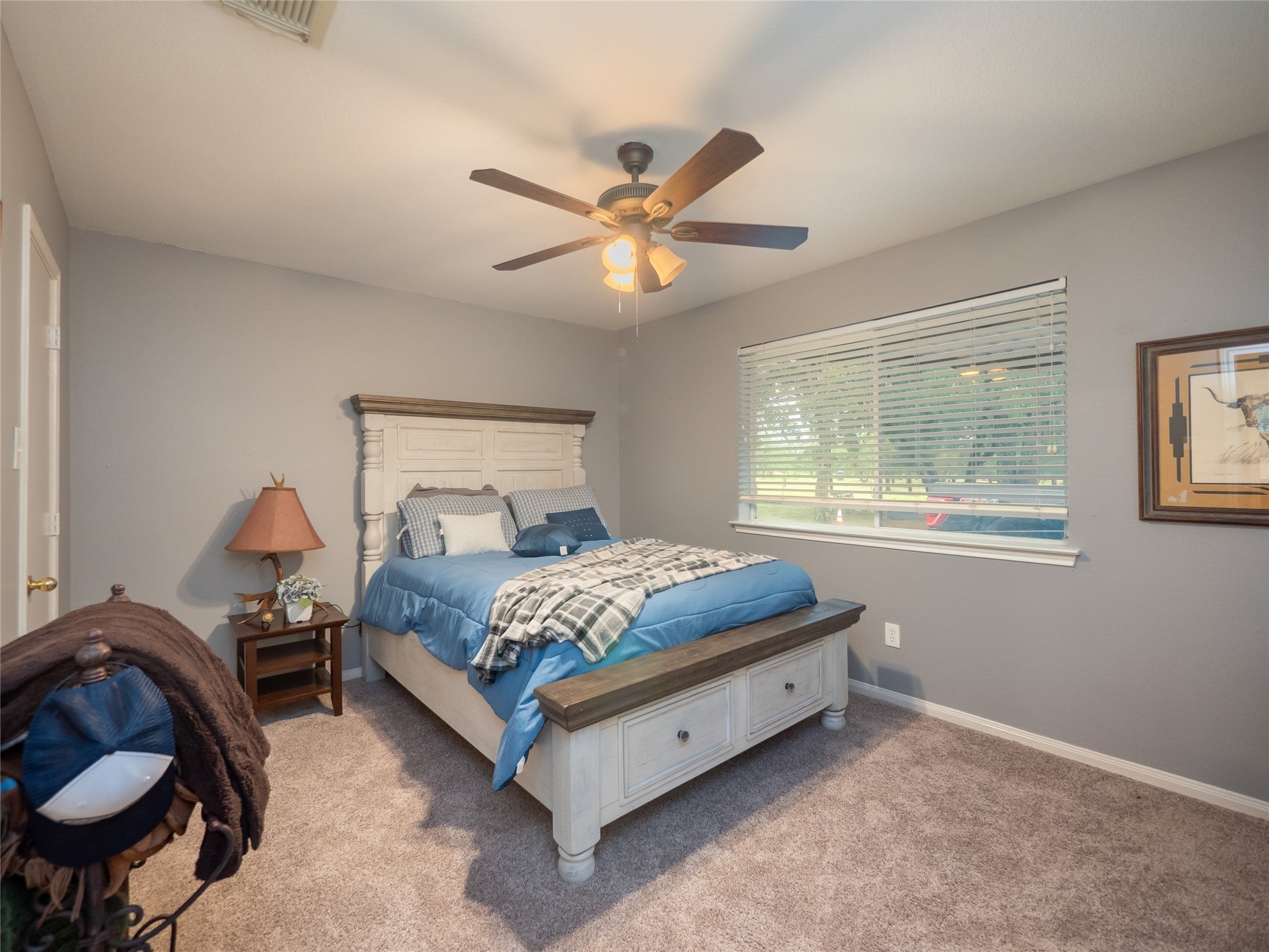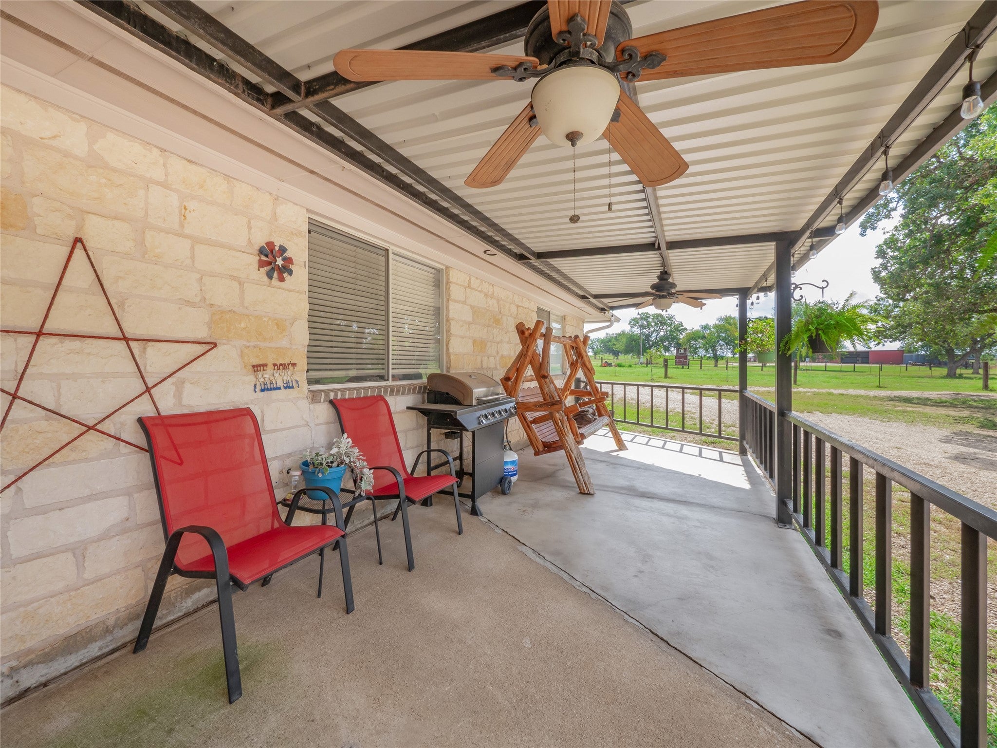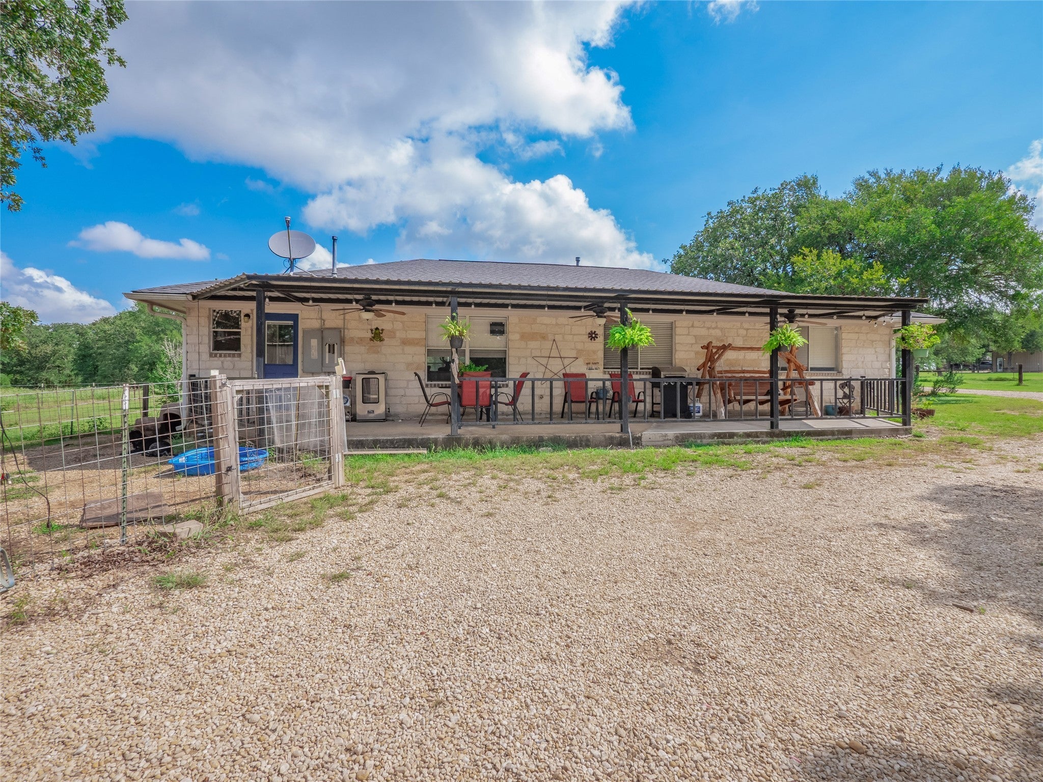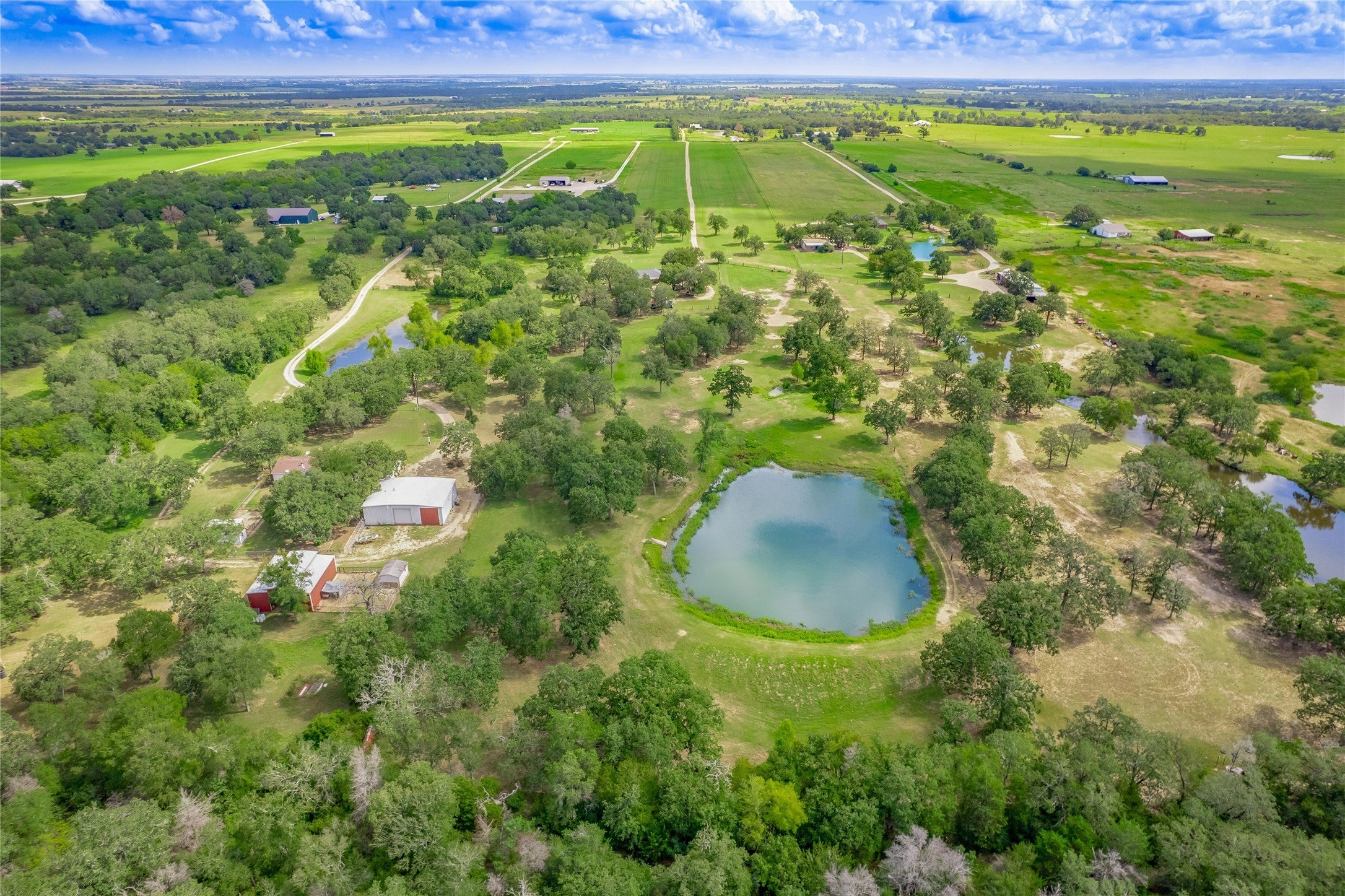 Experience peaceful country living on this picturesque 20.81-acre ranch, where mature oaks, open pastures, and rural charm create the perfect escape. A circular driveway welcomes you to the property, which features a spacious 3-bedroom, 2-bath home with 1,791 square feet of living space. Relax and take in the views from the large, covered back porch that spans the width of the home, overlooking two serene tanks offering great fishing and the surrounding landscape. Inside, the galley-style kitchen includes a gas stove and opens to a cozy dining area. The generous living room is highlighted by vaulted beam ceilings, adding character and warmth. The primary suite offers a large walk-in shower and a spacious vanity, while two additional bedrooms share a full bath. Ideal for livestock, equipment, or hobbies, the property also includes a 20x30 garage with a metal roof and walls, offering durable and secure storage. Approximately 15 acres of coastal hay pasture enhance the ranch's agricultural potential. This well-rounded property combines functionality with natural beauty—ready for your next chapter in country living.