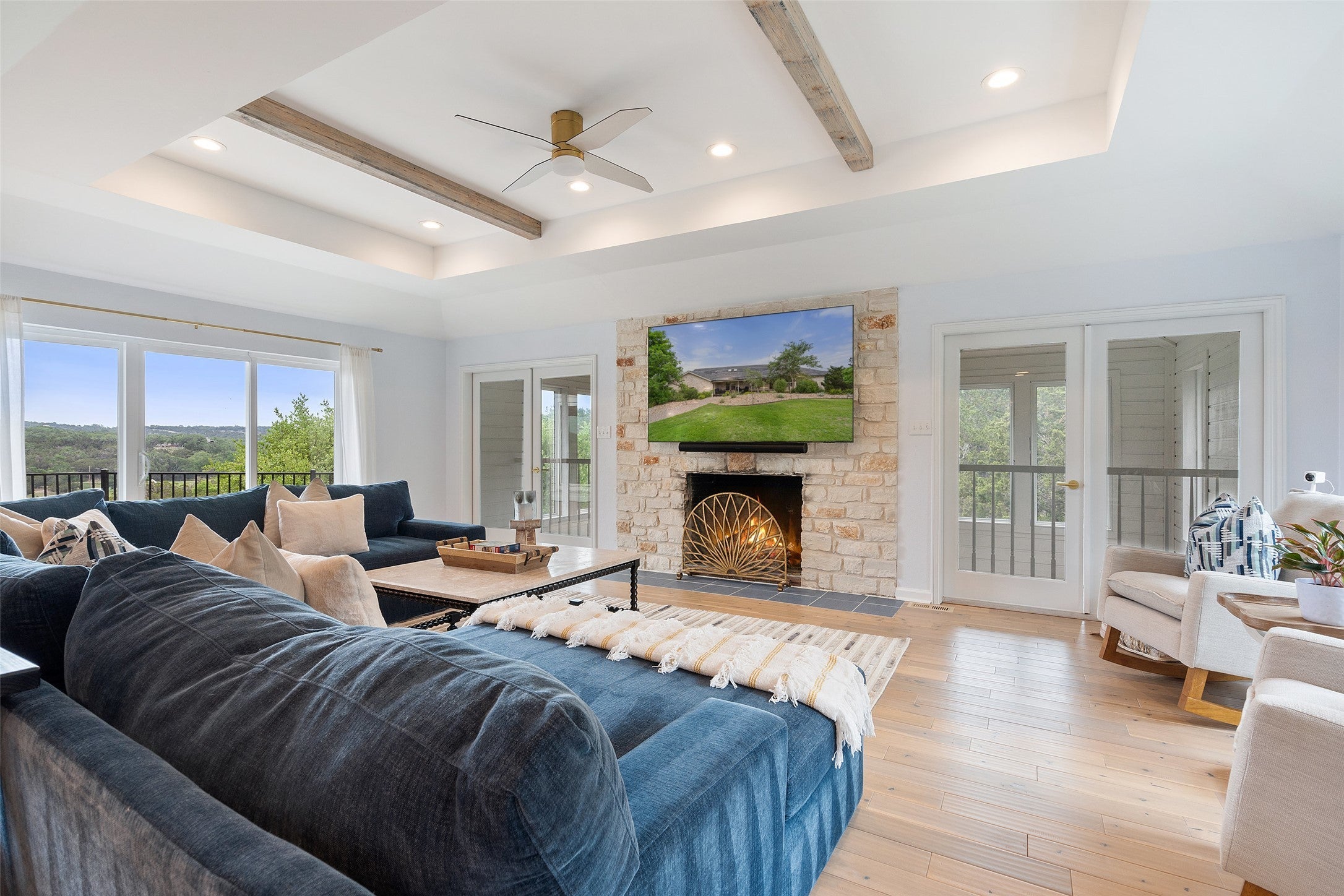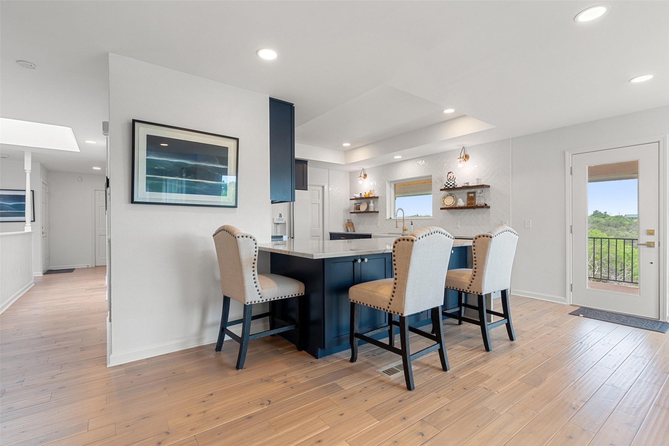 Welcome to 105 Stonegate — a beautifully remodeled Hill Country retreat tucked into one of Dripping Springs’ most lovely neighborhoods, Stonegate. This home has been thoughtfully transformed from top to bottom, blending modern design with the relaxed charm that defines Dripping Springs living. Step inside to discover light-filled, open-concept spaces where every detail has been elevated — from updated wood flooring and designer fixtures to a refreshed kitchen that truly anchors the home. The kitchen features sleek quartzite countertops, upgraded cabinetry, and an open layout built for both everyday living and effortless entertaining. It flows seamlessly into the main living area, creating a warm, inviting space perfect for hosting or unwinding. The primary suite offers a private escape with a spa-inspired bathroom renovation — clean lines, modern finishes, and a sense of calm that makes it feel like your own personal retreat. Secondary bedrooms are equally refreshed, offering flexibility for family, guests, or a home office. Outside, the property captures the essence of Hill Country living — room to breathe, space to gather, and the kind of setting that makes you want to slow down and stay awhile. Whether you’re enjoying morning coffee and the view or evening sunsets, this home delivers both comfort and connection to nature. Located just minutes from the heart of Dripping Springs, you get the perfect balance of peaceful living with easy access to local favorites, wineries, and top-rated schools. Fully remodeled. Thoughtfully designed. Effortlessly livable. 105 Stonegate is more than a home — it’s a fresh start in one of Texas’ most desirable communities.