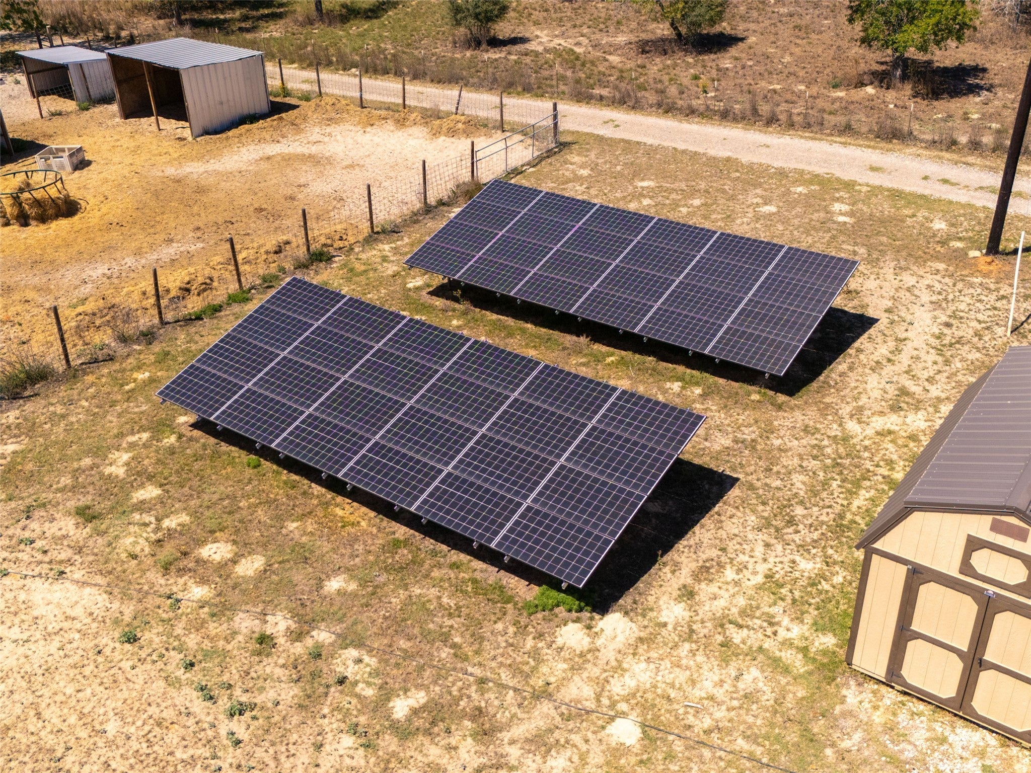 Unique opportunity to live off the grid in this beautiful 3/2.5/2+ home. This beauty shows off its large primary suite, home office, concrete floors, exquisite kitchen with Electrolux double ovens, convection microwave, and dishwasher. Refrigerator conveys! A covered patio in front and rear patio with hot tub will keep you outdoors enjoying the serene views. Fully irrigated and landscaped yard. A new 1,500 s/f shop with double high bays /powered doors is also home to a 1/1 guest apartment! The solar arrays regularly sell electricity back to the utility, and the well and aerobic septic system are recently inspected.