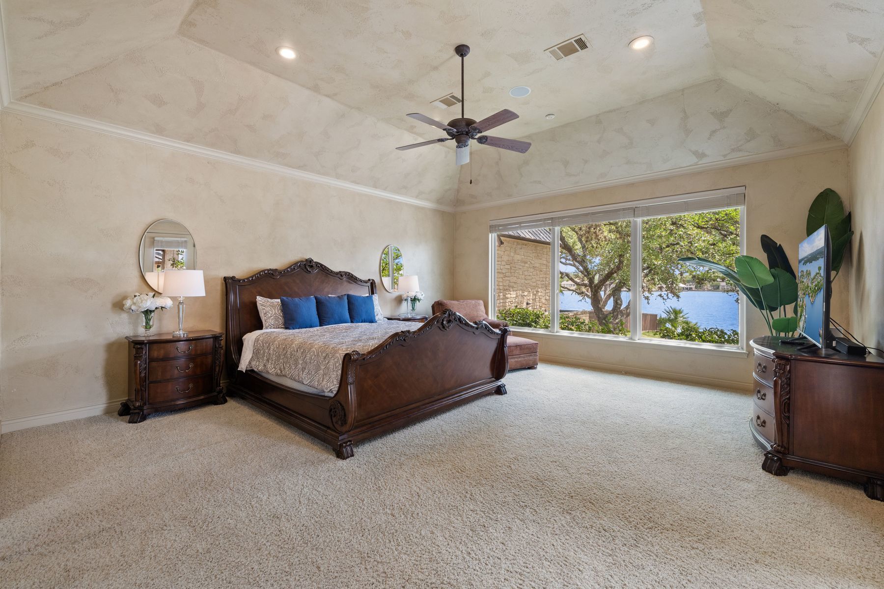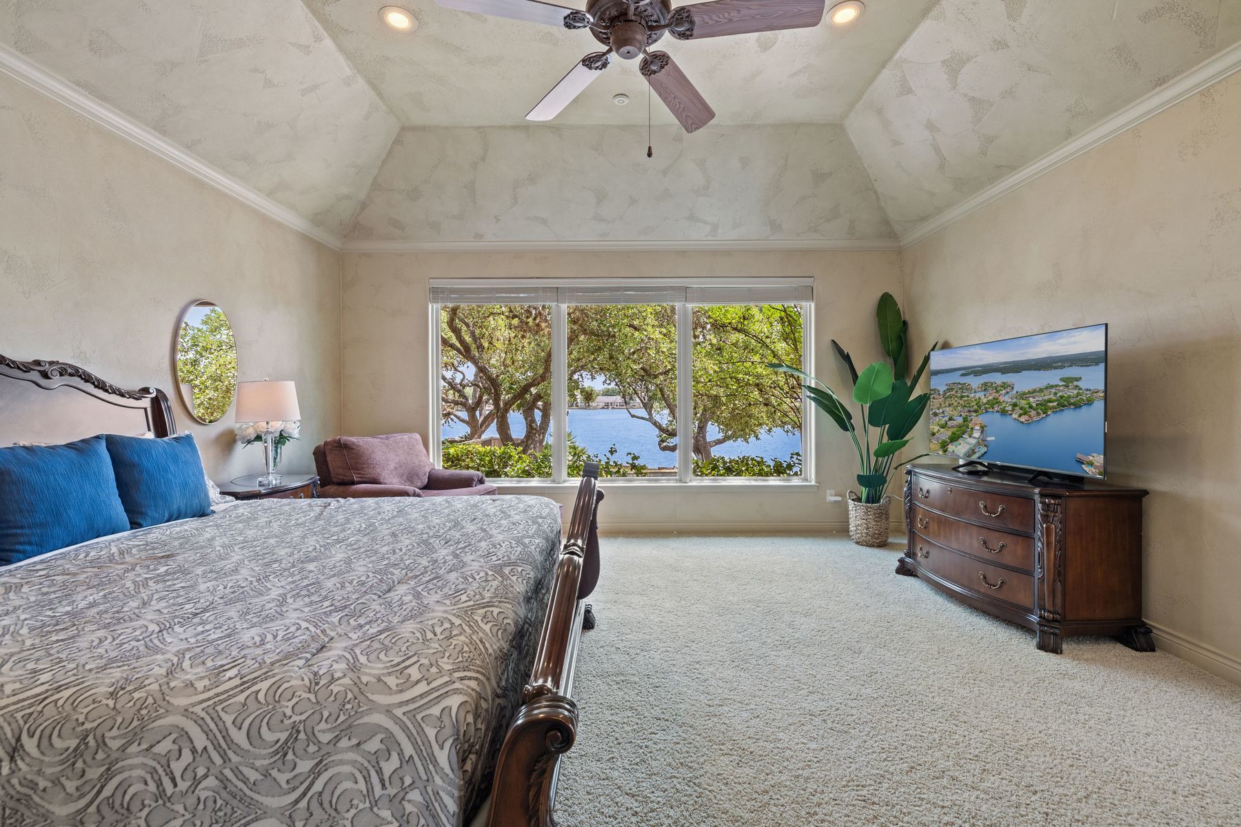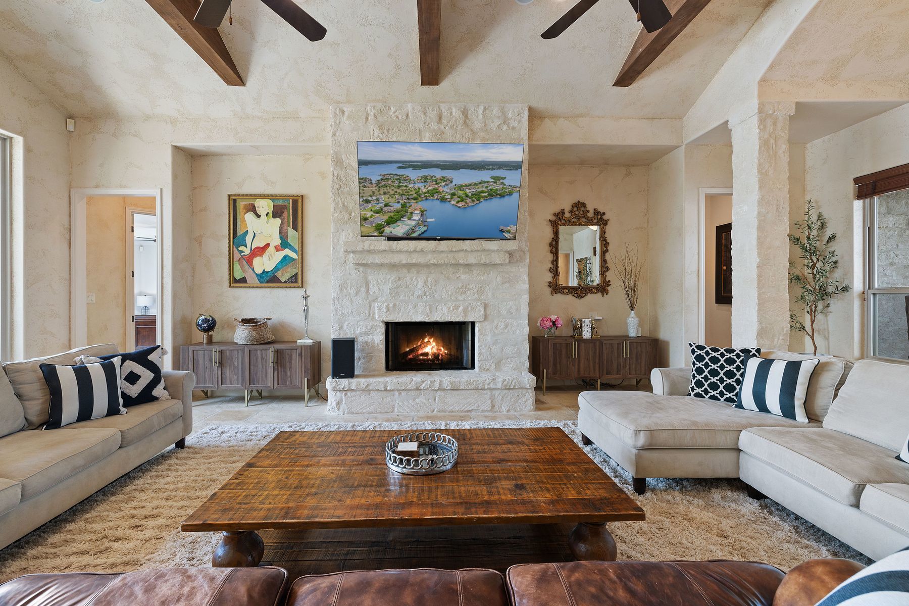113 Wennmohs Place isn’t just a home—it’s a lakefront dream woven with luxury and adventure. This 3,218 sq ft lakefront gem sits on 95’ of east-facing open waterfront along the shores of beautiful Lake LBJ, where the vibrant lake lifestyle unfolds in the heart of Horseshoe Bay. Surrounded by majestic oak trees, this 4-bedroom, 4-bath sanctuary blends rustic charm with modern luxury, offering a front-row seat to shimmering waters and fiery sunrises. Step into an open-concept living room where wood beam ceilings soar above cool travertine flooring, creating an inviting, airy ambiance. Floor-to-ceiling windows frame stunning lake views, bathing the space in natural light. The gourmet kitchen dazzles with granite countertops, custom cabinetry, and a large island, perfect for hosting lively gatherings. The primary suite is a tranquil haven, boasting lake vistas, a spa-like en-suite with dual vanities, and a walk-in closet. Three additional bedrooms, each with full baths, ensure comfort for family or guests. Outside, the lake lifestyle shines. Lounge by the sparkling pool, shaded by ancient oaks, or gather on the expansive covered patio for al fresco dining with waterfront views. The boat house has a hydraulic lift and double jet ski ramps. Horseshoe Bay // Lake LBJ is a favorite destination for Texans, with its endless recreational activities and world class resort amenities. Located just 45 minutes Northwest of Austin and 90 minutes North of San Antonio in the Highland Lakes region of the Texas Hill Country.