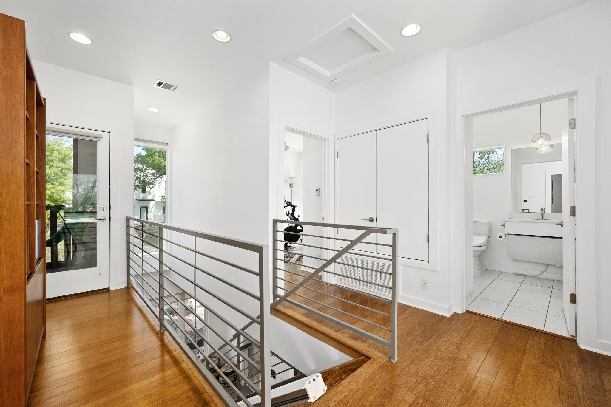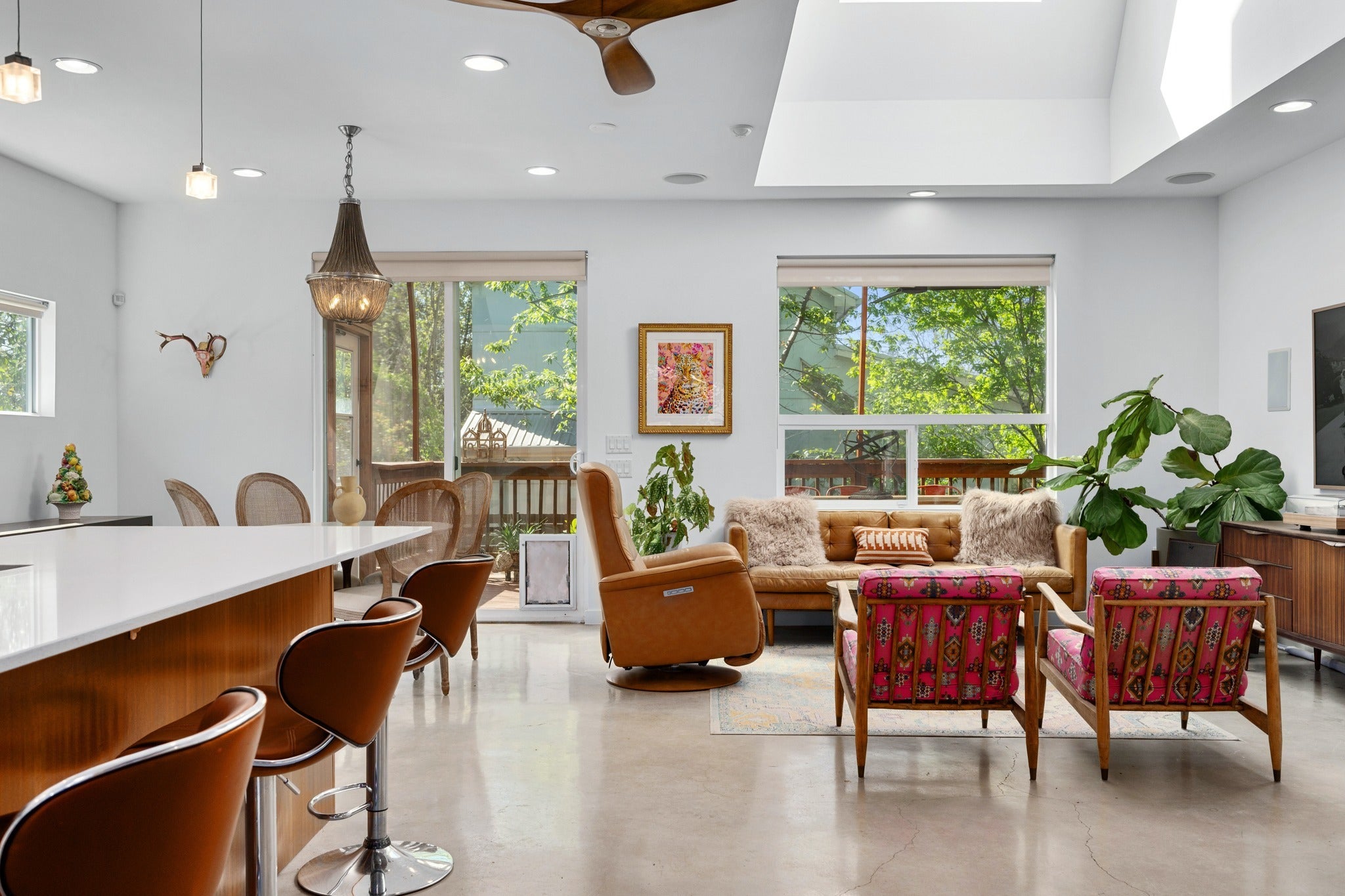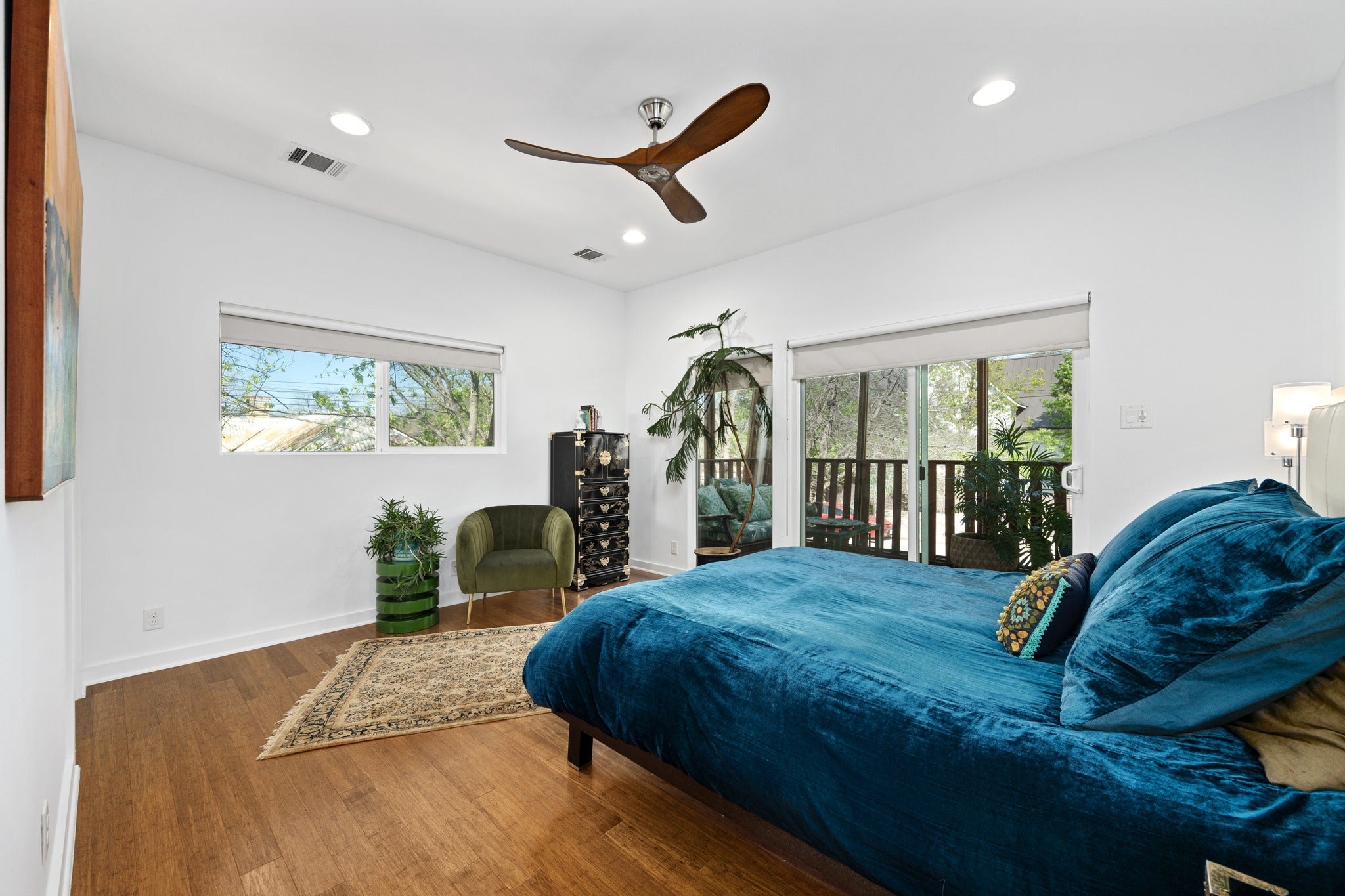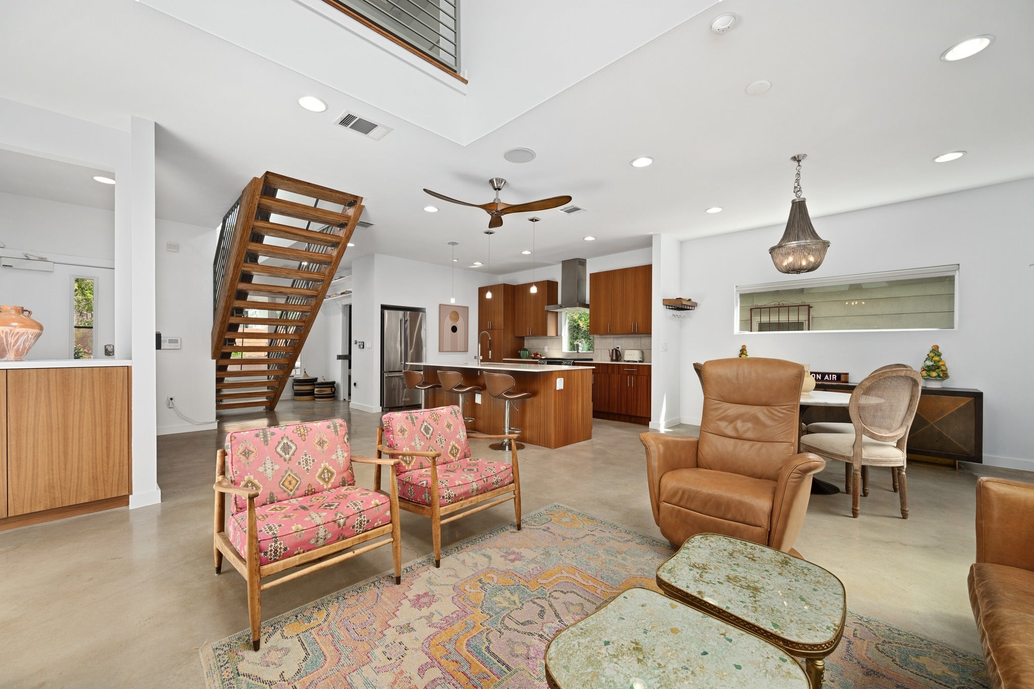 DragonWING isn’t subtle—and it’s not supposed to be. The rooflines and angles give the home its name, creating a silhouette that feels intentional, architectural, and just a little unexpected. Designed by architect Guido Porto, the interiors follow through on that first impression. A two-story living space opens upward to a second story skylight that brings in natural light without the usual heat gain. The effect is bright, cheerful, and comfortable throughout the day. The 3-bedroom, 3-bath layout is flexible and quietly functional, with accessible features fully integrated into the design. Clean lines, thoughtful proportions, and a natural connection between the living, dining, and kitchen spaces create an easy rhythm—one that works just as well for everyday living as it does when the house is full of guests. Two screened porches extend the living space and primary bedroom in a way that actually changes how the home is used. Doors open, people drift outside, and the boundaries between indoors and out start to blur. Multiple seating areas, an outdoor shower, and raised vegetable garden beds add to the outdoor living opportunities. Native landscaping for beauty and wildlife keeps things grounded—lush without asking much in return. Sustainability here isn’t a feature list—it’s integral to the design. Solar panels, rainwater collection, EV charging, energy efficiency, and masterful daylighting all work together in a way that makes sense for the resident and the environment. And then there’s the location. Only two blocks from Sour Duck, The Wheel, Juiceland, Austin Daily Press, LaPlancha, Bennu, Sukha Yoga, Casa de Luz, VAIN salon, FUSE co-working.and a long list of East Austin staples, with UT, Dell Med, rail, and transit all close at hand. Fully fenced front yard with a custom steel automatic gate, plus garage and carport. Completely separate fenced yard from B unit, which is accessed from alley. DragonWING has a point of view—and is awaiting your visit.