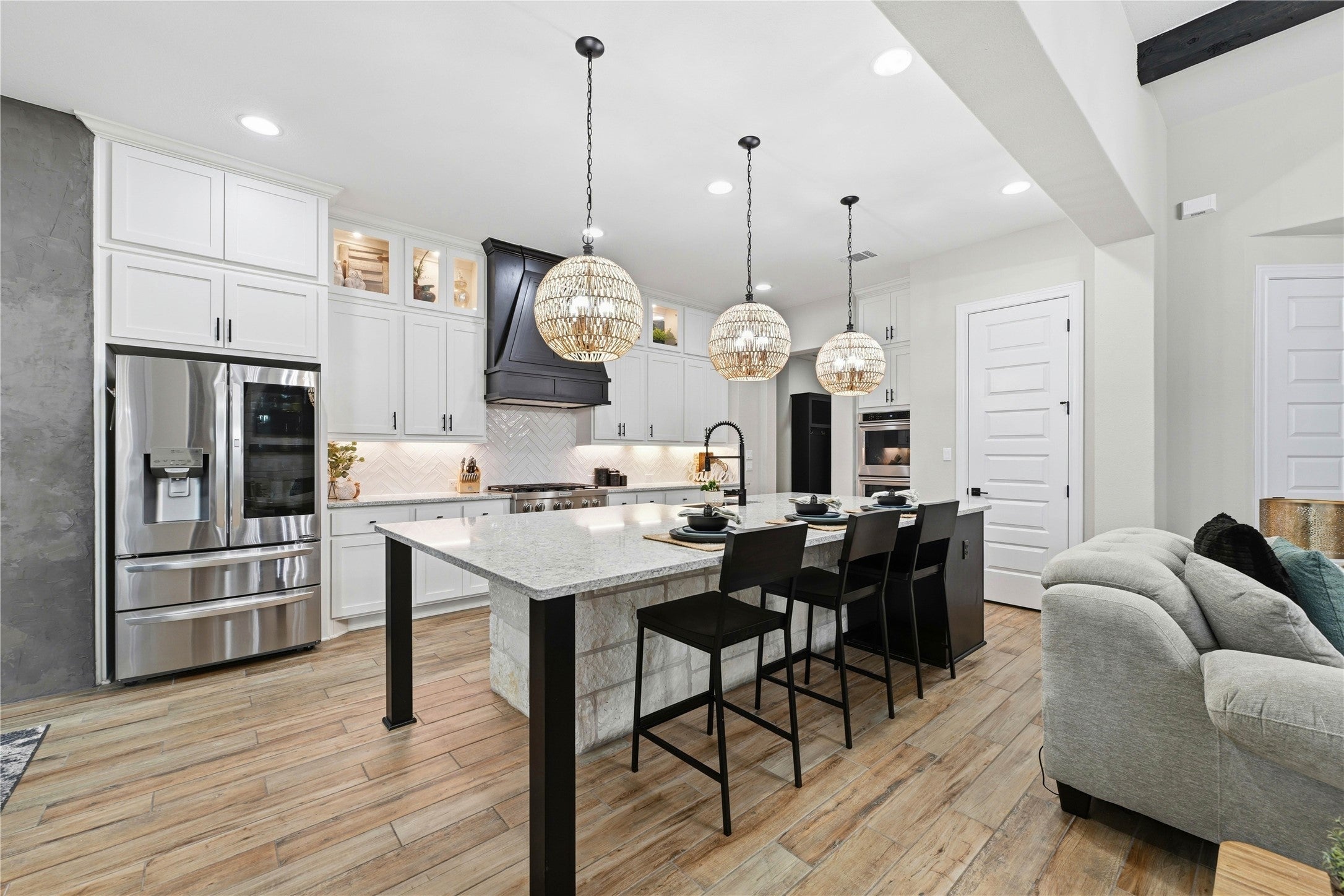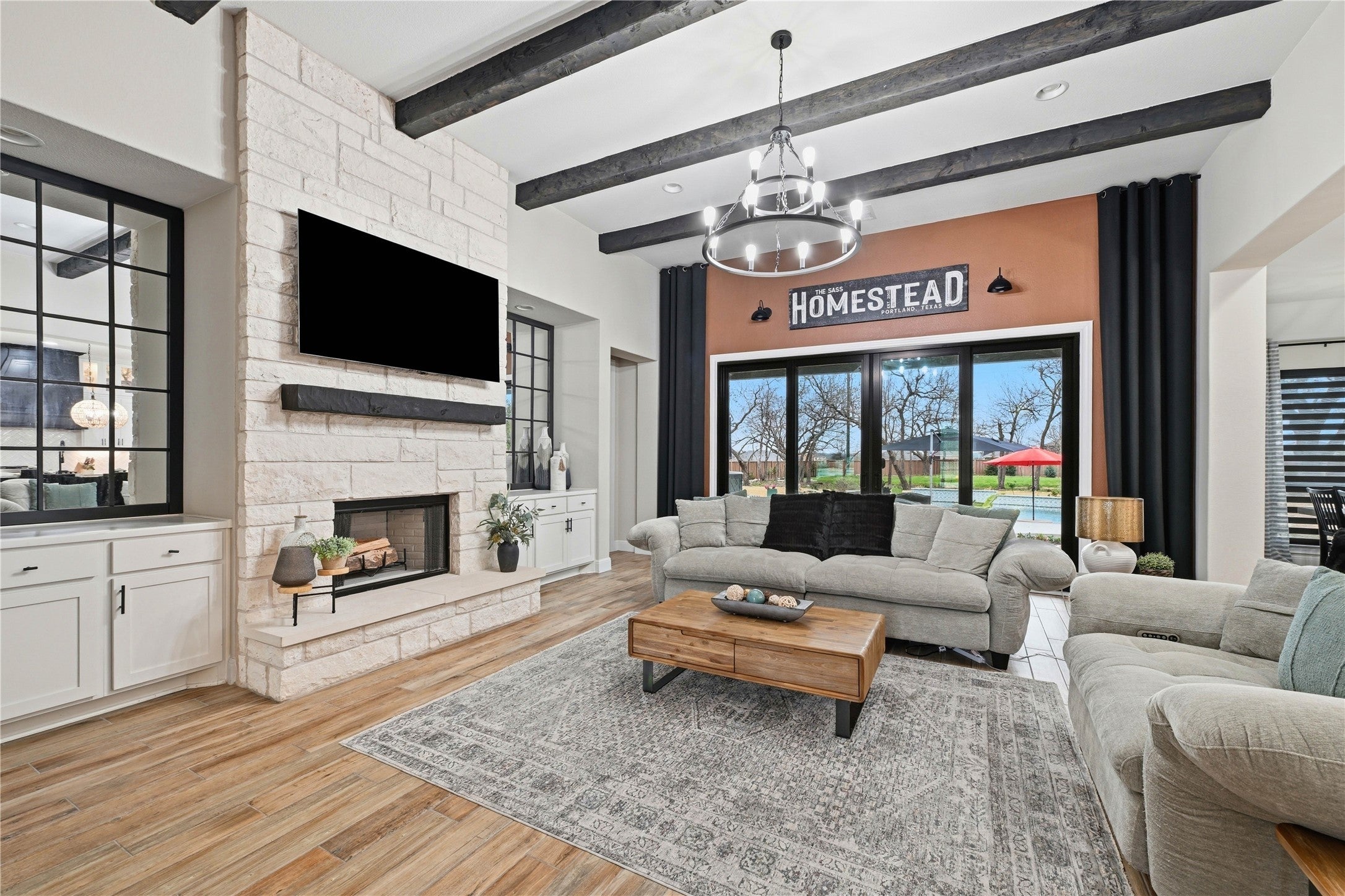 **Motivated Seller** - Welcome to this stunning custom built home in the highly sought-after Highland Village Subdivision where timeless elegance meets everyday comfort. From the moment you step inside, you’re greeted by soaring ceilings, rich architectural beams, and walls of windows that flood the home with natural light including the four panel glass wall to extend an indoor and outdoor living space. The expansive layout offers both grandeur and warmth, creating the perfect setting for entertaining and relaxed living alike. The chef’s kitchen is truly the heart of the home, featuring double ovens, a gas cooktop, abundant floor to ceiling cabinetry, and stylish finishes all opening seamlessly to the impressive living area. A striking stone fireplace anchors the space, while exposed beams add character and charm you won’t find just anywhere. The spacious primary suite is a peaceful retreat with a beautifully designed ensuite bath, offering the perfect place to unwind at the end of the day. Three additional generously sized bedrooms provide flexibility for guests, a home office, or growing households. Step outside and prepare to fall in love. Your private backyard oasis awaits...complete with a sparkling pool paradise, ideal for cooling off on warm Texas days or hosting unforgettable gatherings. The large covered patio creates an inviting outdoor living space for year-round enjoyment. (Bonus: pool furniture, umbrellas and patio storage bin convey). The perimeter of the lot is lined with plenty of trees for added privacy for the years to come. A convenient storage shed adds functionality without sacrificing beauty, and the large lot provides plenty of room to relax and play. Enjoy side facing 3 car garage with storage racks and water softener. This exceptional property blends luxury details, thoughtful design, and resort-style outdoor living all in one of the area’s most desirable neighborhoods. Don’t miss your opportunity to call this dream home yours.