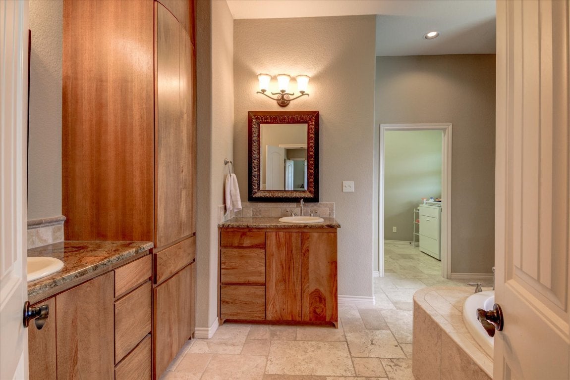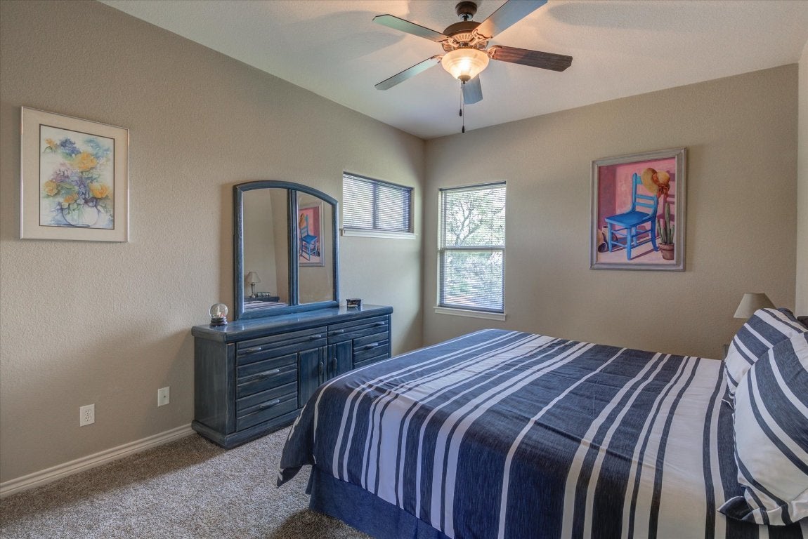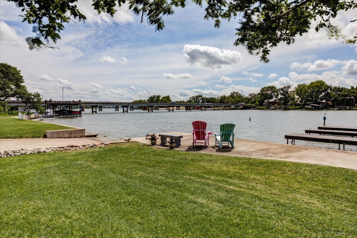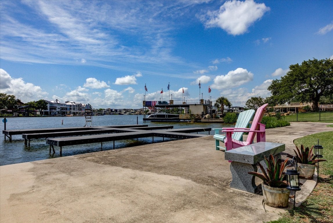 Experience refined lake house living in this stunning Tuscan-style retreat, perfectly positioned on a corner lot in the exclusive Colina Cove community on the constant-level waters of Lake LBJ in Kingsland, Tx. Designed with lake life in mind, this home is just a short stroll—about a tenth of a mile—from the private residents-only boat ramp and day dock, making spontaneous days on the water effortless. Surrounded by mature oak trees and lush, manicured landscaping, the property offers both beauty and privacy—ideal for relaxing after a day on the lake or entertaining guests. Inside, the expansive open floor plan invites gatherings, complete with a versatile flex space perfect for a game room or additional lounge area. The chef’s kitchen is built for hosting, featuring dual islands and sinks to handle everything from casual breakfasts to large lakeside get-togethers. The living area exudes warmth with its recessed lighting and elegant wood coffered ceiling, creating the perfect space to unwind. The primary suite feels like a private retreat, offering spa-inspired amenities including dual vanities, two spacious walk-in closets, a jetted soaking tub, and a separate walk-in shower. With three additional generously sized bedrooms—one conveniently located downstairs and two upstairs—there’s ample space for family and weekend guests alike. Whether you're looking for a full-time residence or the ultimate lake getaway, this home captures the relaxed luxury and easy access to boating that lake house owners dream of.