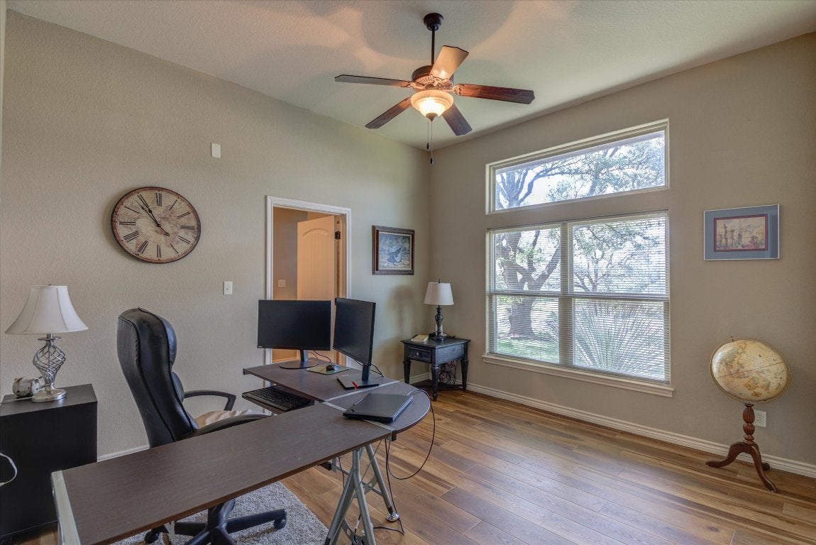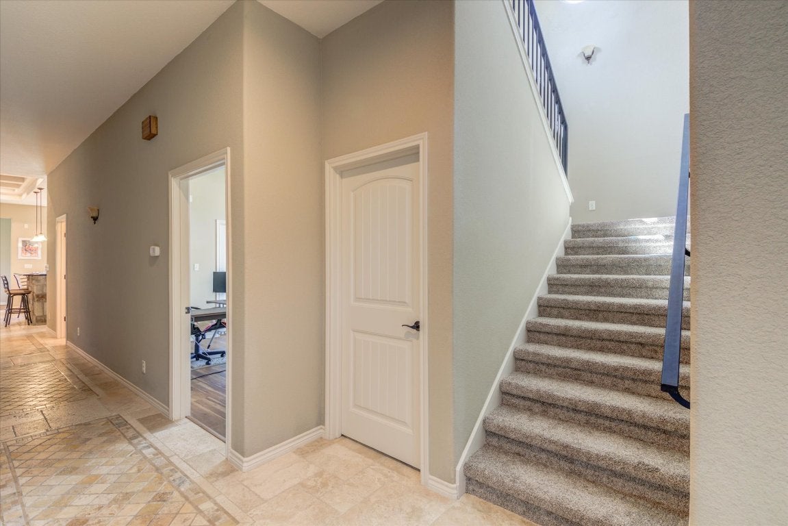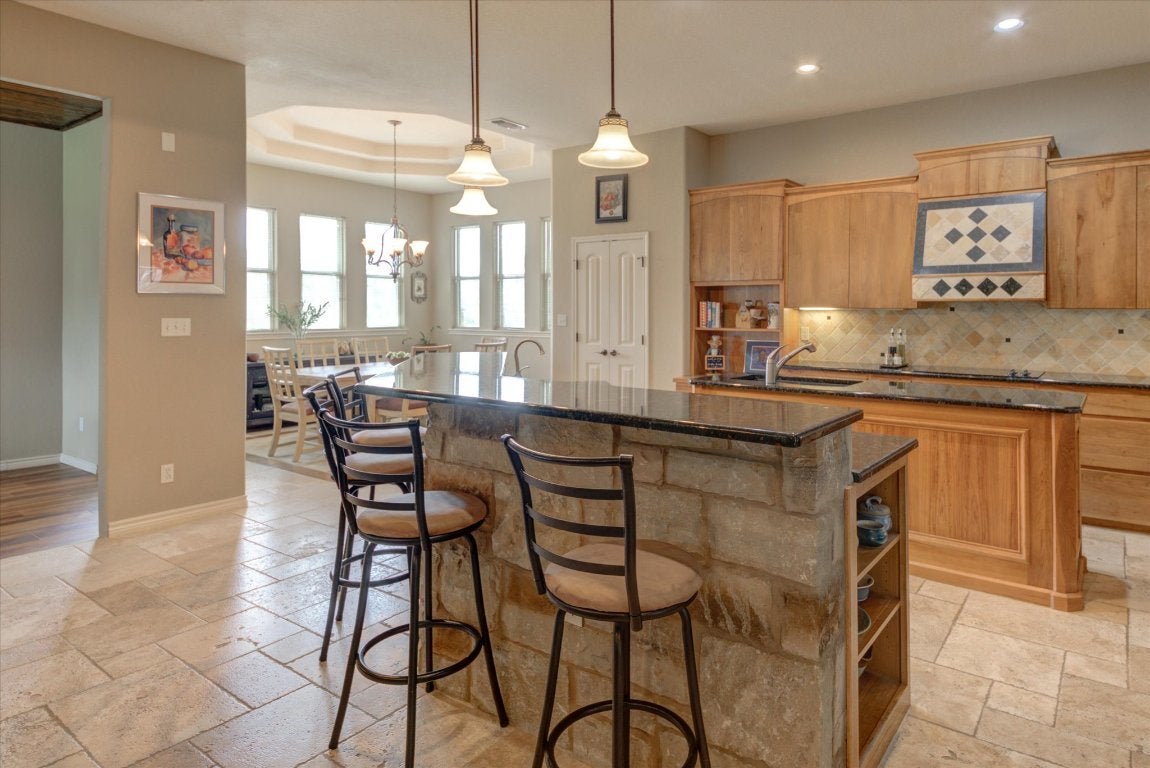 Experience refined lake house living in this stunning Tuscan-style retreat, perfectly positioned on a corner lot in the exclusive Colina Cove community on the constant-level waters of Lake LBJ in Kingsland, Tx. Designed with lake life in mind, this home is just a short stroll—about a tenth of a mile—from the private residents-only boat ramp and day dock, making spontaneous days on the water effortless. Surrounded by mature oak trees and lush, manicured landscaping, the property offers both beauty and privacy—ideal for relaxing after a day on the lake or entertaining guests. Inside, the expansive open floor plan invites gatherings, complete with a versatile flex space perfect for a game room or additional lounge area. The chef’s kitchen is built for hosting, featuring dual islands and sinks to handle everything from casual breakfasts to large lakeside get-togethers. The living area exudes warmth with its recessed lighting and elegant wood coffered ceiling, creating the perfect space to unwind. The primary suite feels like a private retreat, offering spa-inspired amenities including dual vanities, two spacious walk-in closets, a jetted soaking tub, and a separate walk-in shower. With three additional generously sized bedrooms—one conveniently located downstairs and two upstairs—there’s ample space for family and weekend guests alike. Whether you're looking for a full-time residence or the ultimate lake getaway, this home captures the relaxed luxury and easy access to boating that lake house owners dream of.