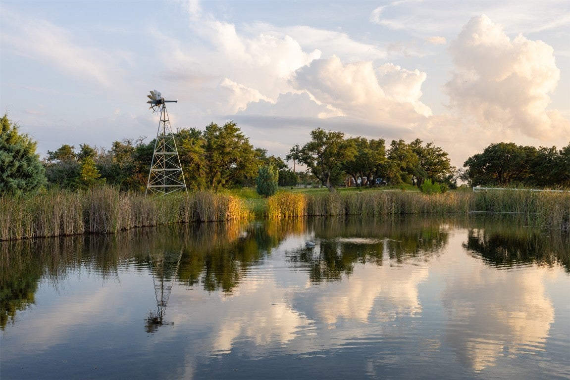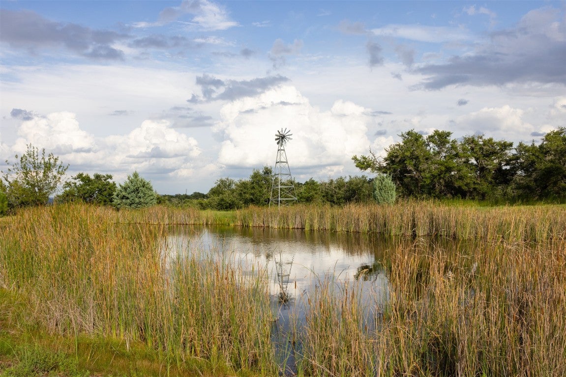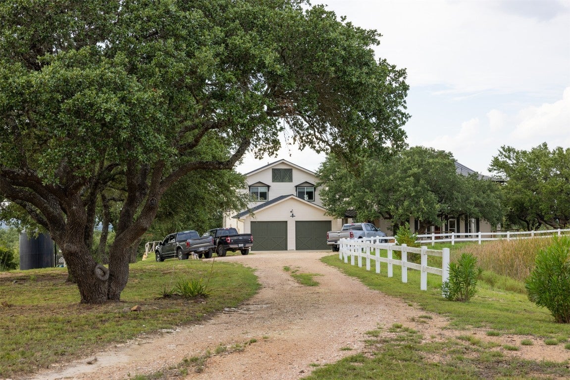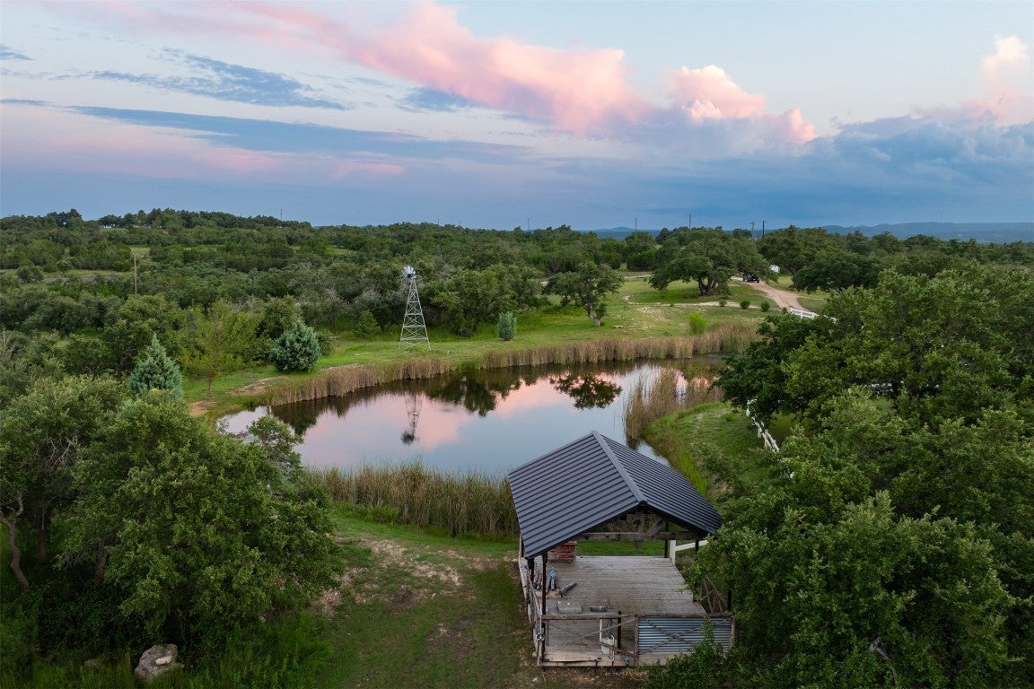 Experience luxurious Hill Country living at this 25-acre estate within gated Byrd Ranch Estates in Eastern Blanco County. Accessed by a picturesque bridge over Miller Creek, this private haven blends scenic beauty with opulent spaces. The property is cedar-cleared and high-fenced, with land sloping to reveal stunning northern views. Dominant hardwoods include live oak and Spanish oak. The lined, irrigated pond holds water year-round for bass and catfish. A water well services the property, and a rainwater collection system could be added. The property is high game fenced and ready to support just about any type of wildlife including exotics, horses and cattle. The main house features an open floor plan with a spacious kitchen, large dining area, and great room with a fireplace. A cigar and cordial room has antique windows and ports from an old ship. Giant ceilings lead to an upstairs bedroom, a game area with an additional fireplace, and an office or second bedroom. The guest house, connected by a covered walkway, includes four bedrooms, two baths, and a community living area. Multiple porches, patios, and sitting areas adorn all structures, and an attached multi-bay garage adds convenience. The outdoor area features a BBQ, a pavilion overlooking the pond, and a fire pit ring. The pond supports bass and catfish for fishing, and the hardwood cover attracts local wildlife. Conveniently located in the Texas Hill Country near Austin, San Antonio, Dripping Springs, Blanco, Johnson City, and Fredericksburg, this estate is ideal for family gatherings, entertaining, and enjoying the Hill Country.