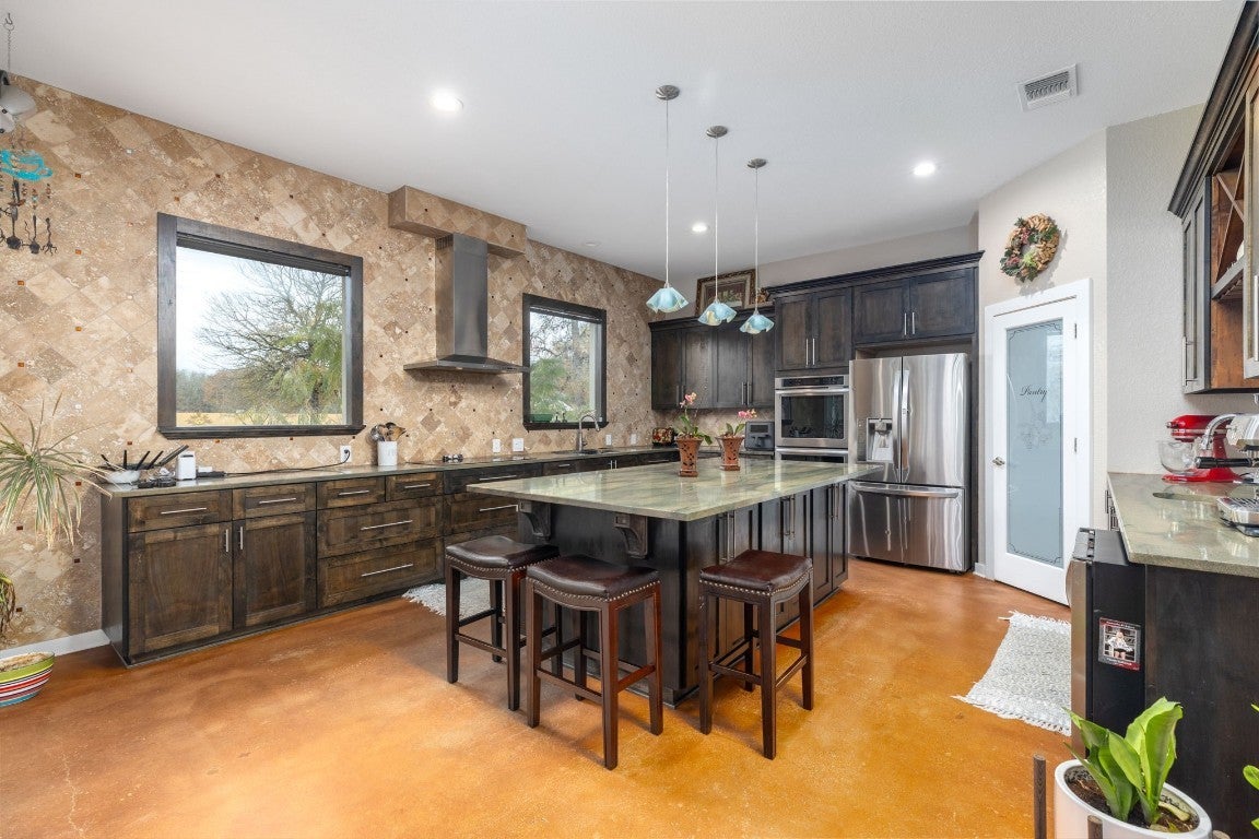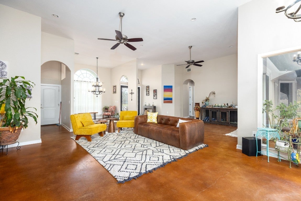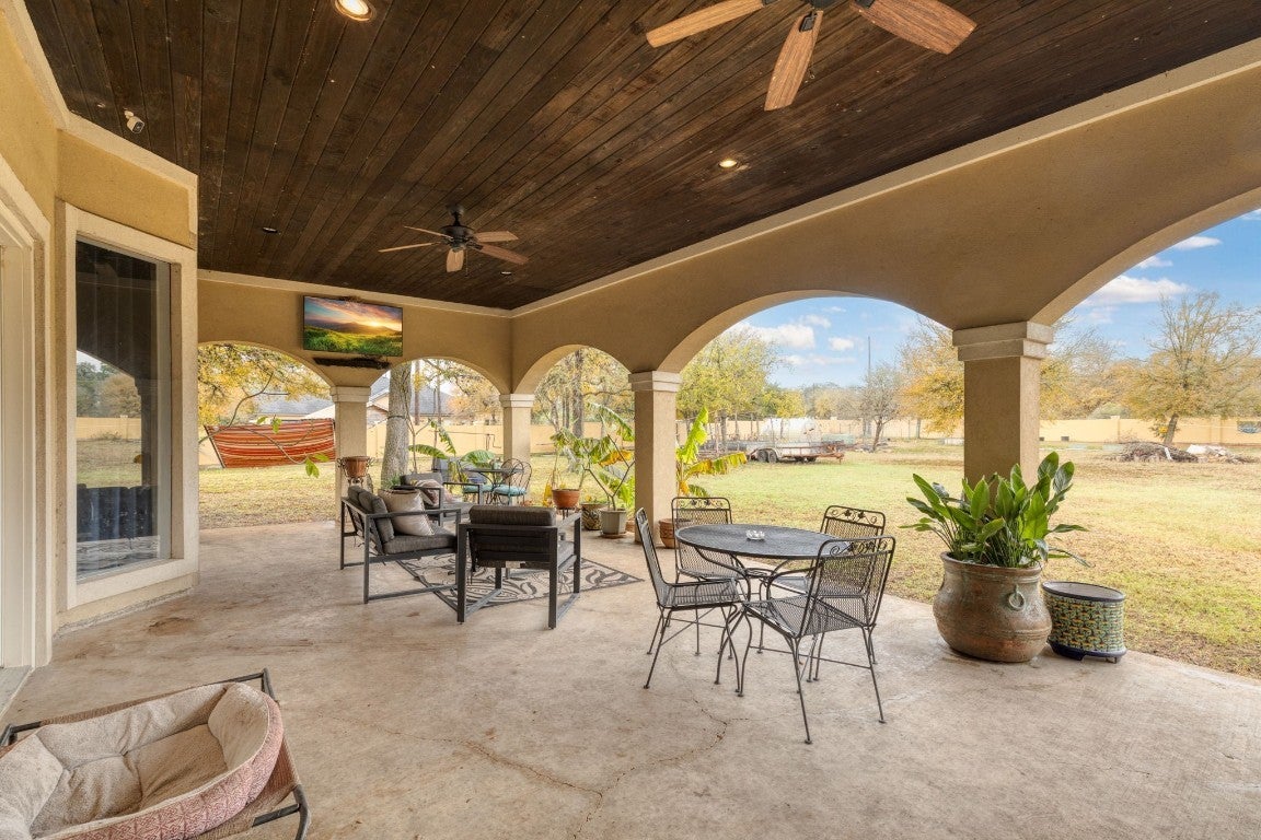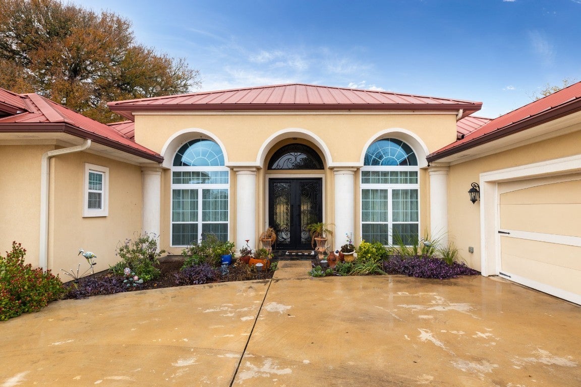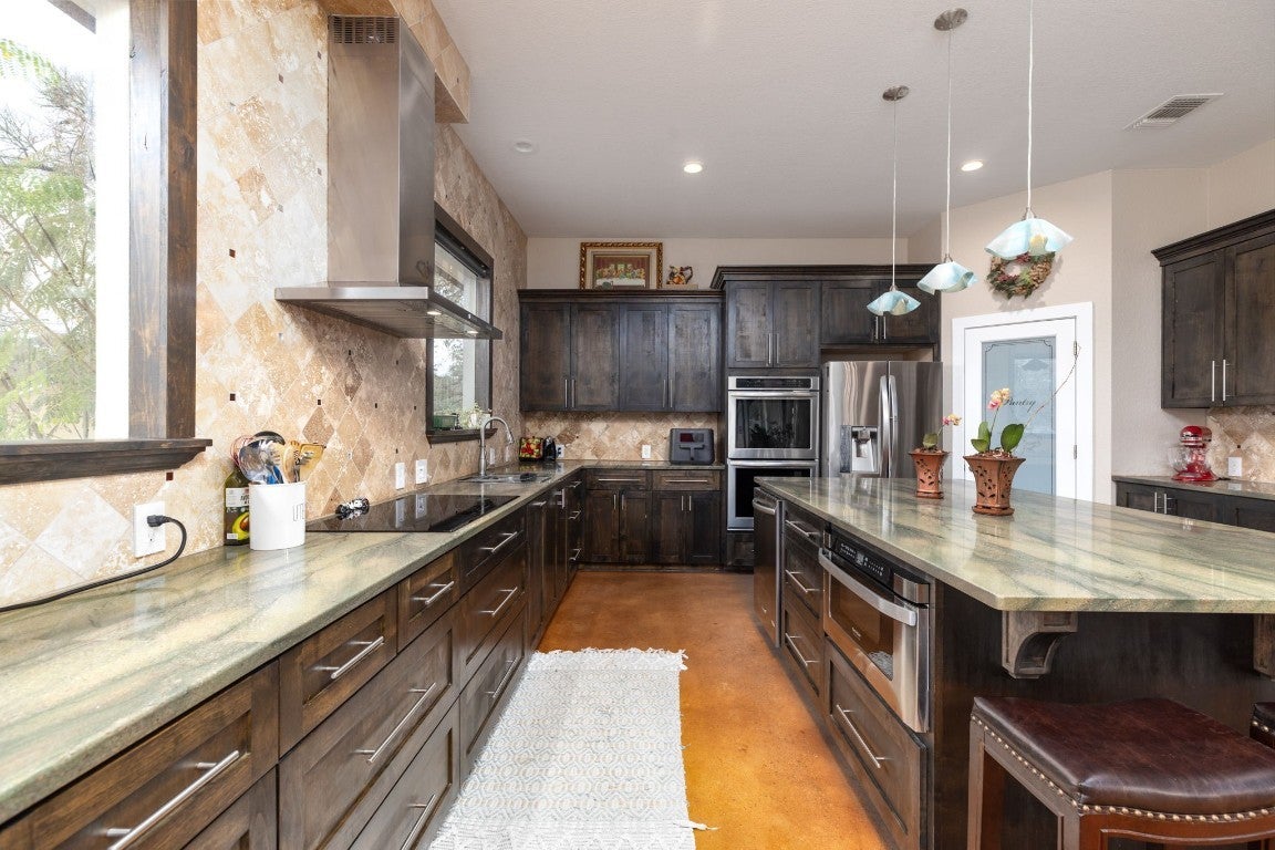 Incredible Price Improvement !!! Custom-built home nestled on a large 1.92 acre lot in The Ridge Subdivision. Stucco exterior with metal roof, stained cement flooring, over sized rooms, arched doorways, and lovely covered back patio that compliments the Spanish-style architecture. 4 bedrooms and a rare full THREE bathrooms! Beautifully done tile and granite kitchen with stainless steel appliances, double oven, walk in pantry and oversized kitchen island make it an entertainers dream home! 2 car attached garage, detached storage shed in back yard, extensive cinder block fencing around the back yard, circular driveway in the front of the home, all on a very secluded cul- de- sac area. The Ridge also boasts a man made lake, and walking trails. Shown by appointment only.