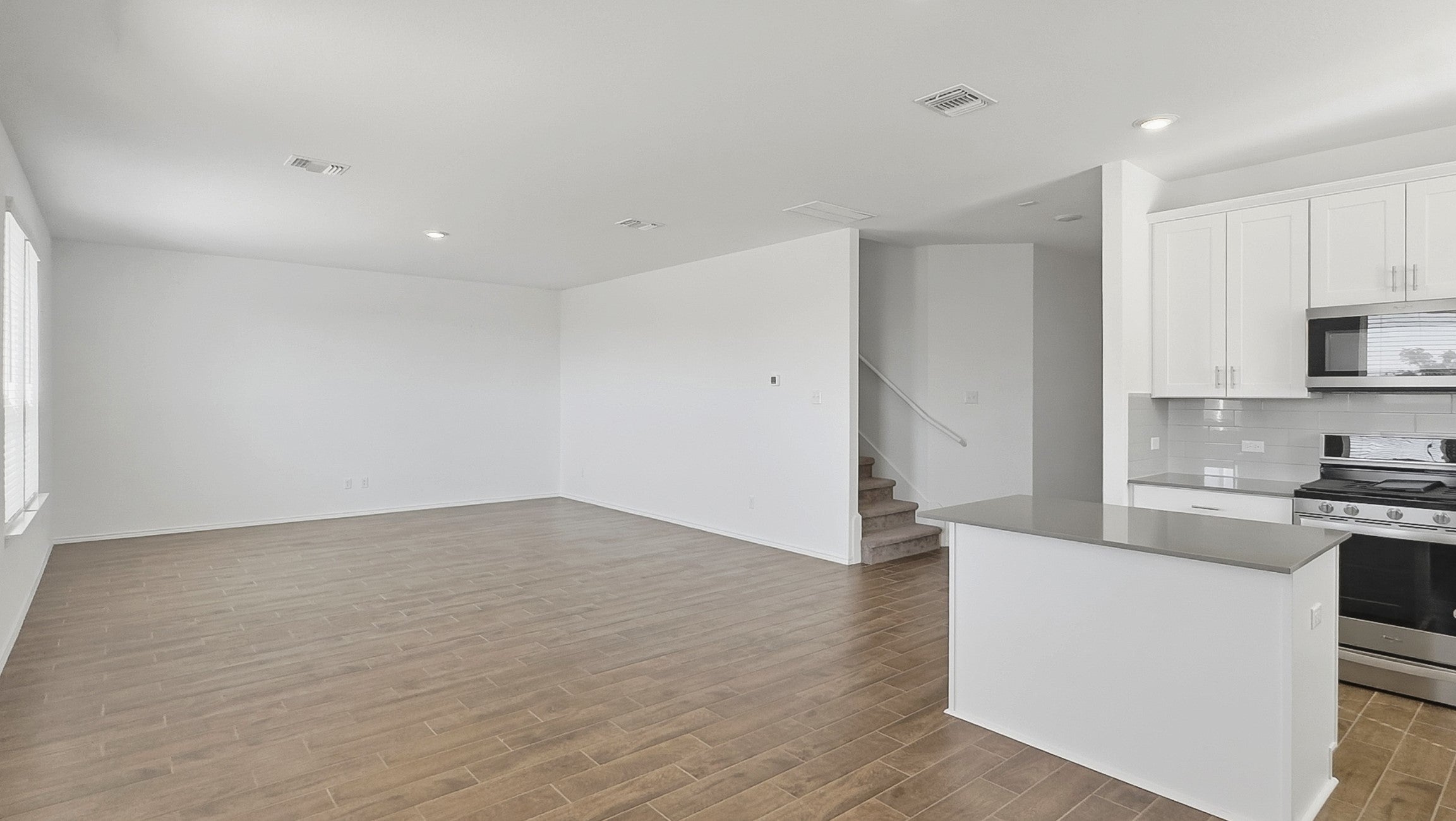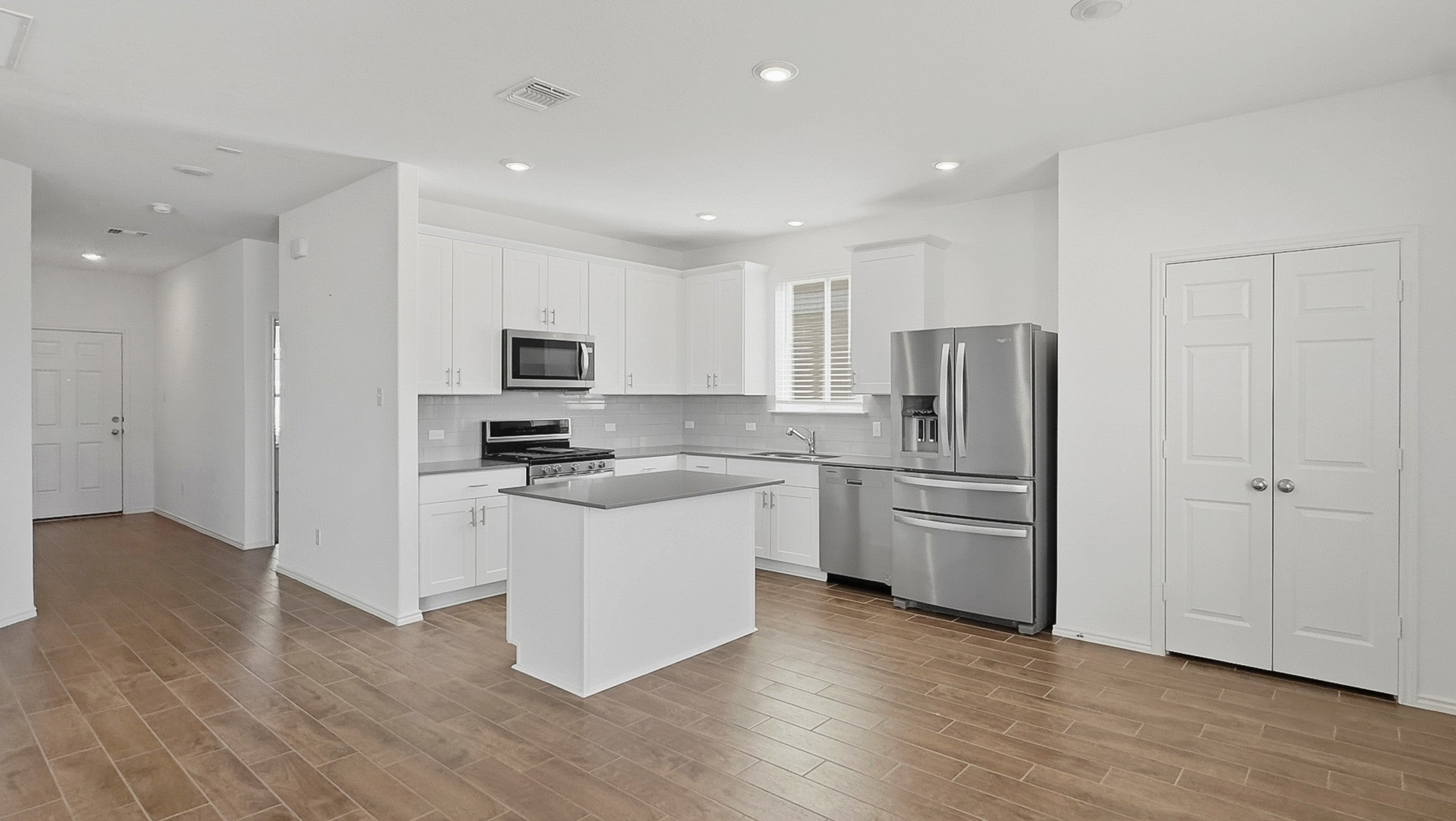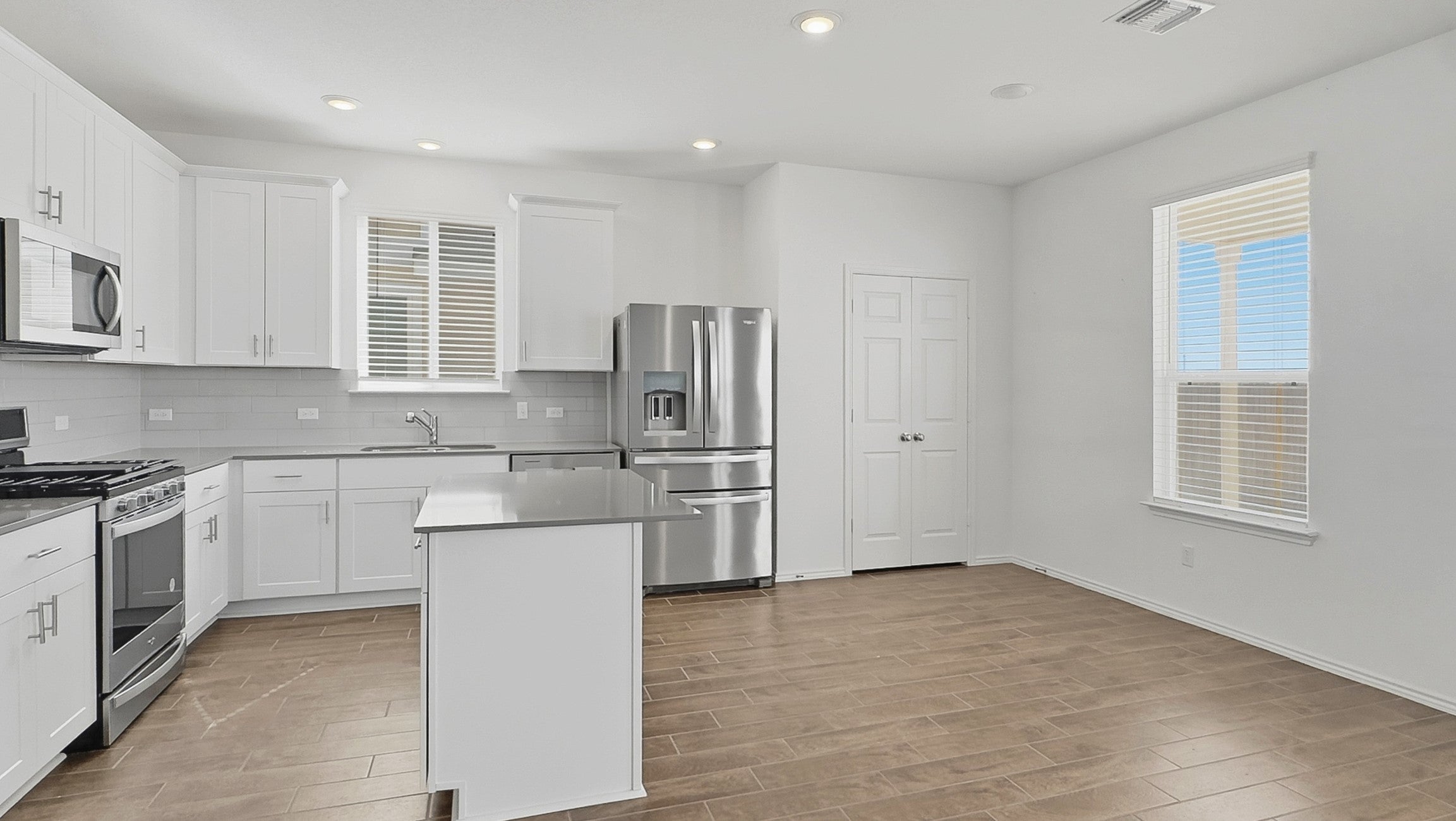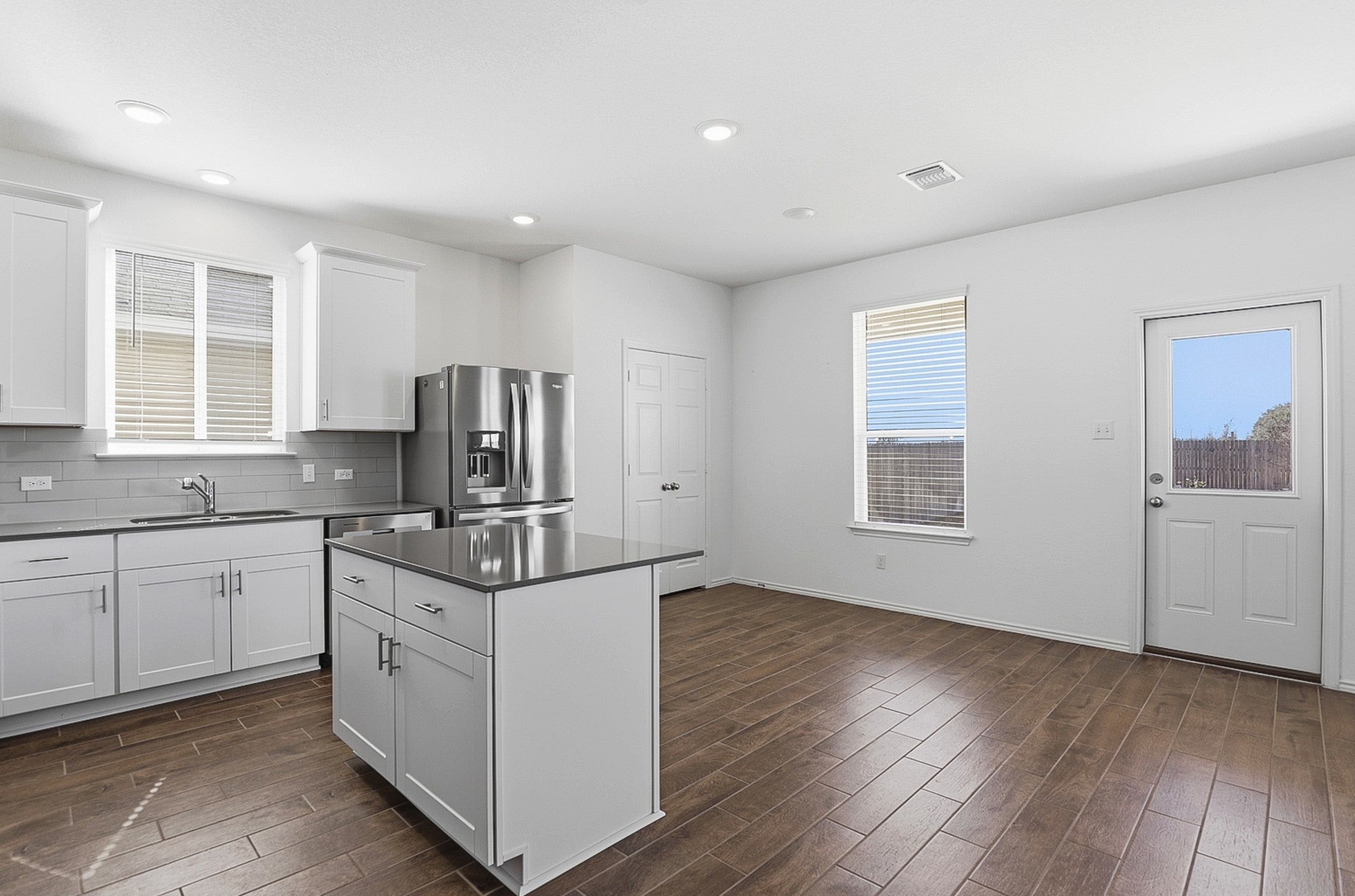 Two-Story, Modern House, perfect for families or professionals with an open design featuring 4 bedrooms, 3 bathrooms, and a big game room. First Level, Open floor-plan, Kitchen with cabinets, pantry, dining room- livingroom with natural light, half bathroom.- A convenient guest bedroom and a full bathroom. Second level, Master's bedroom with a walk-in closet, a walk-in shower, double vanity.- Two secondary bedrooms sharing a full bathroom with a shower tub, a bright open, and a big game room. No neighbors in the back, a big yard, and a covered patio. The house features a sprinkler system front-back, wireless thermostats, a tankless water heater, electronic frontdoor lock. Includes blinds, refrigerator, washer, and dryer. Pristine maintained house.