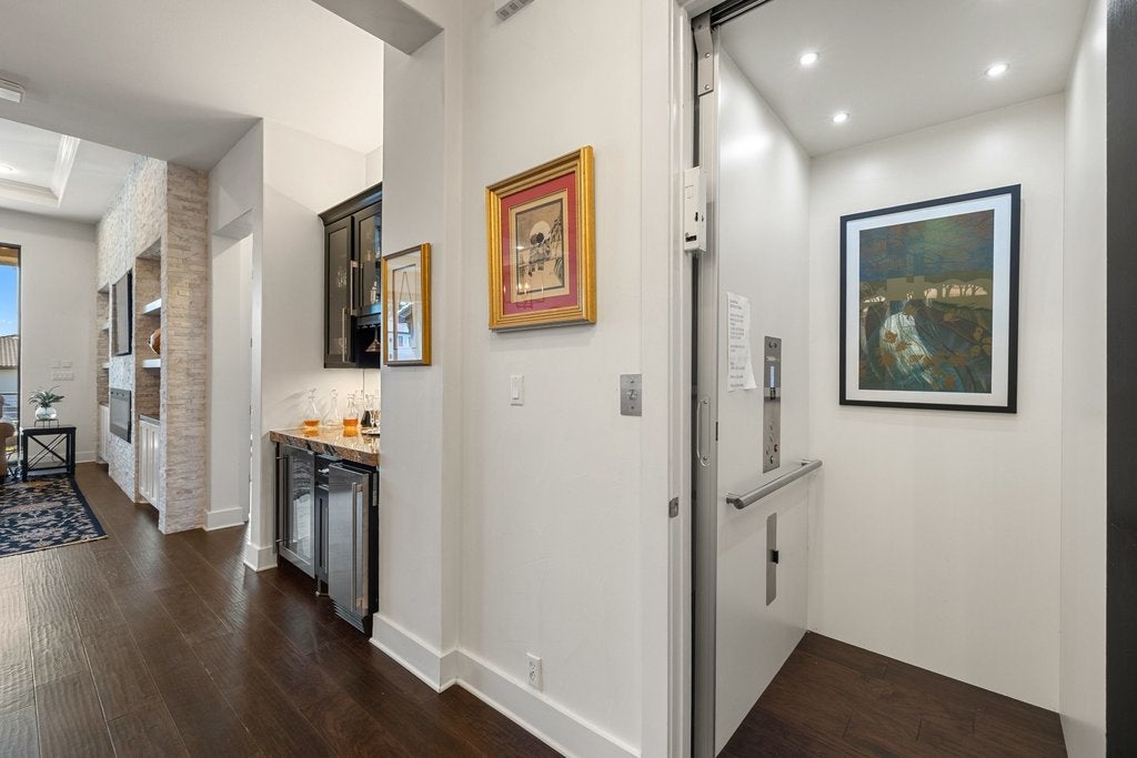 Welcome to 212 Marina View Way—an exquisite statement of modern luxury nestled within the coveted, gated enclave of Lake Ridge in Rough Hollow. Perfectly positioned in one of the most prestigious waterfront communities, this residence delivers an unparalleled resort-style lifestyle, just moments from the Rough Hollow Yacht Club and Canyon Grille. A refined private courtyard sets the tone, anchored by a sophisticated outdoor fireplace—an inviting extension of the home ideal for elegant entertaining or intimate evenings under the stars. The detached guest casita offers a secluded haven, complete with a private entrance and en-suite bath, ensuring the utmost in comfort and privacy for guests. Inside, the residence showcases a masterful blend of form and function. The light-filled chef’s kitchen is appointed with premium BOSCH appliances and seamlessly opens to expansive living and dining spaces, creating a breathtaking backdrop for both grand-scale entertaining and effortless everyday living. The main level is reserved for the serene primary suite, a tranquil sanctuary framed by captivating views that celebrate the surrounding natural beauty. The lower level continues the home’s thoughtful design with a spacious additional bedroom suite and a well-appointed bath, along with a stylish powder room for added convenience. A private in-home elevator enhances accessibility while elevating the experience of luxury living across all levels. Set behind the gates of Lake Ridge, this residence embodies the essence of refined waterfront living. With direct access to the marina, yacht club, and waterfront dining, every day is infused with the feel of a five-star retreat. An extraordinary lock-and-leave offering, this home delivers the rare combination of effortless maintenance and elevated sophistication—where luxury meets lifestyle, and every detail is designed to impress.