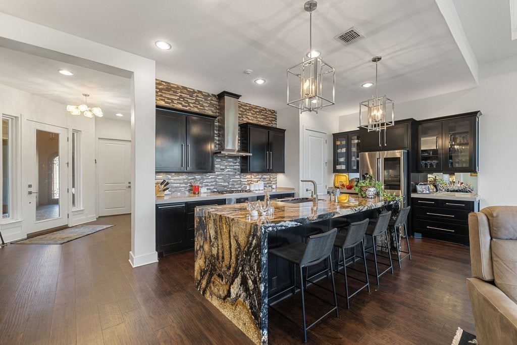 - Bar Fridge, Cooktop, Dishwasher, Exhaust Fan, Gas Cooktop, Disposal, Microwave, Refrigerator, Range Hood, Wine Cooler