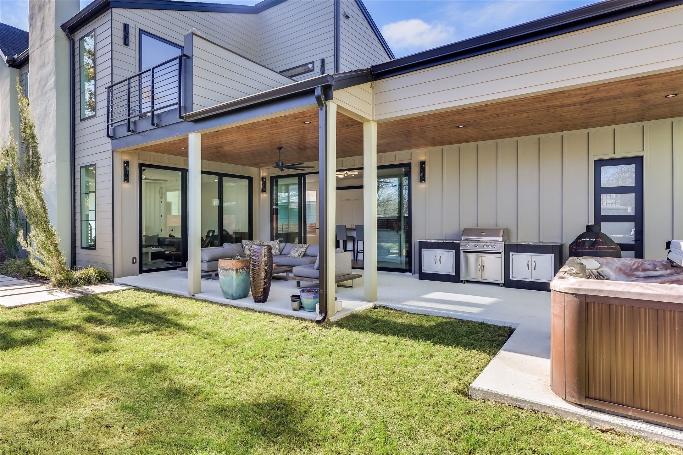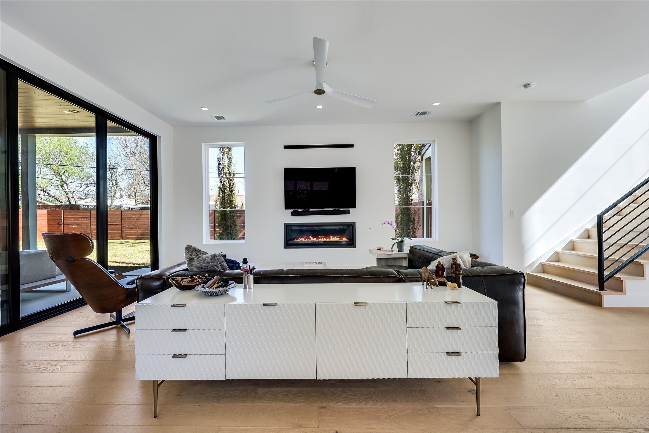 The Forest Oaks neighborhood is known for its established feel and South Austin roots, and 4600 Gillis St fits right into that landscape. This two-story home features 3 bedrooms and 3.5 bathrooms, with all bedrooms on the 2nd floor. White oak flooring runs through the open floor plan where the living room, with a stunning electric fireplace and large picture windows, serves as a central hub. The kitchen is a gourmet masterpiece, built for high-capacity cooking and frequent hosting. It is outfitted with a built-in Monogram refrigerator, ZLINE appliances, and a mix of granite and quartz countertops. For those who enjoy entertaining, the inclusion of a built-in wine refrigerator, dedicated ice maker, and an oversized pantry makes the kitchen highly capable for handling gatherings from big to small. Just off the kitchen, sliding glass doors lead to a large back patio equipped with an outdoor grilling area. The backyard is expansive, with enough space to add a pool and spa in the future. Moving to the second floor, a second living space provides a versatile area for a home office or game room. The primary suite stands out with its own private balcony that looks over the backyard. The attached ensuite features a custom skylight and wet area featuring a spa-like walk in shower with 2 shower heads and free-standing soaking tub. Two additional bedrooms and a bathroom complete the upper level. Soundproof insulation ensures the interior remains quiet despite the home's central location. Living in Forest Oaks puts you within 1 mile of Central Market, less than a mile from Radio Coffee, and only a half-mile away from El Chilito. This pocket of Forest Oaks is exceptionally well-positioned for commuters or frequent travelers; just 4 miles from Downtown Austin and 9 miles from the Austin Airport. With quick access to Highway 290 and Menchaca Road, the home balances the quiet of a residential street with the immediate accessibility of the South Lamar and South First districts.