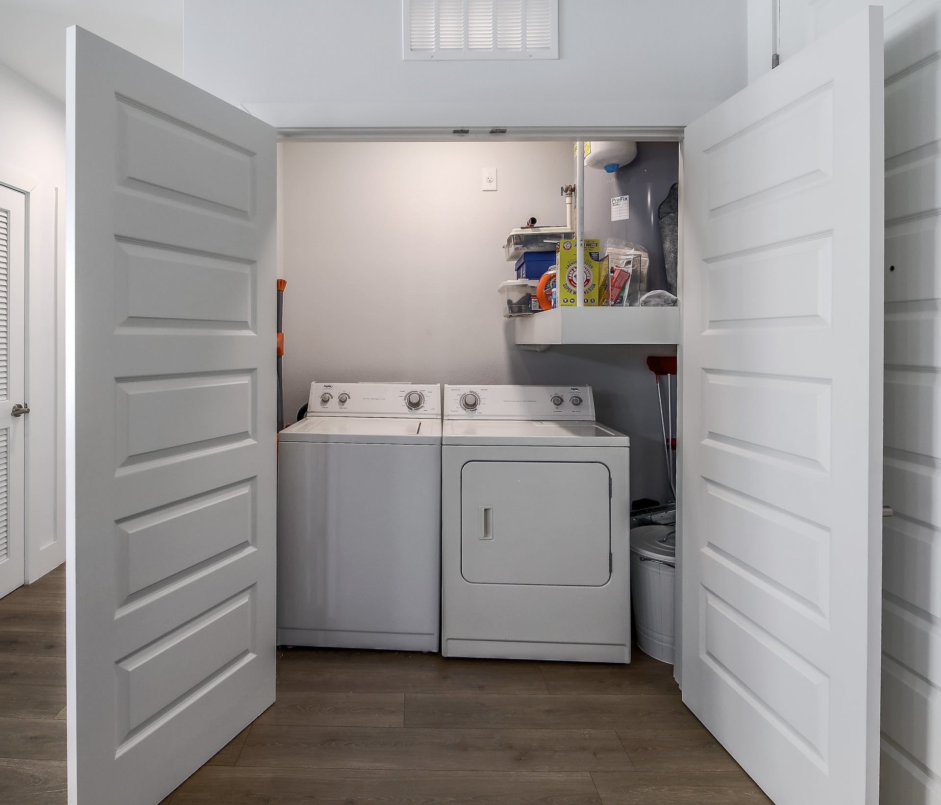 - Dryer, Dishwasher, Electric Cooktop, Exhaust Fan, Disposal, Microwave, Oven, Refrigerator, Stainless Steel Appliance(s), Washer