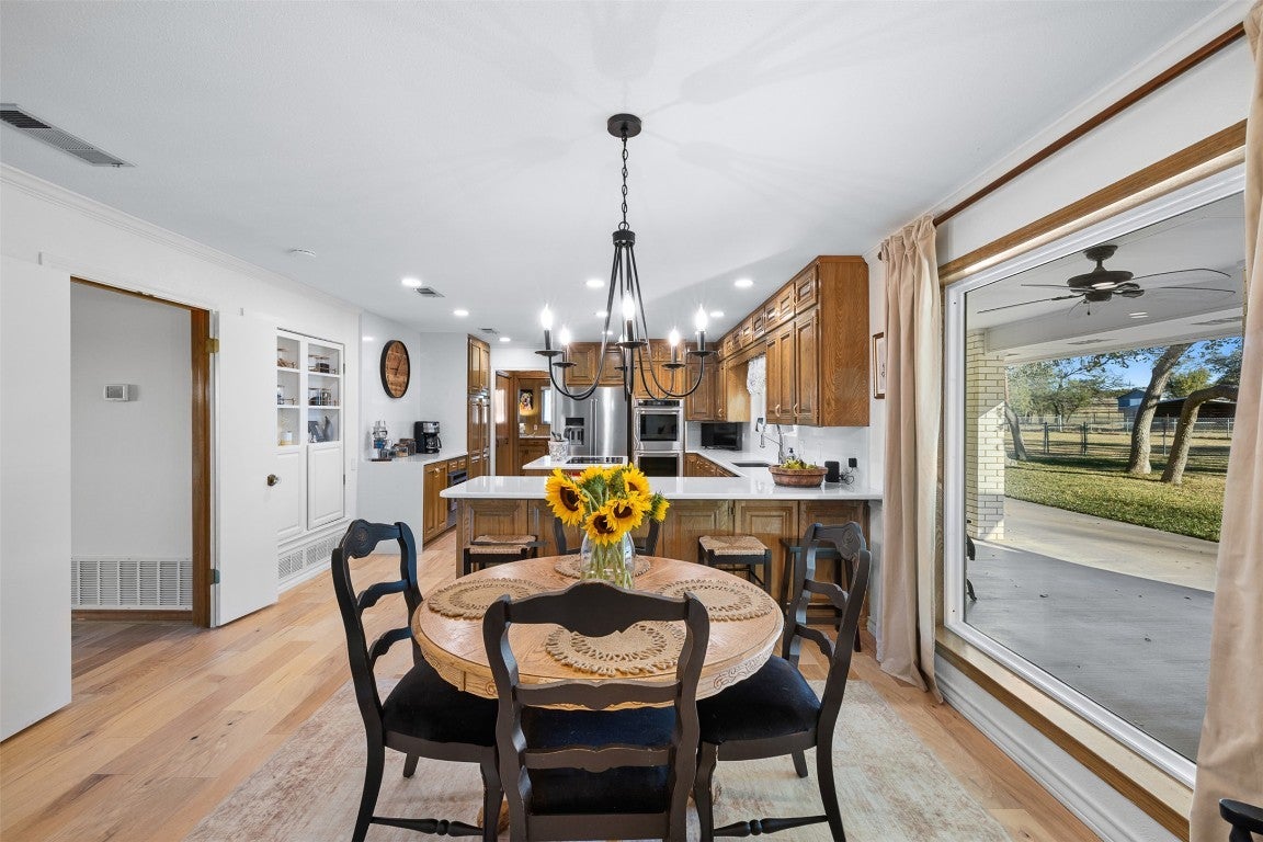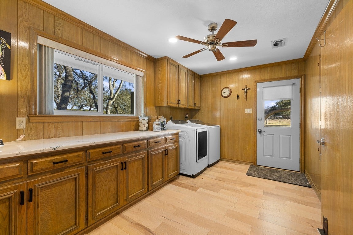 Welcome to your private Texas retreat where classic farmhouse charm meets modern luxury, located in the Florence ISD and just minutes from Stillhouse Hollow Lake. Built in 1987 and beautifully updated, this impressive brick home offers 3,816 square feet of thoughtfully designed living space with 3 bedrooms, 2 full bathrooms, and 2 half bathrooms, plus a 2-car attached garage. Inside, you’ll find engineered hickory hardwood floors, a remodeled kitchen featuring quartz countertops, upgraded stainless steel appliances, and two spacious living areas highlighted by custom built-in cabinetry and a striking fireplace. An elegant formal dining room provides the perfect setting for hosting family and guests. The very large primary suite is a true retreat, featuring upgraded ceramic tile flooring, a walk-in shower, a freestanding garden tub, and ample closet space. Set on over 30 acres of prime land, the property features a large tank and a picturesque mix of mature hardwoods that frame the home, offering both beauty and privacy. The property currently benefits from an agricultural tax exemption with a conveyable cattle lease. Additional improvements include a 2 1/2-car detached garage with a climate-controlled flex space ideal for a home gym, dog kennel, or studio. The home is also equipped with a Generac 22kW whole-house generator powered by a 500-gallon propane tank, ensuring comfort and peace of mind year-round. The property is serviced by both a private water well and city water, providing flexibility and reliability. With its blend of modern upgrades and functional outbuildings, this exceptional property offers a rare opportunity to enjoy refined country living just minutes from town. There are many more features to discover—this is a must-see to truly appreciate all it has to offer.
