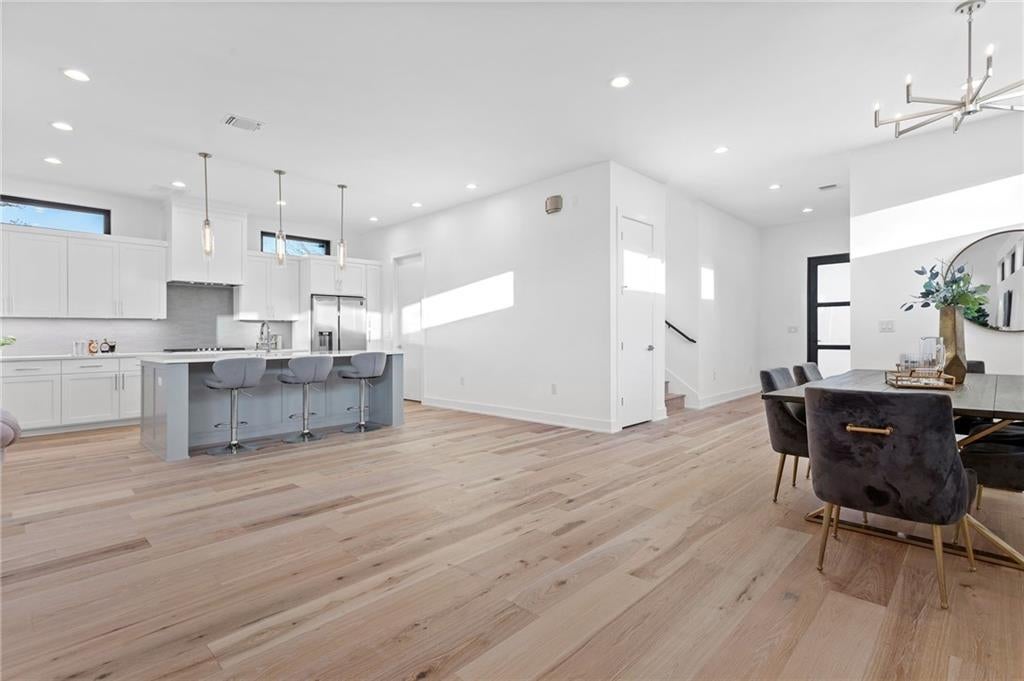 Welcome to 1004 Lott Avenue, a beautifully designed home on Austin’s vibrant east side. As you step inside, you’re immediately greeted by a bright, wide-open floor plan filled with natural light and clean, modern finishes. The main living area flows effortlessly into the kitchen, where a center island with seating, sleek white cabinetry, gas cooktop, and stainless steel appliances make it easy to cook, gather, and entertain. Just off the living room, sliding glass doors lead you out to a covered patio, perfect for morning coffee or unwinding in the evenings. The primary suite is tucked away downstairs for privacy and convenience, with direct access to the patio and a spa-like ensuite featuring an oversized walk-in shower, double vanity, and a spacious walk-in closet. Head upstairs and you’ll find a versatile loft that can flex as a home office, second living space, or whatever fits your lifestyle, along with two additional bedrooms and a full bathroom with double vanities. Located just minutes from downtown Austin, this home offers easy access to some of the city’s other vibrant areas including Mueller & East Austin districts. Spend your days exploring local coffee shops, breweries, and some of Austin’s best dining spots, all just a short drive away. Enjoy nearby outdoor favorites like Lady Bird Lake with its hike and bike trails, perfect for kayaking, running, or soaking in the skyline views. With quick access to the 183 Toll and major roadways, commuting around the city or heading to the airport is a breeze. Whether you’re drawn to the energy of East Austin, the convenience of nearby amenities, or the outdoor lifestyle Austin is known for, this home places you right in the middle of it all. Schedule your showing today and experience the lifestyle firsthand.
