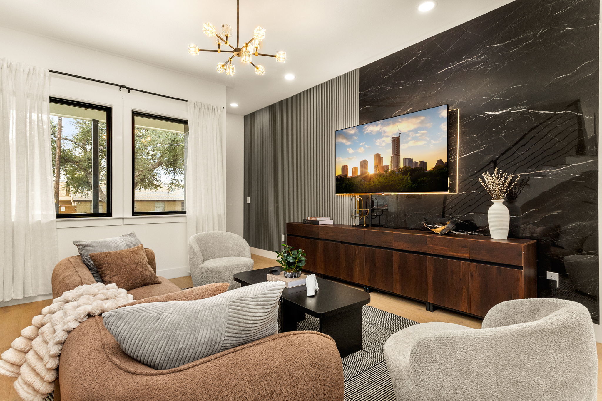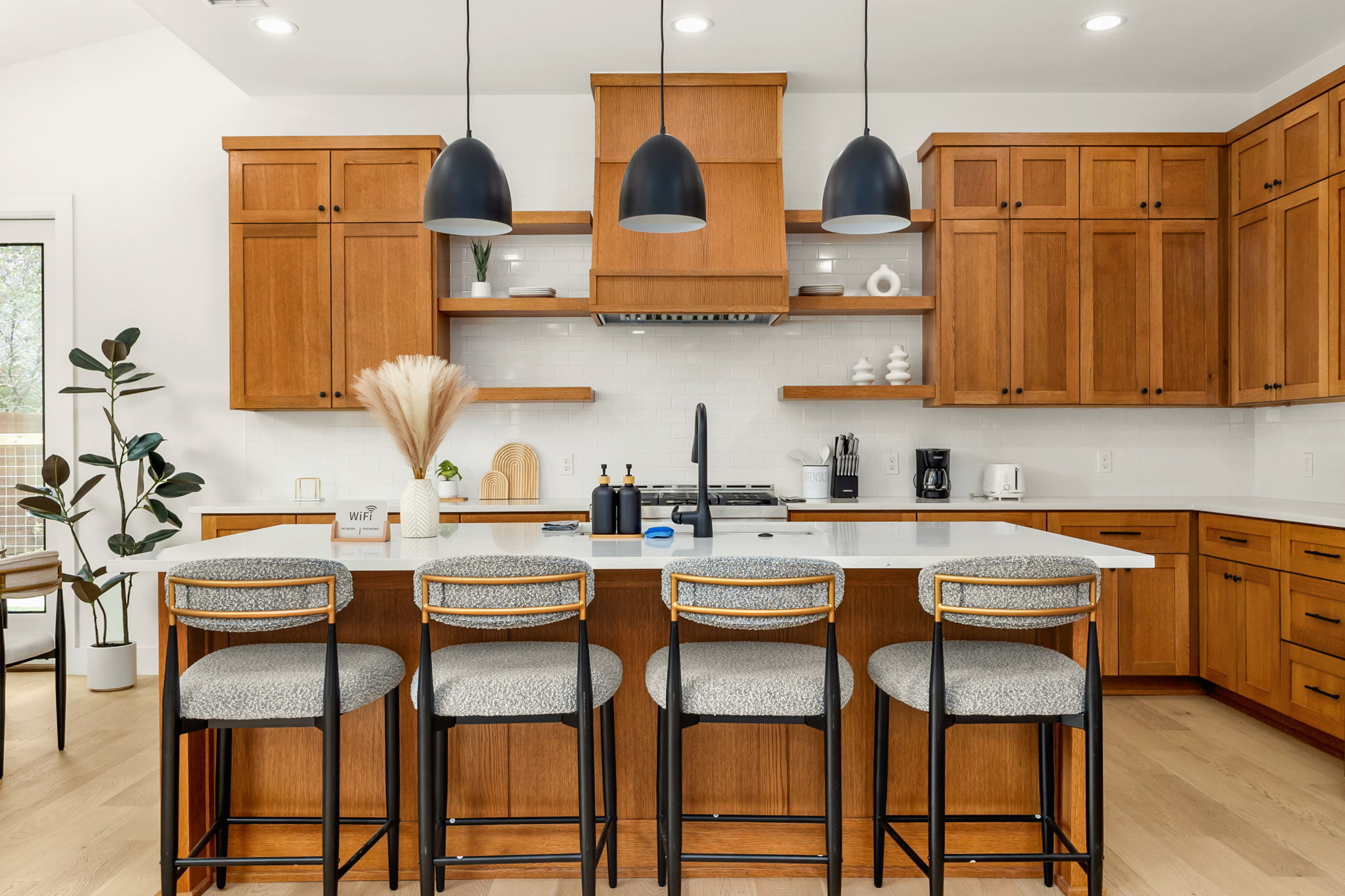 If you’ve been looking for a central Austin property that delivers a clean modern aesthetic with a resort-inspired feel, look no further than Austin's Ember House. Recently built and intentionally designed with short-term rental performance in mind, this contemporary residence - being sold fully furnished - offers a luxury-quality stay where every detail has been curated for comfort, enjoyment, and convenience. Whether used as a primary residence, second home, or income-producing asset, this property blends elevated design with strategic location. Inside, you’ll find a light-filled, modern interior featuring warm white oak flooring, designer lighting, and a soft neutral palette that creates a boutique-hotel atmosphere. The open-concept layout centers around a chef-inspired Bosch kitchen with sleek cabinetry, quartz surfaces, and an entertainer’s island - perfect for hosting or accommodating guests. Multiple private suites offer flexibility and privacy, an essential feature for maximizing short-term rental appeal and guest satisfaction. Outdoor living spaces, including covered patios and a private balcony, invite you to unwind and enjoy Austin’s year-round lifestyle. The private courtyard includes a hot tub for evening relaxation, fire pit for gathering under the stars, outdoor dining and lounge seating and ping pong for added entertainment. Location is everything and this home delivers. Just minutes from: • The University of Texas at Austin • Mueller District shopping and dining • Downtown Austin, Rainey Street, and East Austin hotspots • Major medical centers and tech employers For investors, this central location supports strong rental demand across short-term, mid-term, and event-driven stays including ACL, Formula 1, SXSW, UT events, and medical travel.