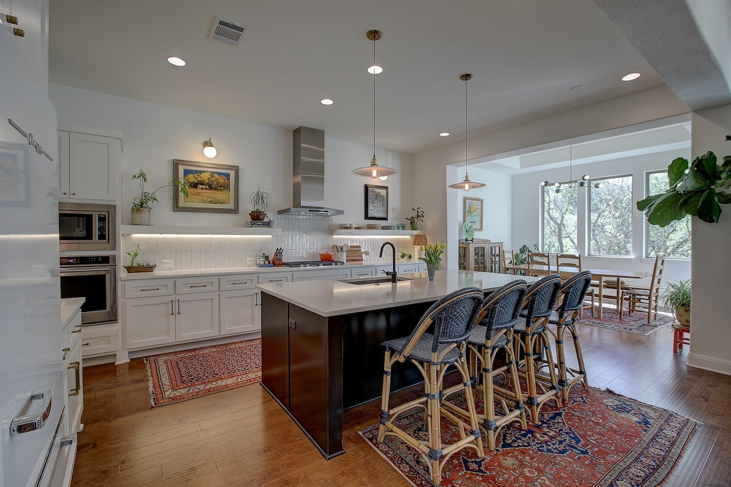 - Built-In Electric Oven, Double Oven, Dishwasher, Gas Cooktop, Disposal, Microwave, Vented Exhaust Fan