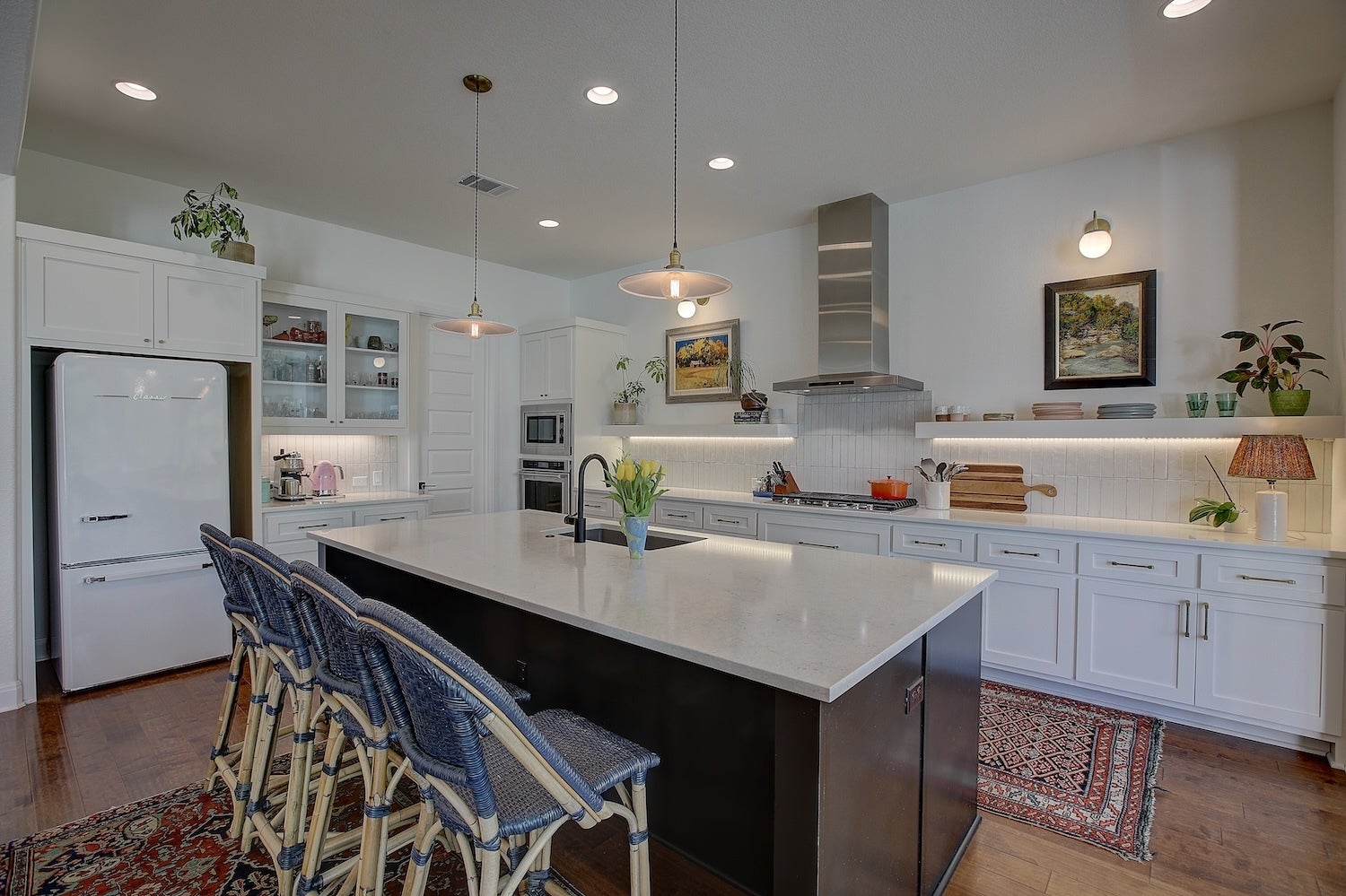 Luxury living meets breathtaking views in this stunning single-story Drees custom home in Wolf Ranch North. Perfectly positioned on a .325-acre cul-de-sac lot with no direct rear neighbor, this 4-bedroom, 3.5-bath home captures a truly unforgettable backdrop. Inside, soaring ceilings, rich wood flooring, and a vaulted, beam-accented family room create a refined yet inviting atmosphere. The gourmet kitchen features quartz countertops, a large island, and gas cooking. The primary suite offers a spa-like bath with soaking tub and serene views. A private guest suite, flexible office, and thoughtful layout add versatility. Outdoor living shines with a covered patio and kitchen designed to fully embrace the view.