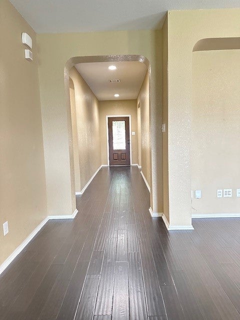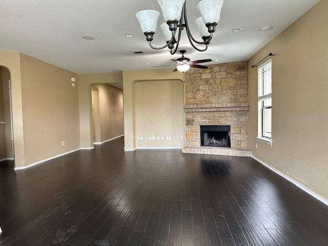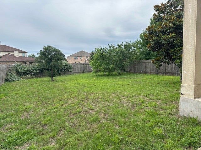 This beautiful 3 bedroom 2 bath Home at Crystal Crossing in Leander features an open floor plan w/ surround sound, perfect for entertaining or just hanging out around the gorgeous stone fireplace. Wood floors, plenty of cabinet space, granite counters & stainless appliances. Large Master Suite w/ double vanity, garden tub, separate shower & walk in closet. Spacious secondary bedrooms, covered patio with built in speakers & big backyard along with a peach tree!FEMA - Unknown Restrictions: Yes Sprinkler Sys:Yes (** Washer/dryer will be installed soon** & ** lawn will be replaced soon**)