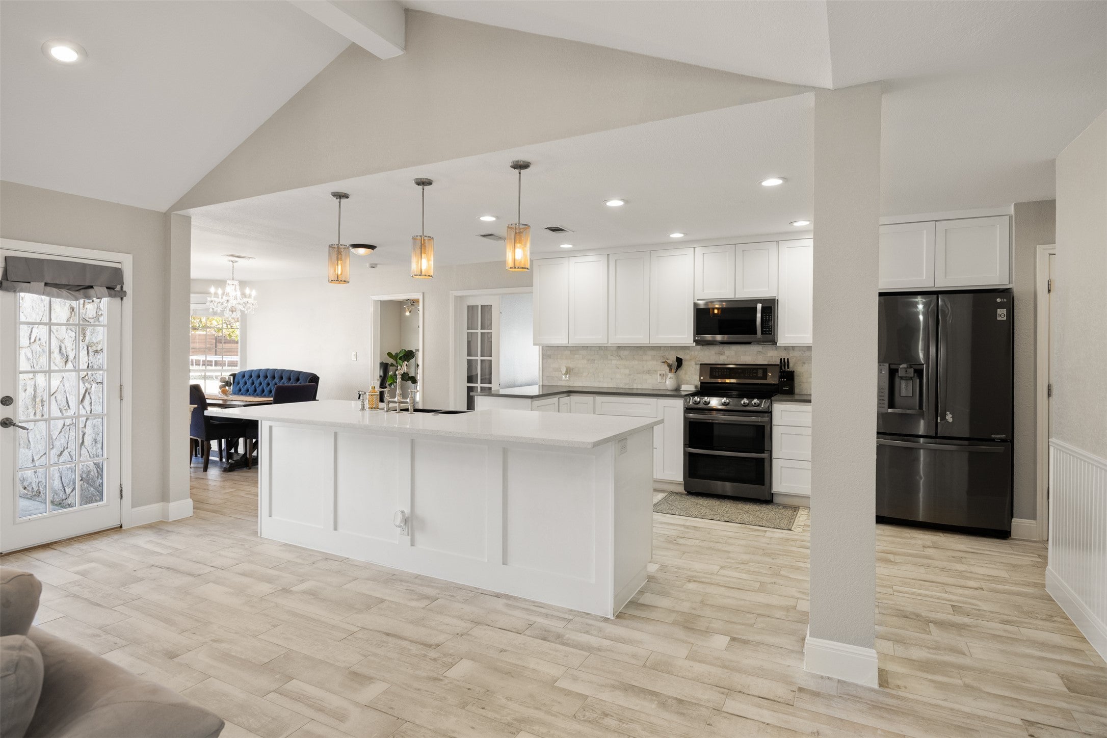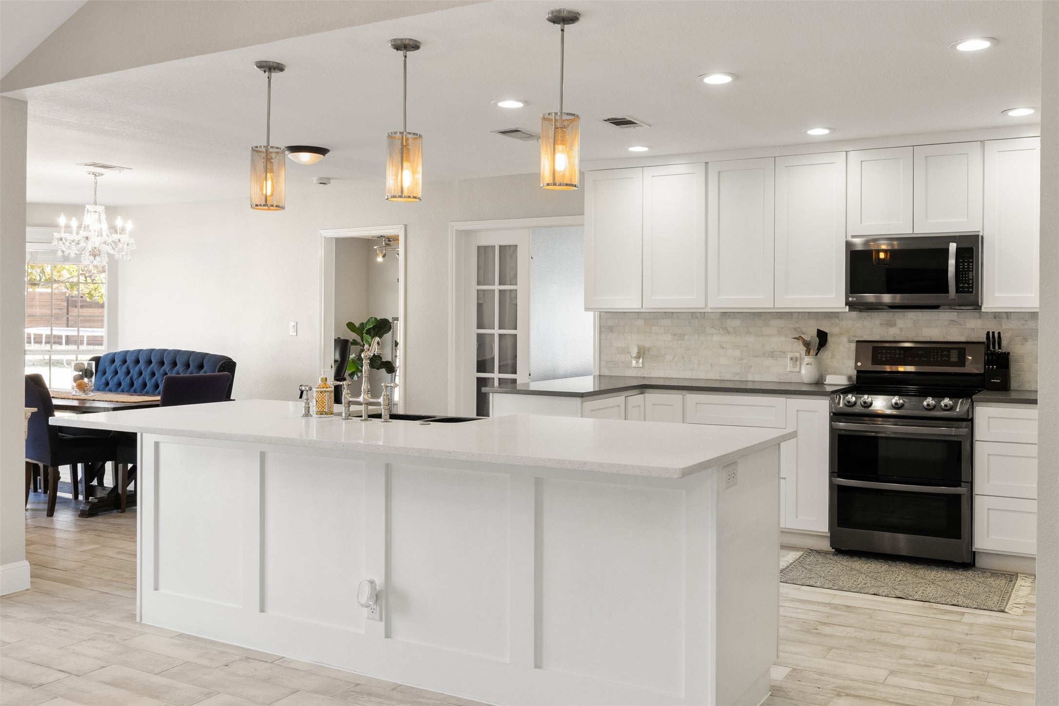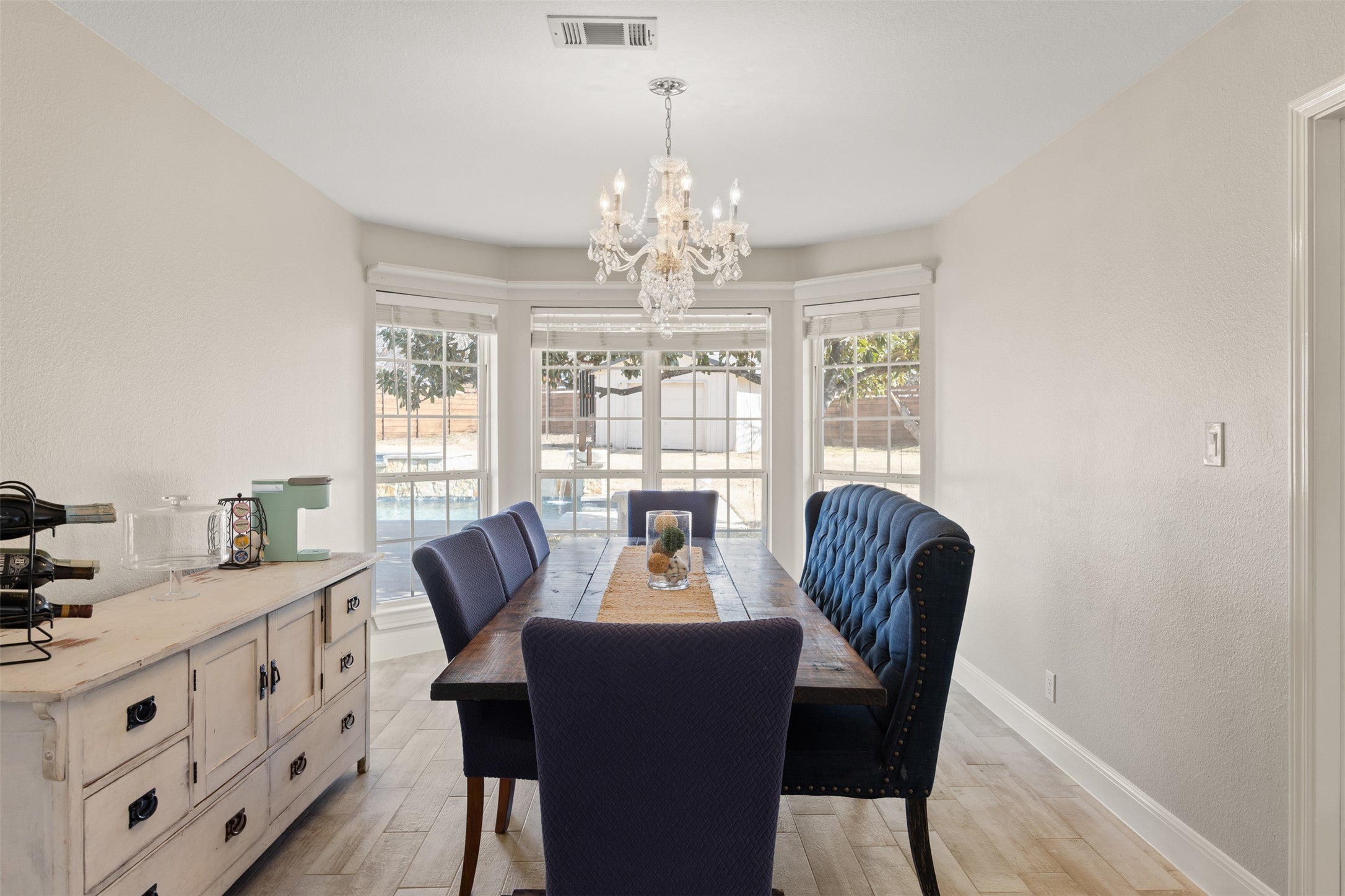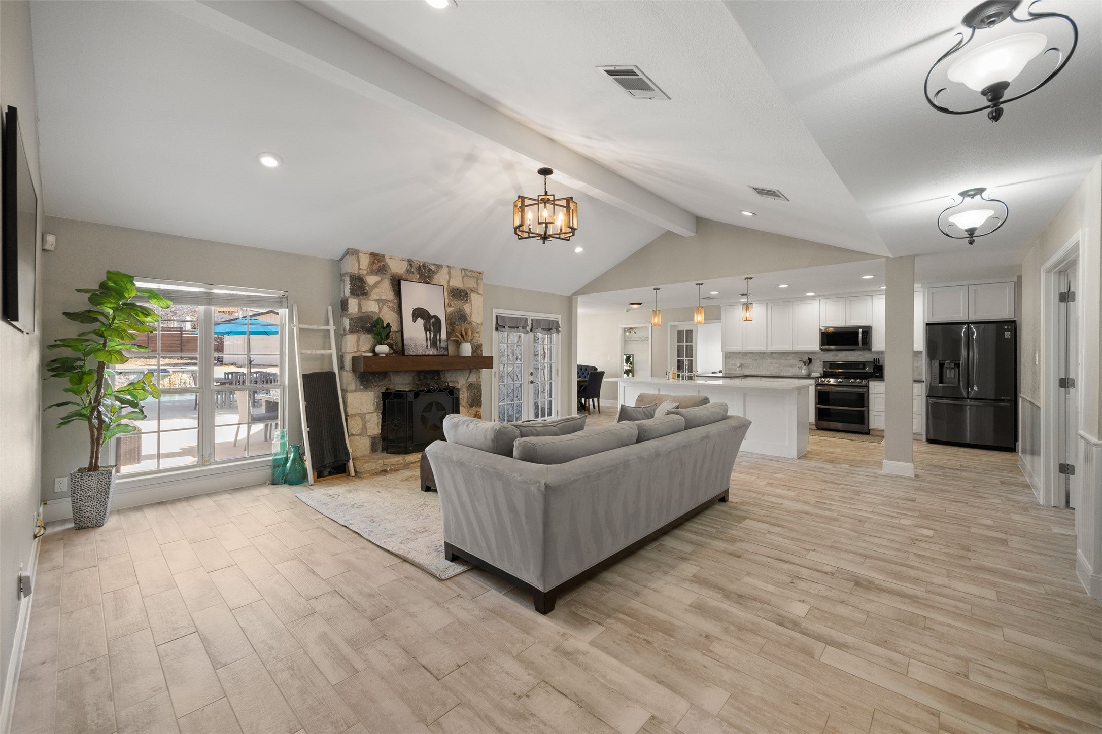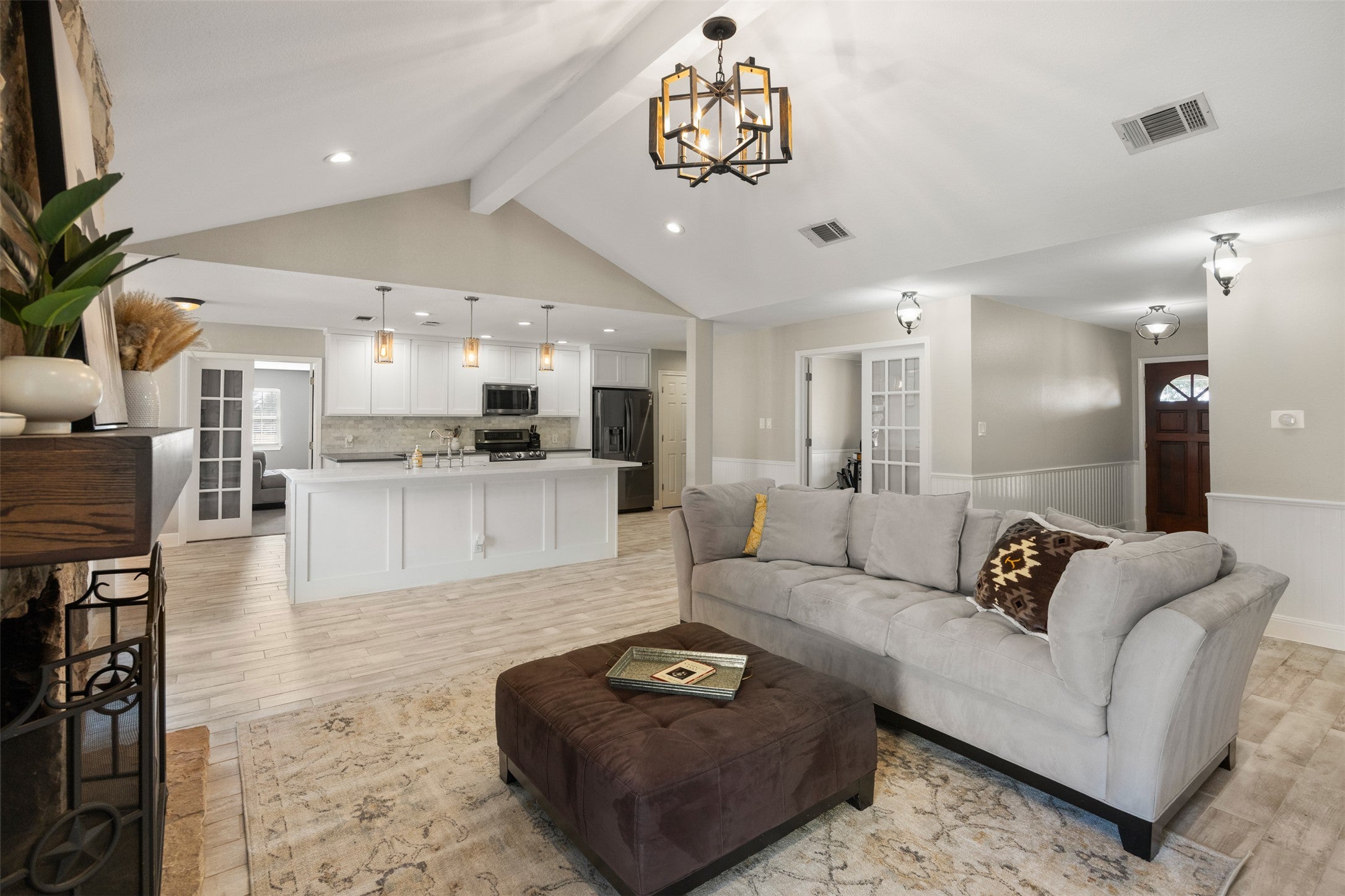 Remodeled one-story ranch located in the desirable Brushy Bend Park. The property features a gated driveway and a fenced front yard anchored by a massive Heritage Oak tree. The main home includes four bedrooms, two bathrooms, and two flexible office spaces—one of which can serve as a formal dining room. Additionally, there is a dedicated bonus room perfect for movie nights.The interior is highlighted by beamed ceilings in the living room and primary bedroom, elegantly appointed bathrooms, and an impressively sized primary closet. Outside, you will find a beautiful swimming pool and spa with multiple seating areas overlooking a private, expansive yard. The property also includes a recently built one-bedroom, one-bathroom guest house with its own private entrance and yard.