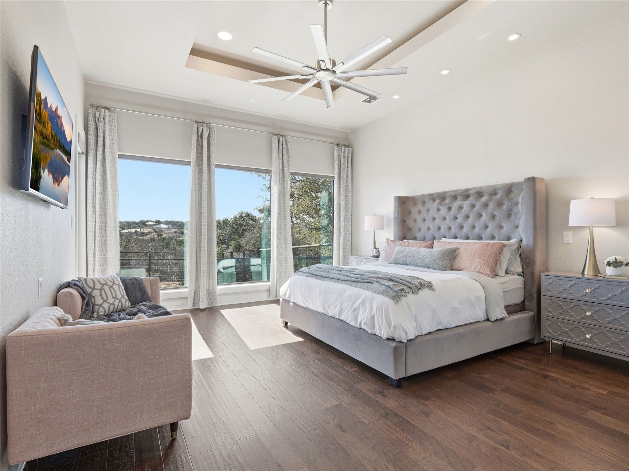 A modern Hill Country retreat, curated for those who appreciate timeless design and everyday luxury. The spa-inspired primary suite is a private sanctuary - where every detail is designed to soothe, restore, and elevate the everyday. Contemporary elegance continues throughout the home, from the dramatic floor to ceiling fireplace, to the chef's kitchen appointed with Thermador appliances, to the versatile loft in the guest suites. Serene rear views crown this peaceful hill country backdrop. Live boldly and beautifully in this premier community of Vintage Oaks renowned for its resort-style pools, a winding lazy river perfect for warm Texas afternoons, tennis courts, scenic walking and jogging trails, a grand clubhouse and fully equipped fitness facility. Outdoor living thrives here - a lifestyle truly built around movement, nature, and meaningful community.