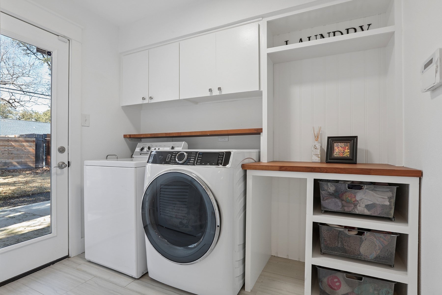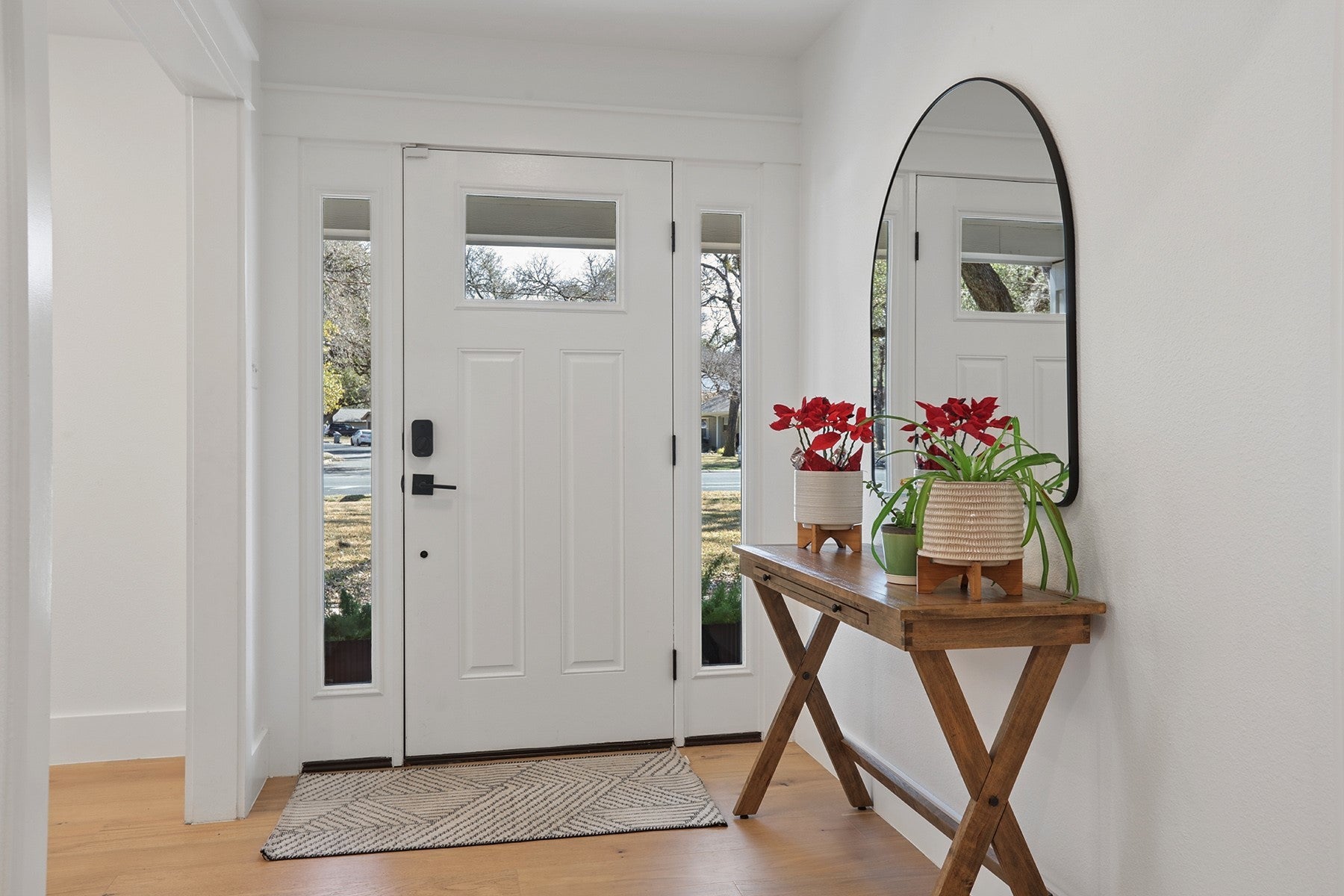 MOVE IN READY! Beautiful Craftsman-style home featuring custom wood door trim, modern black hardware, and extensive updates throughout. The interior showcases engineered oak hardwood flooring and fresh paint, creating a warm and cohesive feel across the home. The living area centers around a gas fireplace, while recessed lighting enhances the kitchen, dining, living areas and bathrooms. The remodeled kitchen is designed for both everyday living and entertaining with granite countertops, shaker-style cabinetry with pull-out drawers, stainless steel appliances, and a double oven. Beverage enthusiasts will love the built-in wine/beverage refrigerator and beer fridge with double tap, along with a dedicated coffee nook. A charming breakfast nook with custom built-in seating provides the perfect casual dining space. The Primary Suite features a luxurious feel with marble tile throughout the bathroom and closet, while the guest bathroom also includes marble flooring and marble tub surround. A thoughtfully designed laundry drop zone includes Container Store cubbies for shoes and 12 backpack hooks to keep daily life organized. Additional flexible space includes a separate tool room or remote office w/window A/C, ideal for hobbies or working from home. Major system updates provide peace of mind, including foundation work w/lifetime transferable warranty, PVC sewer line replacement), electrical panel replacement, Anderson window, new AC unit (2023), recent furnace, air duct system, water heater & garage door opener replacement. Outdoor features include limestone sidewalks surrounding the home, St. Augustine lawn and recent fence installed . This thoughtfully updated home combines classic Craftsman charm w/modern upgrades and major system improvements, offering both style and long-term reliability.