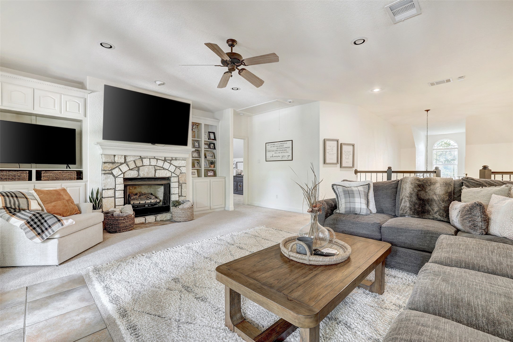 Private retreat in The Woods of Fountainwood on a wooded one-acre lot with a resort-style backyard. This 4,258 sq ft home features 4 bedrooms, 4 baths, three living areas, and a versatile flex space. Ideal for entertaining, the spacious kitchen opens to the main living area with sliding glass doors leading to the pool, hot tub, raised garden beds, and chicken coop. Property includes a 25x35 detached, insulated shop with electricity. Located in GISD schools with a low tax rate.