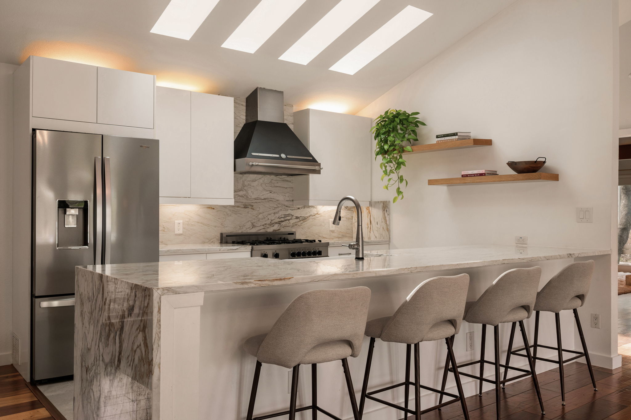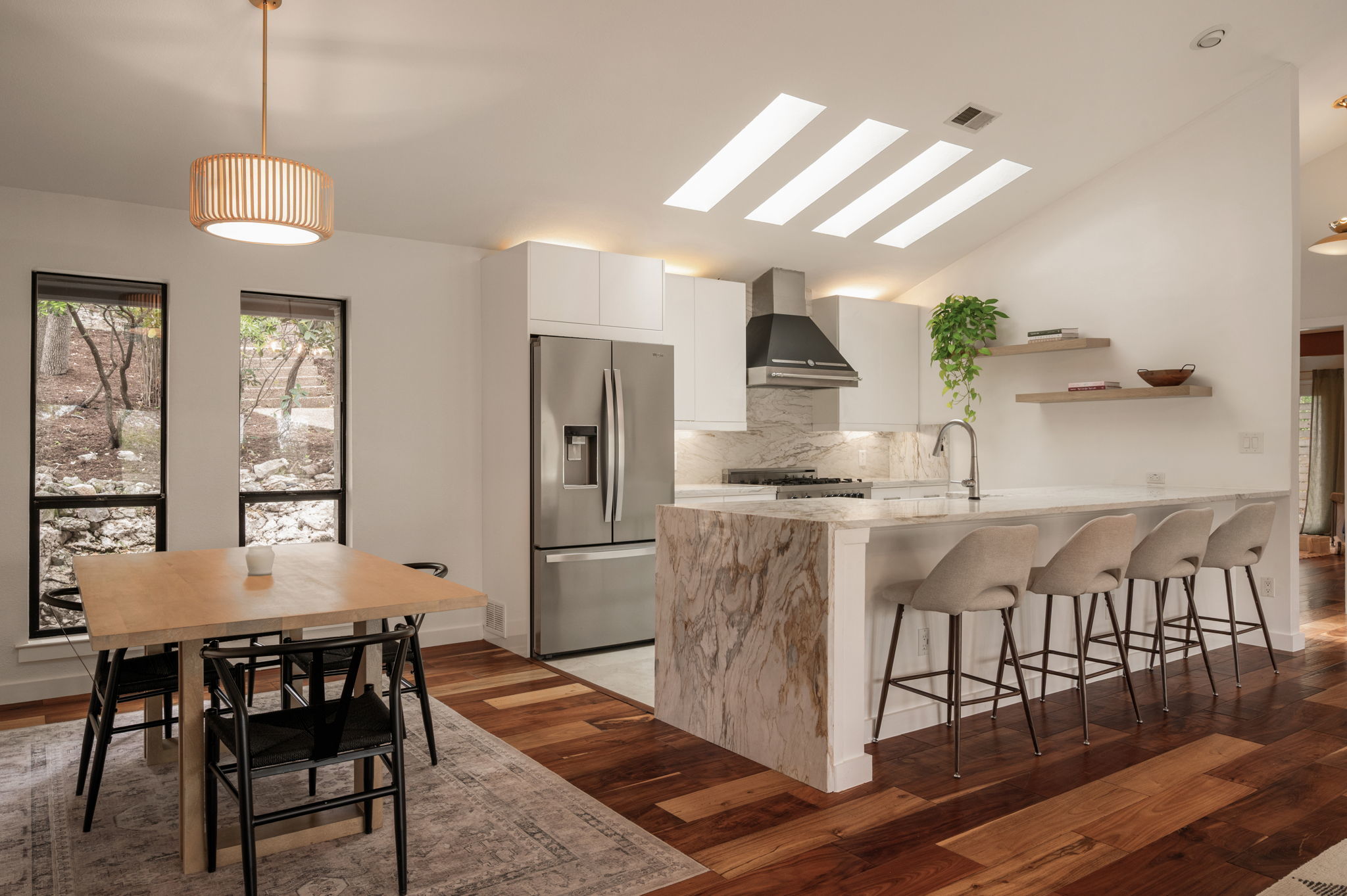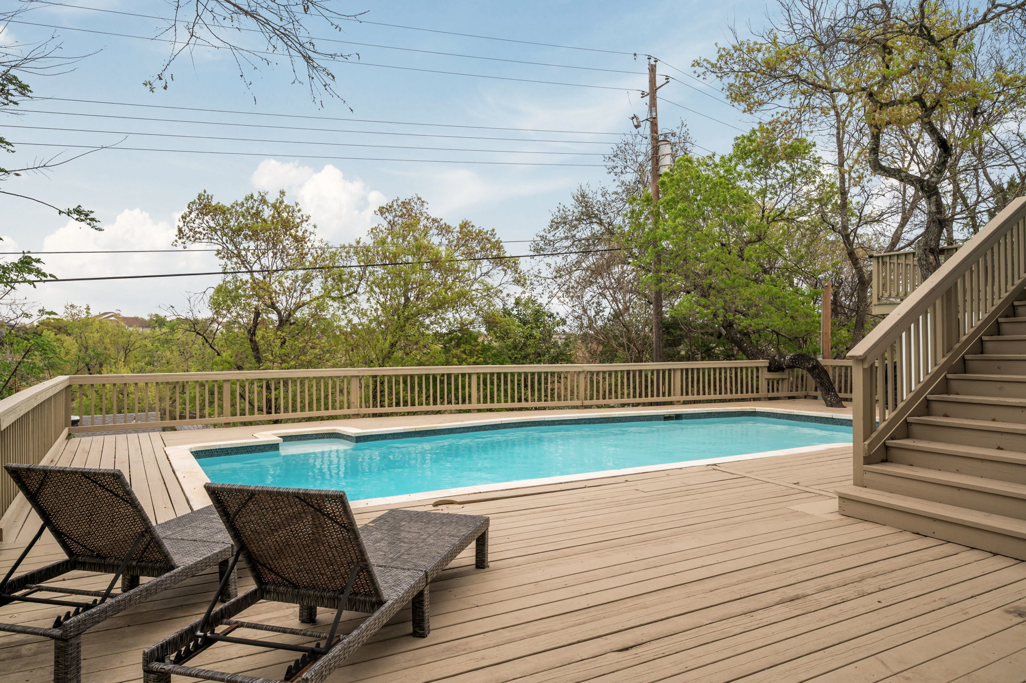 Fully renovated and move-in ready, this beautifully updated 2,982 sq ft home sits on a private 0.23-acre bluff lot in the heart of Northwest Hills, surrounded by mature trees and exceptional treetop privacy. Extensively improved over the past year, the home features significant recent capital upgrades including a brand-new roof, a recently replastered in-ground pool, a fully remodeled primary bathroom, and an upgraded secondary bathroom, delivering peace of mind with no deferred maintenance. The chefs kitchen features professional-grade appliances, marble countertops, and custom cabinetry, flowing seamlessly into spacious living and dining areas ideal for entertaining. A thoughtful in-law floor plan allows the home to live primarily like a single story, with the primary suite and secondary bedrooms located on the main level and only the fourth bedroom upstairs. The secondary bathroom offers direct access to the outdoor deck, allowing it to function conveniently as a pool bath, while the primary suite also enjoys access to the outdoor deck and tranquil treetop views. Outdoor living is elevated with two-tiered decks, a private lower yard, and low-maintenance landscaping designed for easy enjoyment. Located just 0.3 miles from top-rated Doss Elementary and Murchison Middle School, with Anderson High School nearby, the home also offers quick access to Mopac, 2222, Far West shopping, the JCC, and Downtown Austin just 15 minutes away. A rare opportunity to own a fully updated pool home offering privacy, walkability, and major system improvements in one of the most desirable established neighborhoods in Austin.