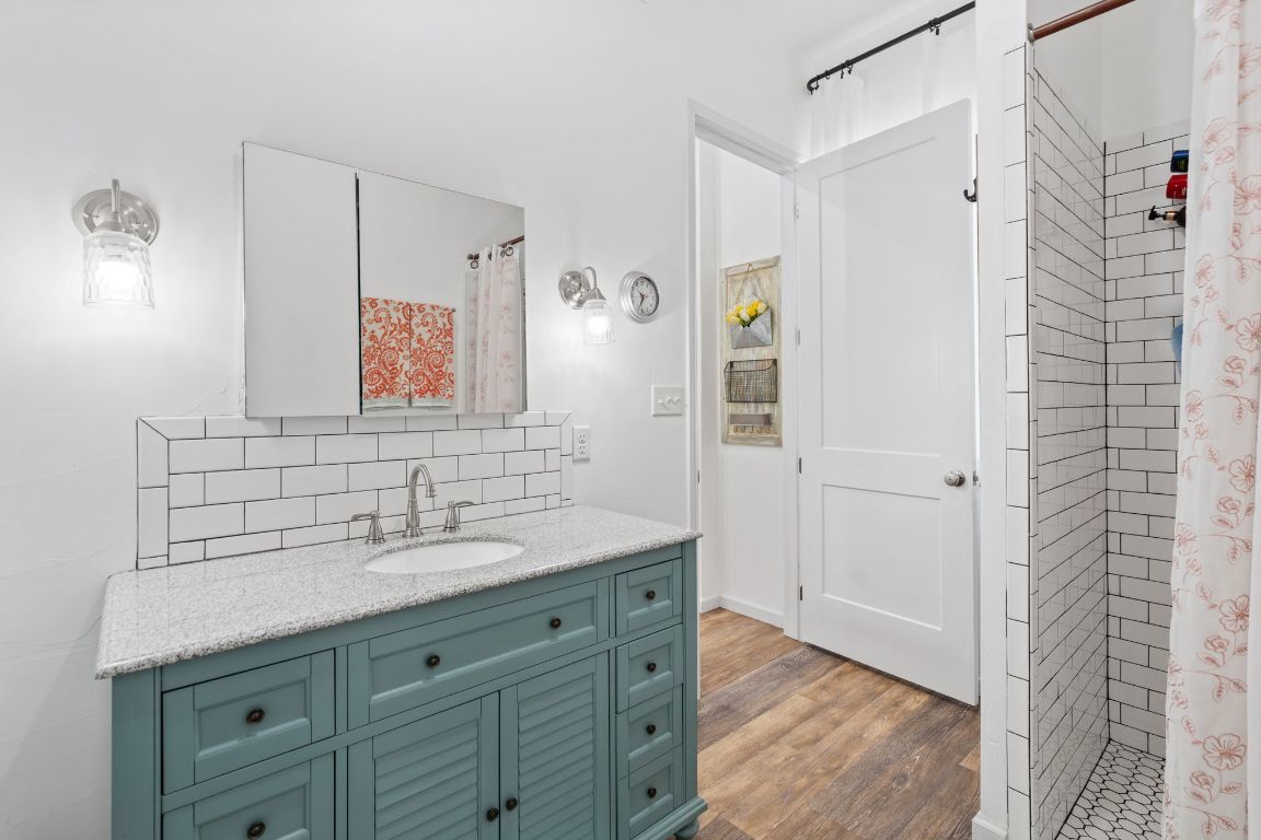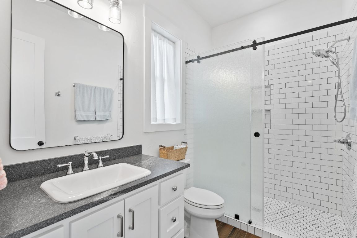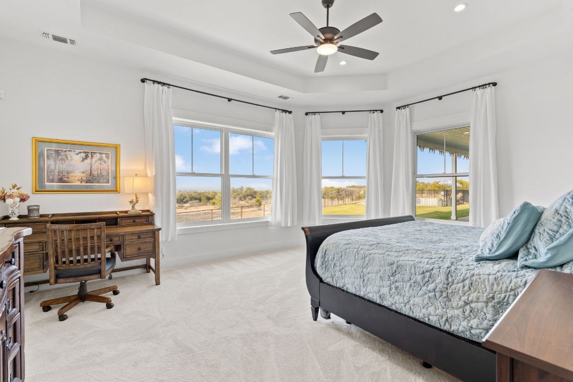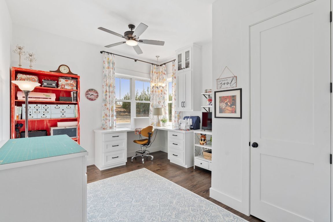 Set on 10 picturesque AG-exempt acres with sweeping Hill Country views, this exceptional single-story ranch-style almost 4400 sf estate offers privacy, comfort, and timeless Texas charm. A scenic drive leads to a thoughtfully designed residence with a heated swimming pool & hot tub, and stunning outdoor living spaces, an approximately 1280sf barn which includes an estimated 442 sf guest quarters, full bath and kitchenette. The heart of the home is a spacious kitchen featuring custom cabinetry, granite counters with chiseled edges, Chicago brick backsplash, walk-in pantry, large island, and dual-fuel cooking. The large open living area boasts a gas fireplace and a vaulted ceiling with exposed wood beams, creating a warm yet grand gathering space. One wing offers 3 bedrooms and 3 baths, including a flexible front room suitable as a playroom. The private owner’s suite is thoughtfully positioned on the opposite end of the house, featuring large windows that overlook the rolling Hill Country. This wing also includes two additional rooms—both with closets—ideal for extra bedrooms, offices, or hobby rooms, along with a hall bath, laundry room, and mud room. An approximately 8’ x 10’ heated and cooled storage room sits off the hall and leads directly to the double garage. This home was thoughtfully designed for comfort and efficiency, features solar screens, a whole-house generator, reverse osmosis system, water softener, and a high-capacity well. The roof was replaced in 2024, and there is a covered RV space attached to the barn offering convenience and versatility. Located just outside Johnson City, this rural retreat offers the perfect balance of seclusion and accessibility—Austin and San Antonio within a 60 min drive, and 30 miles to Fredericksburg’s renowned wine country, and close to numerous state parks and lakes. This is Hill Country living at its finest—beautifully designed, thoughtfully equipped, and ideally located.