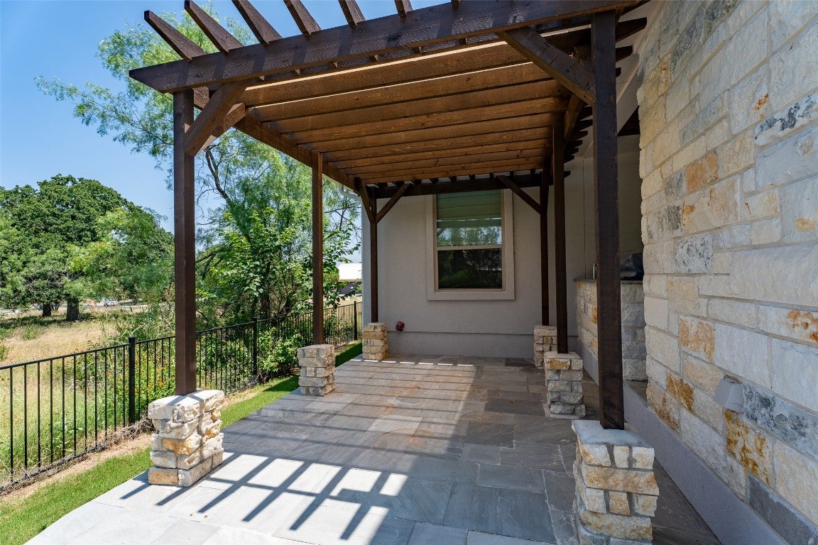 Looking for an investment property? A full time residence? Or, maybe a vacation home. This property can be all these things and more .With no HOA rental restrictions, rent short term or long term, providing income, but also owner use when desired. Located in HSB Proper only minutes from the Hotel this 2022 one story single family home boasts great curb appeal, lovely landscaping, a 2+garage, including a separate bay for that handy golf cart, wrought iron fencing and a bubbling fountain by the front door. With 3 bedrooms and 2.5. baths, the home has a spacious open floorplan with a gas fireplace, high ceilngs, oversized island, lots of cabinets, big pantry, stainless steel appliances and a gas cooktop. The primary suite is large with a separate tub and oversized shower and huge walkin closet. Off the main living space is a study/office with french doors and built ins. Separate laundryroom with sink. Outside find a covered patio, extended for more entertaining space, another gas fireplace with TV mount, a pergola and outdoor kitchen with grill andsink. Chandeliers, pendants lights, blinds and fans convey. Wired for Smart Home technology. Move in ready. Use of Club amenities requires membership in the Club of Horseshoe Bay.