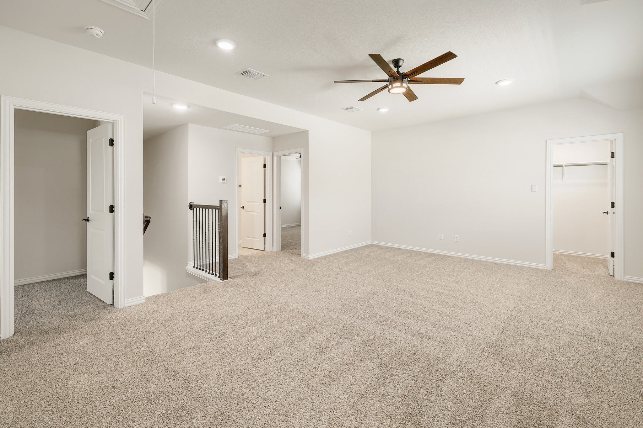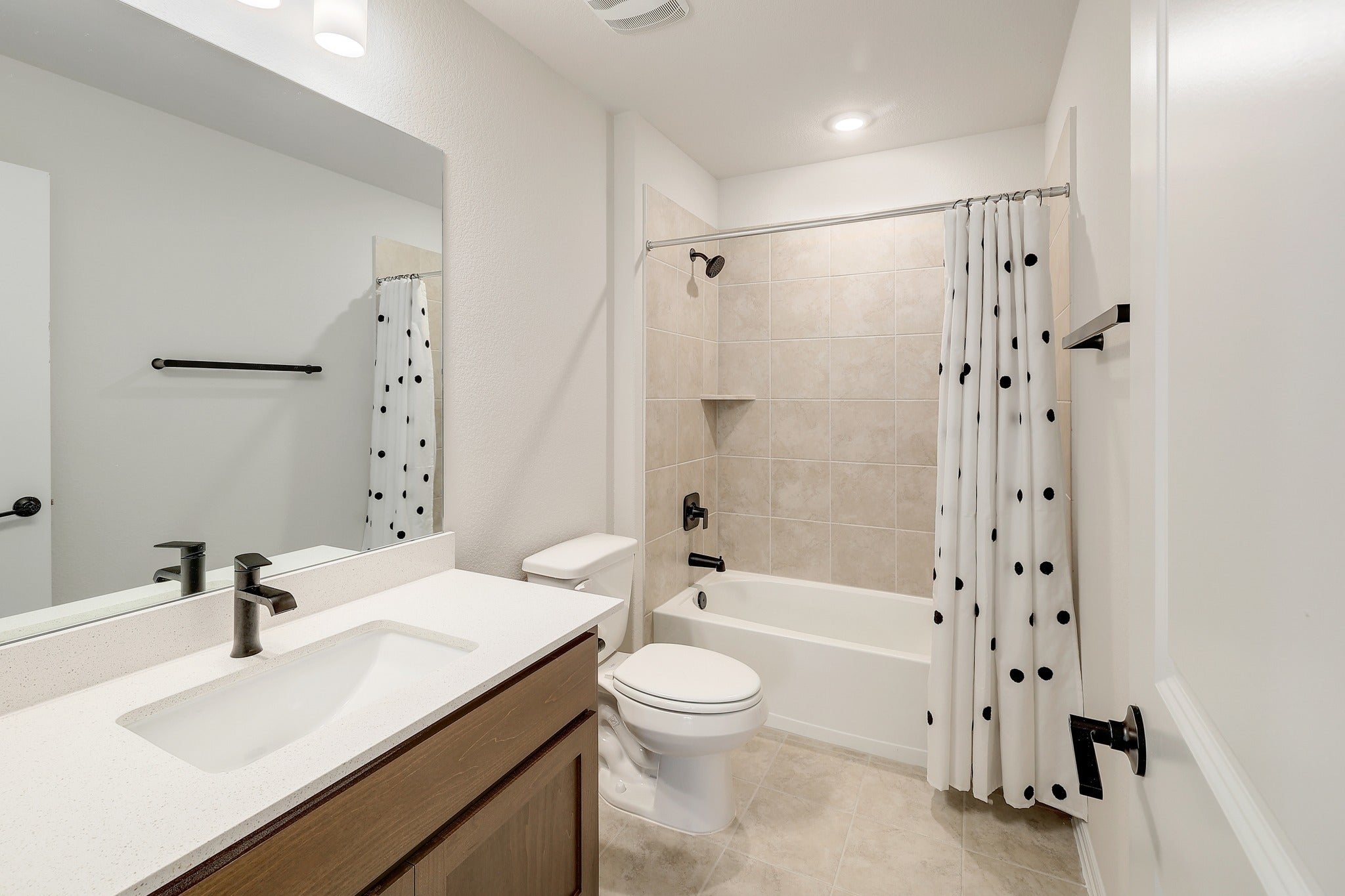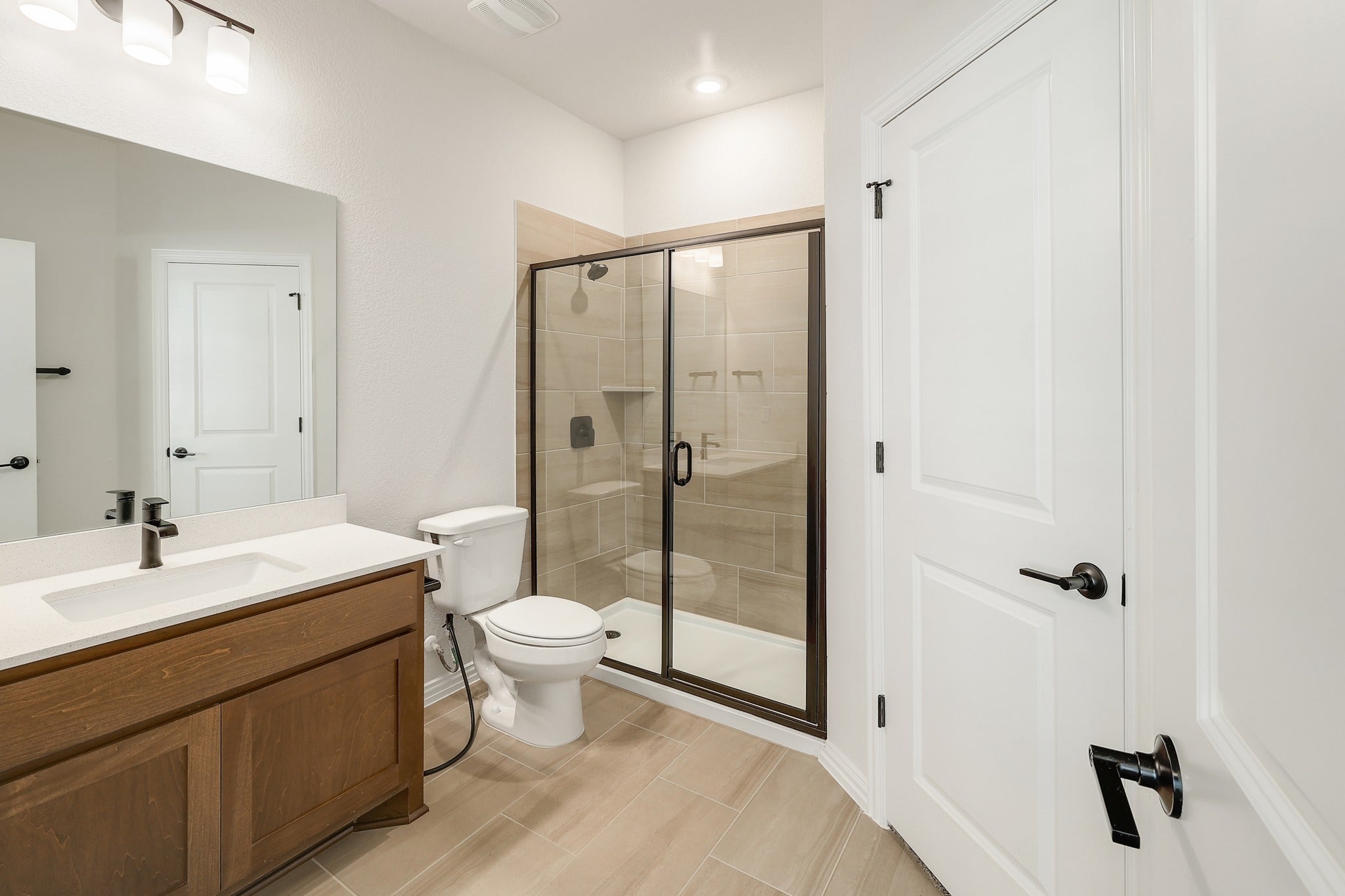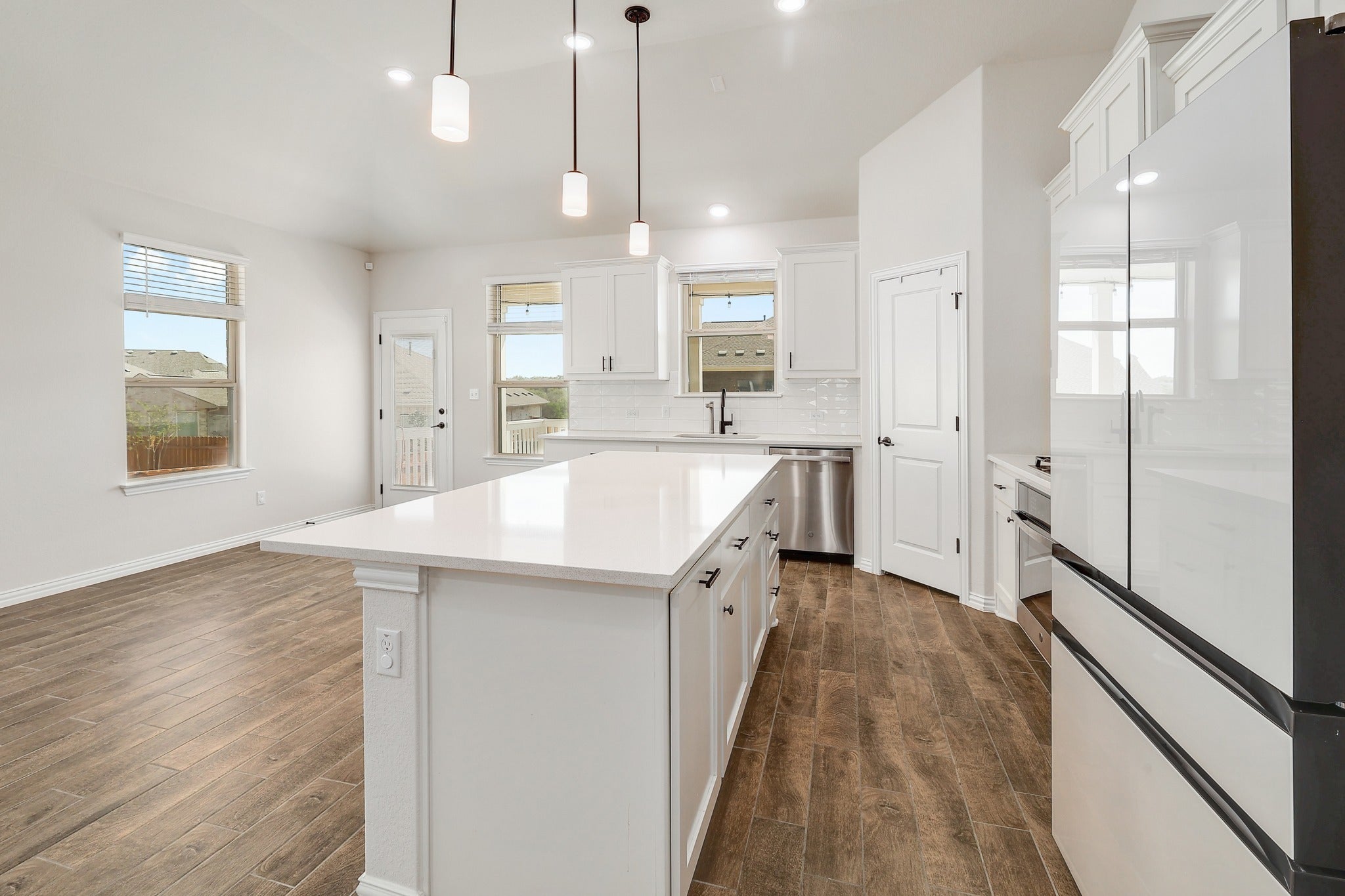 Welcome to 1228 Calendula — where style meets space in this stunning 5-bedroom, 4.5-bathroom home! From the moment you step inside, you'll be greeted by soaring high ceilings in the grand foyer, open to the second floor and setting the tone for the elegance throughout. Just off the entry, a main-floor bedroom with a private en-suite bathroom offers the perfect setup for guests or a home office. The heart of the home flows seamlessly from the living room into the kitchen and dining area — an open-concept layout ideal for entertaining and everyday living. Rich brown wood-look tile runs throughout the entry, living room, kitchen, and dining area, bringing warmth and sophistication to every step. Bedrooms are cozy with plush carpet for added comfort. The primary suite is truly a showstopper — featuring a spacious layout, a stunning bay window that floods the room with natural light, and an oversized closet you simply have to see to believe. Upstairs, you'll find three additional bedrooms, two of which share a convenient Jack-and-Jill bathroom — perfect for families or roommates. Enjoy added convenience with a full 3-car garage featuring a universal Tesla charger, plus a refrigerator, washer, and dryer all included. The home is also equipped with a whole-house water softener system and a tankless RO (reverse osmosis) drinking water system. Step outside to your extended 20' x 8' covered patio, designed for year-round relaxation and entertaining in your generous private backyard.