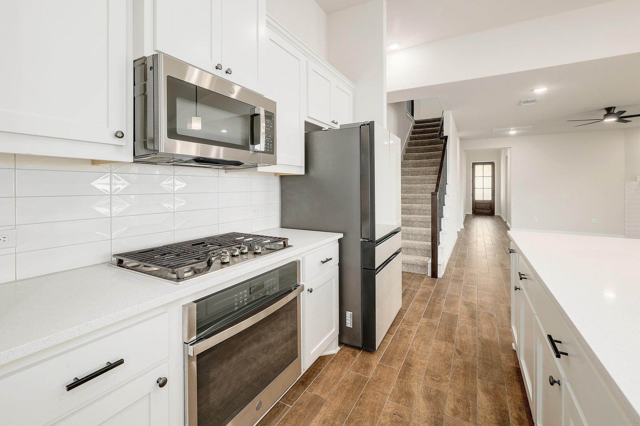 - Dryer, Dishwasher, ENERGY STAR Qualified Appliances, Gas Cooktop, Disposal, Gas Oven, Microwave, Refrigerator, Self Cleaning Oven, Stainless Steel Appliance(s), Water Softener, Tankless Water Heater, Washer