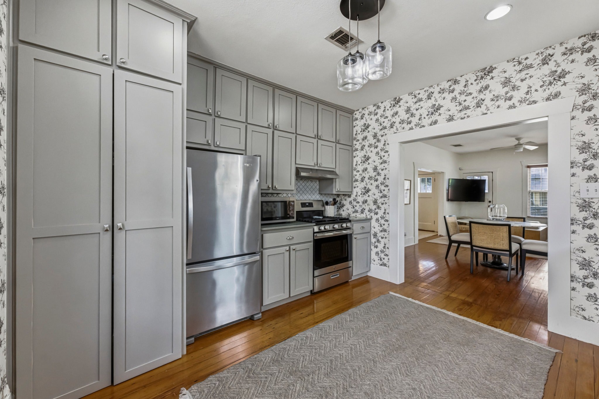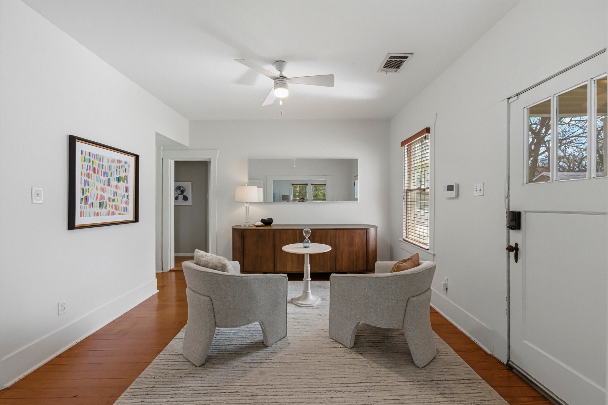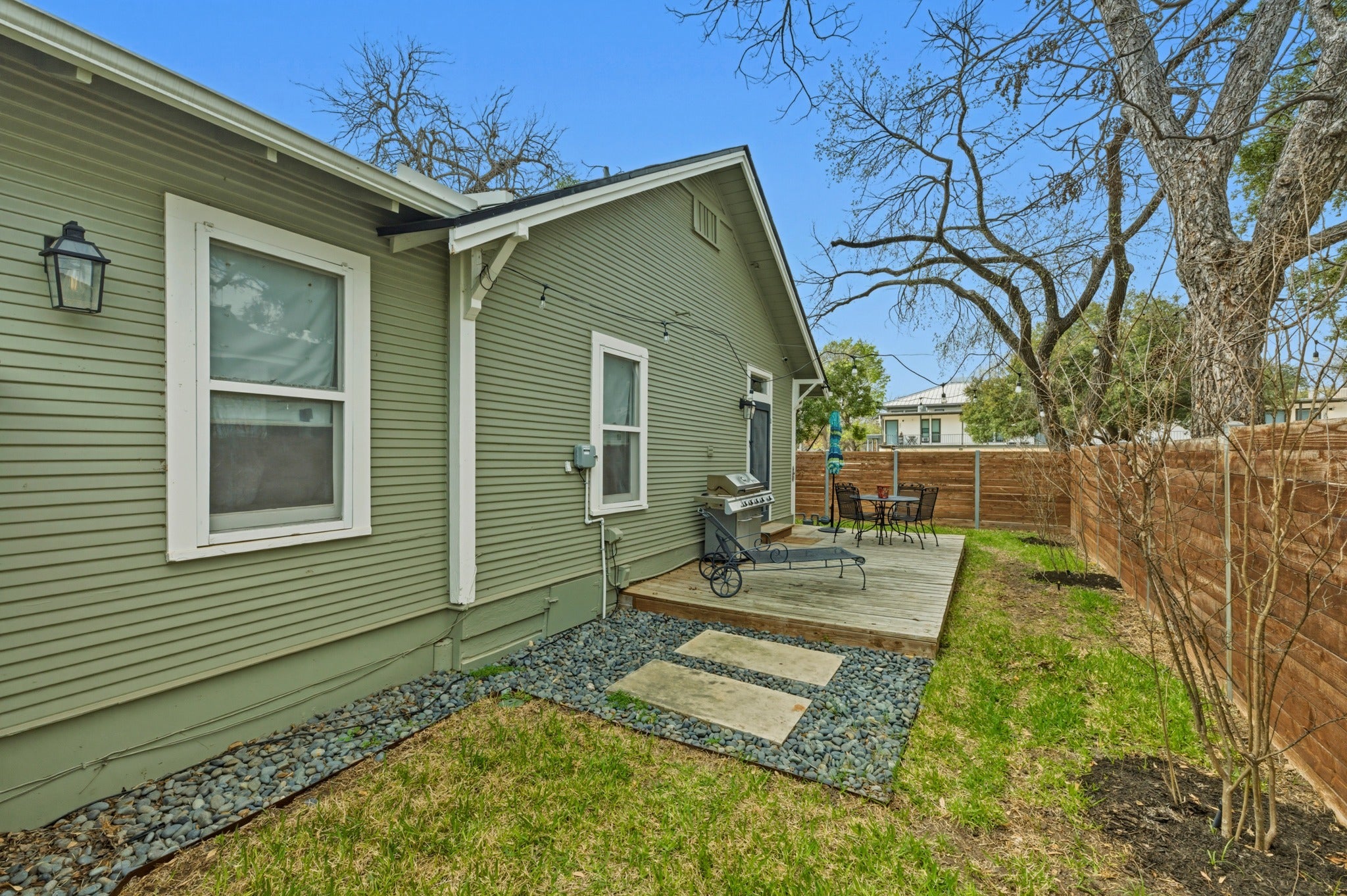 Craftsman gem in Historic Hyde Park Proper. This single family home is located in Austin’s oldest neighborhood characterized by tree lined streets and turn of the century architecture. This home blends original charm with thoughtful, practical updates. A front porch sets a welcoming tone and a wonderful space to relax and chat with neighbors as they walk past. Featuring tall ceilings throughout, refinished original pine floors, and an open floorplan that brings kitchen, dining, living, and backyard access seamlessly together. Unusually spacious for a bungalow of this era, the kitchen offers excellent storage and counter space, making it both functional and inviting. The primary bedroom includes a nice closet and bathroom with two sinks. Sitting on a quiet corner lot the yard has been fully fenced, landscaped and a complete property sprinkler system added. Out back, enjoy a private yard with an outdoor deck. An attached one-car covered carport with second entrance is perfect for unloading. True central Austin living with a short walk to neighborhood favorites like First Light Books, Shipe Park, All Day Pizza, and more. No walls are shared and there is no HOA fee making it truly a single family home. Please see the attached list of improvements. All appliances convey.