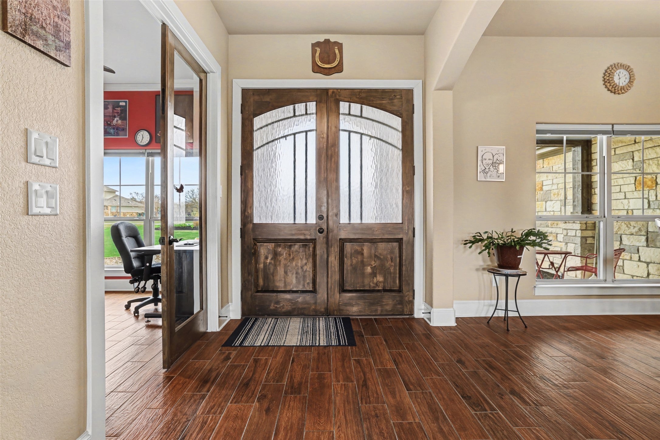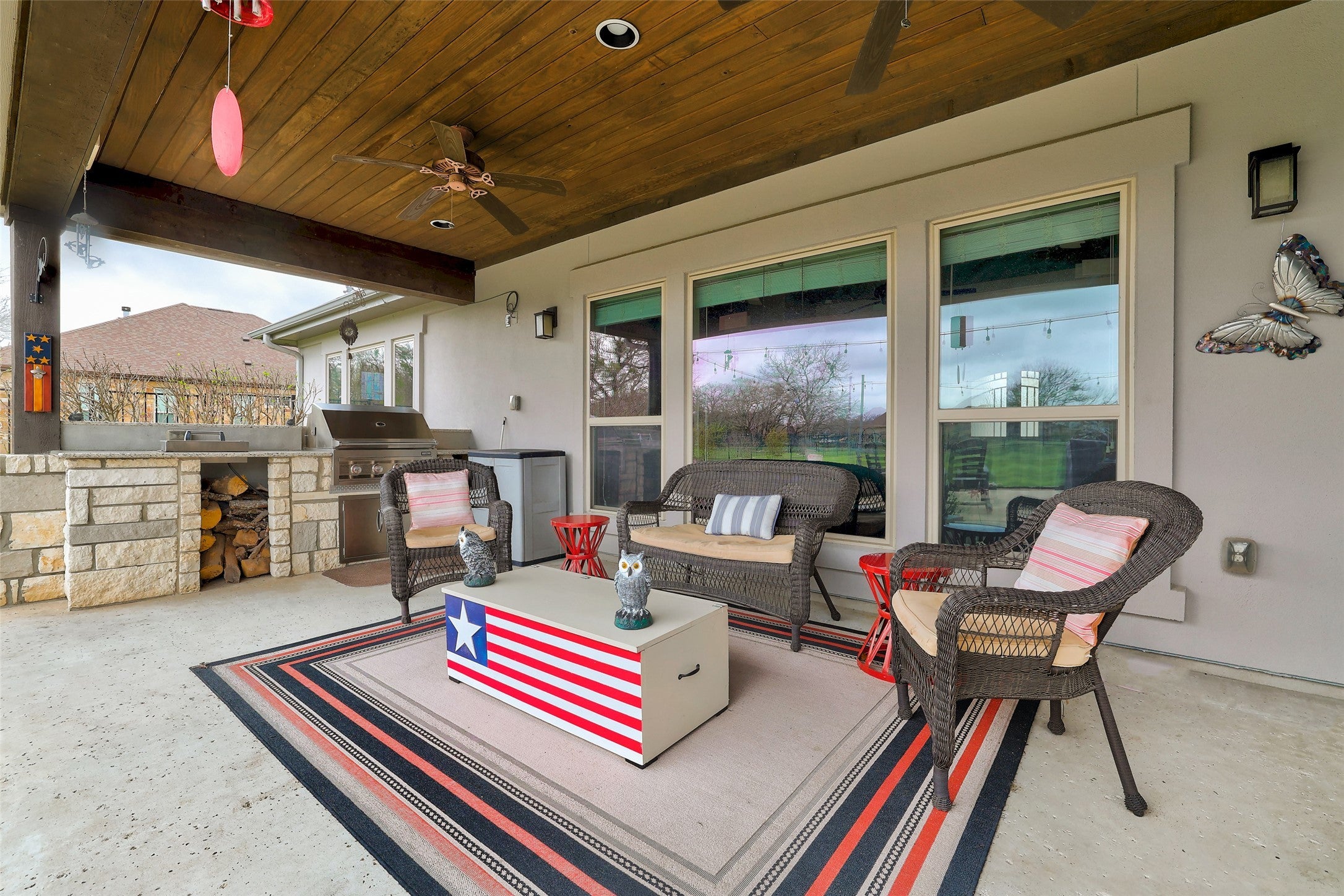 1-Acre Georgetown Home with Climate-Controlled Workshop in Mission Oaks. Located on a beautifully landscaped 1-acre lot in the desirable Mission Oaks community of Georgetown, this custom single-story home offers over 3,000 square feet of thoughtfully designed living space, exceptional flexibility, and a rare climate-controlled workshop ideal for hobbies, projects, equipment, or workspace needs. The functional floor plan includes two private primary suites, making it ideal for multigenerational living, guests, or extended family. A dedicated home office provides a quiet work-from-home environment, while the formal dining room offers the perfect setting for gatherings and entertaining. The spacious family room features a stone fireplace and opens to the main living areas, creating a warm and inviting central space. A secondary den/lounge offers additional flexibility for media or a private retreat. Outdoor living is exceptional with two covered backyard patios, one featuring an outdoor kitchen ideal for entertaining and weekend gatherings. An additional 25x45' open patio with sunshades provides an expansive space for outdoor dining, relaxing, or hosting larger events while enjoying the peaceful 1-acre setting and Big Texas skies. A standout feature of the property is the climate-controlled workshop, offering exceptional versatility for woodworking, hobbies, gym or creative workspace. The oversized garage and extended parking areas provide additional room for vehicles, and recreational gear. Located in Georgetown’s sought-after Mission Oaks neighborhood known for large lots, privacy, and scenic surroundings, this property offers the rare opportunity to enjoy space, functionality, and flexible living while remaining convenient to shopping, dining, and major commuter routes. If you’ve been searching for a Georgetown home on acreage with a workshop, dual primary suites, and flexible living space, this Mission Oaks property delivers an exceptional opportunity.