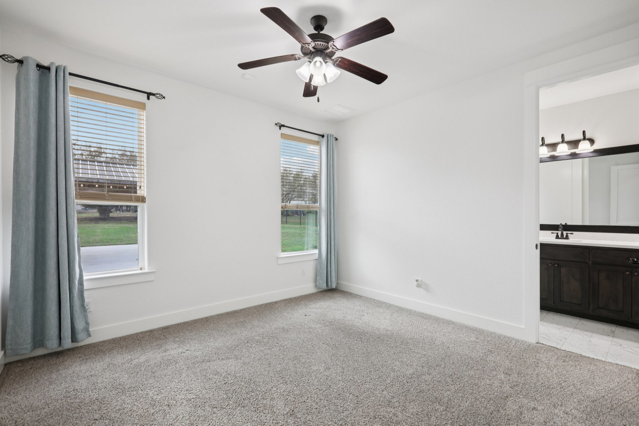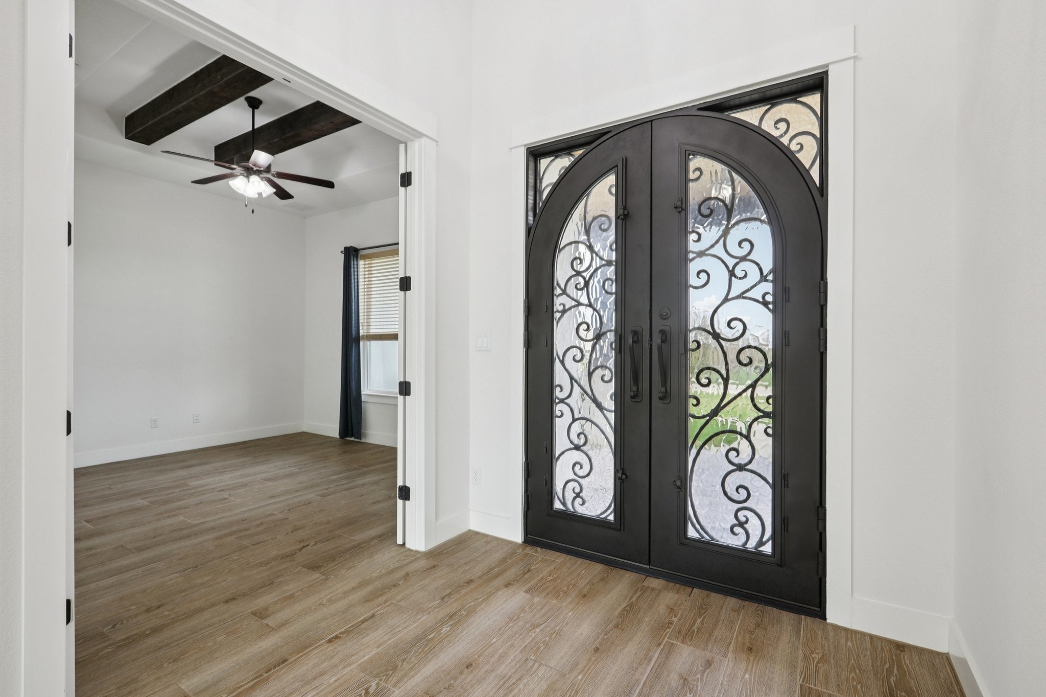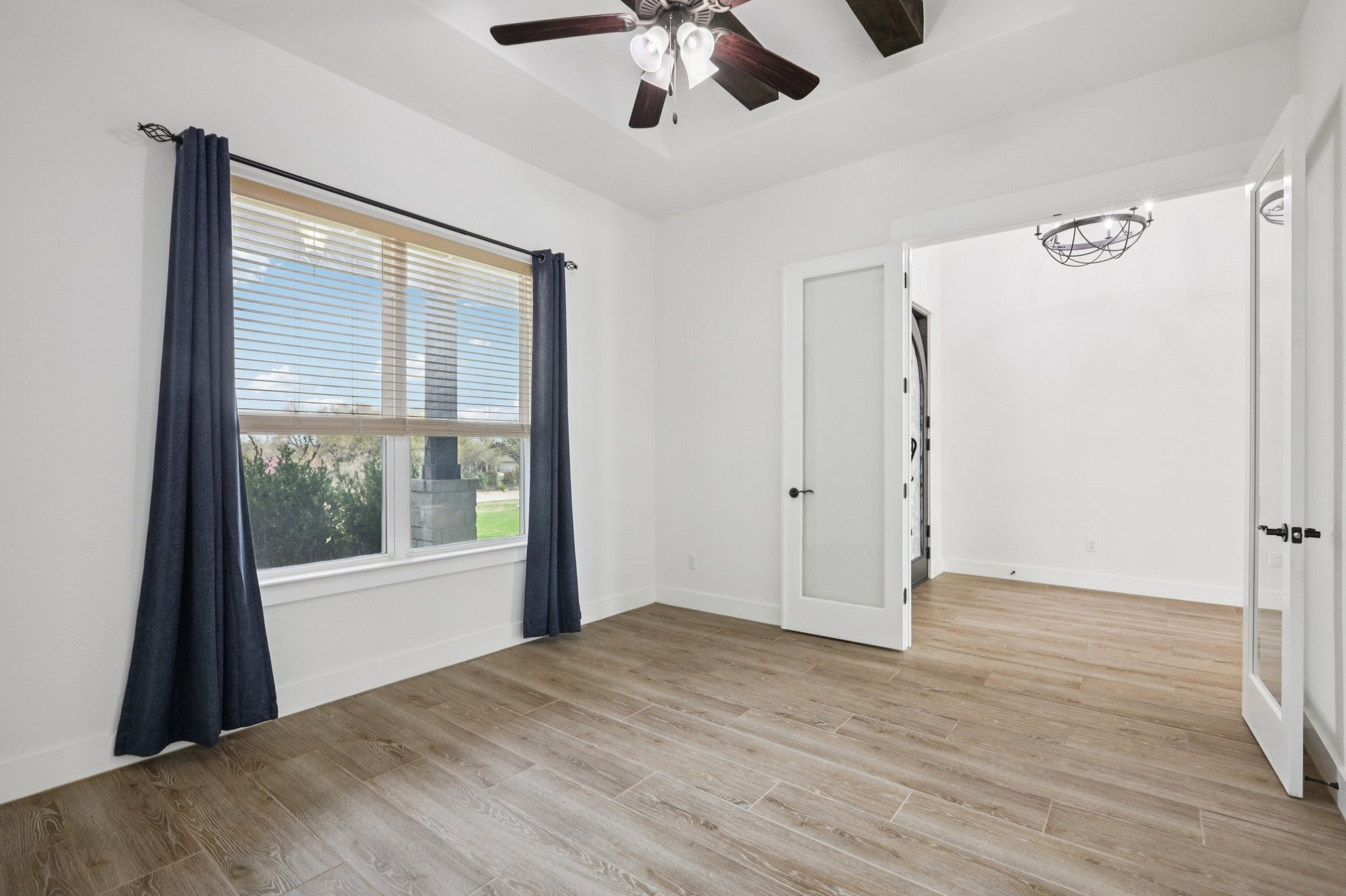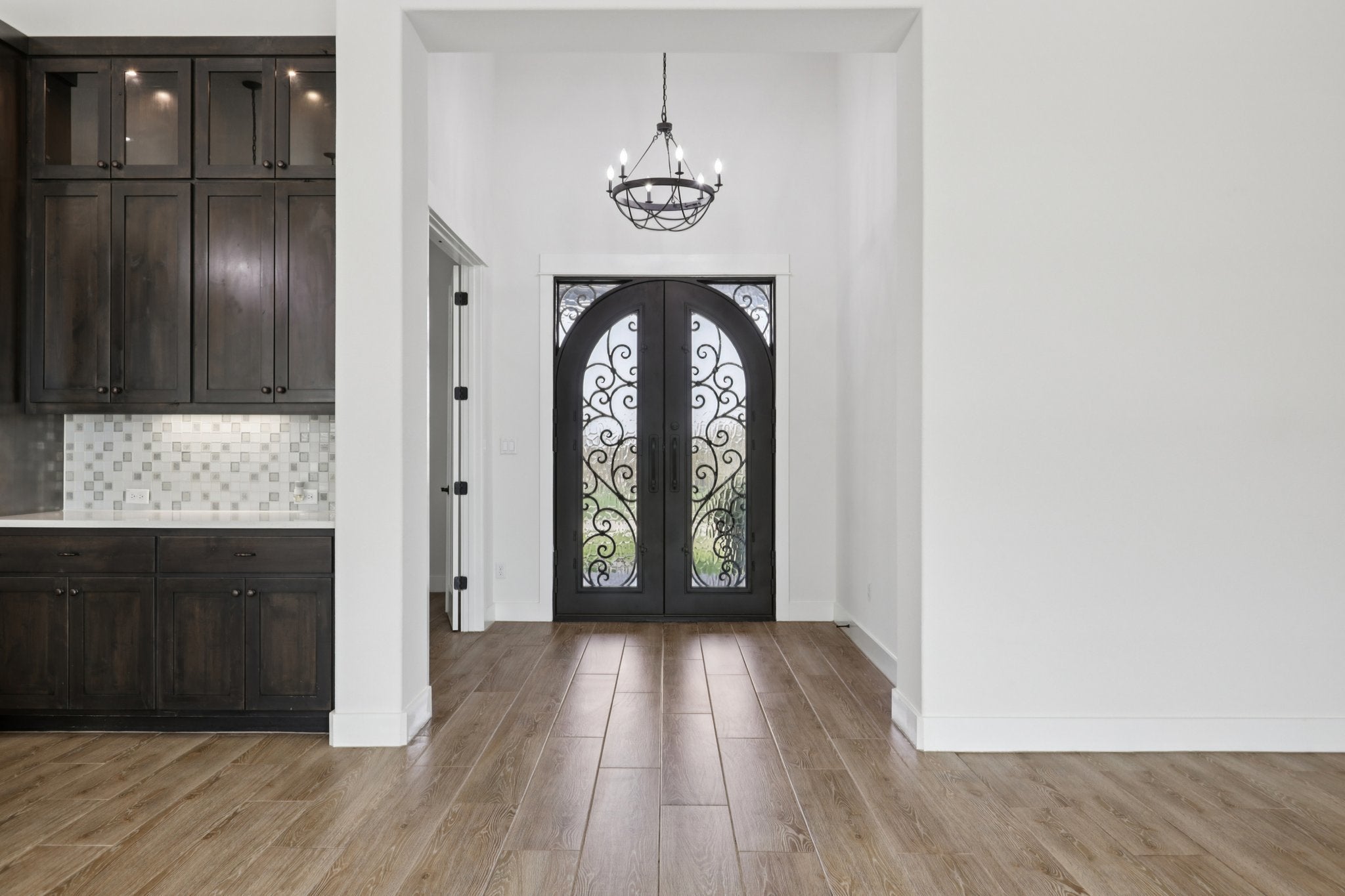 Situated on a beautiful 1 acre lot with mature trees, 112 Red Mulberry offers exceptional indoor and outdoor living in Leander. This thoughtfully designed home features 4 bedrooms, 3 bathrooms, a dedicated office, and a spacious 3 car garage with epoxied floors and built in storage. The interior showcases impressive ceiling heights, including 12 foot ceilings in the great room.The main living area is anchored by a floor to ceiling stone fireplace and enhanced with recessed LED lighting, custom light fixtures, and built in surround sound speakers.The gourmet kitchen is designed for both functionality and entertaining, featuring quartz countertops, cabinetry extending up to 10 feet, an induction cooktop, double ovens, a Blanco Silgranit 33 inch sink, and a spacious walk in pantry with a custom door. The primary suite offers a relaxing retreat with a large walk in shower, 6 foot soaking tub, and custom shelving in the primary closet. Additional bedrooms include custom closet shelving and generous storage throughout the home.Outdoor living is equally impressive with a heated and chilled pool, gazebo with power for lighting and television, fire pit area, and a fully equipped outdoor kitchen with built in grill and sink. The backyard is enhanced by mature trees, whole yard irrigation, and custom stone landscaping. Front and back porches feature custom tile and provide welcoming spaces to relax. Additional features include iron double entry doors, wood blinds throughout, water softener, whole house surge protector, alarm system, built in speakers on the back porch, and a mud bench area.This property offers a rare combination of acreage, custom finishes, and thoughtfully designed indoor and outdoor spaces.
