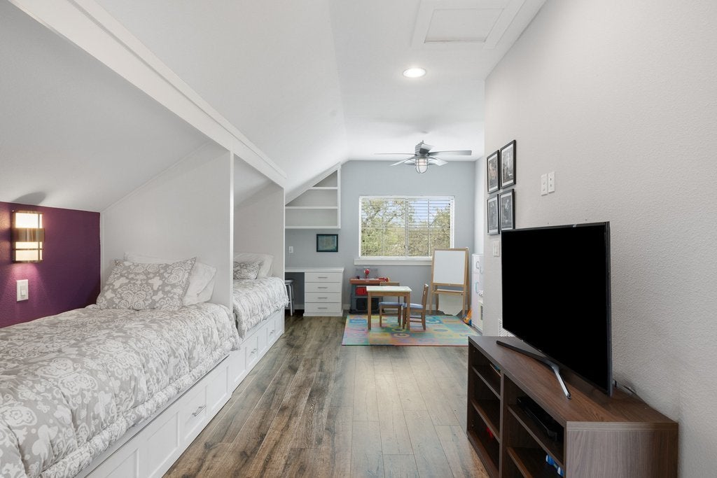 The ideal place to enjoy peaceful country living just minutes from New Braunfels. Perfectly situated on 10 beautifully level acres, this property features two homes on one tract and is ideal for extended family, guests, and entertaining. The main residence is designed as a single-story home with an oversized three-car garage. A formal living room and spacious private office welcome you inside, leading to a comfortable family room that opens seamlessly to the kitchen and breakfast area. The primary suite offers a large bathroom and generous walk-in closets, while additional bedrooms and baths are privately located on the opposite side of the home. The garage is designed to accommodate hobbies of all kinds and includes a rear overhead door for convenient access to equipment, lawn tools, or recreational vehicles. A short walk along a private trail reveals a secluded guest house tucked quietly out of sight — a beautifully finished retreat that may even out-shine the main home. The guest house features a main-level primary bedroom and an upstairs flex space with built-in bunk beds, perfect for hosting family and friends. The true highlight is the land itself. Expansive covered porches invite you to relax and take in the surrounding nature, while fire pits and winding trails create endless opportunities for outdoor enjoyment. Whether your interests include gardening, recreation, entertaining, or simply peaceful living, this property offers the space and flexibility to do it all. Completely gated and ready for immediate enjoyment, this is a rare opportunity to own a manageable private estate in a prime location. Call today to schedule an easy showing!