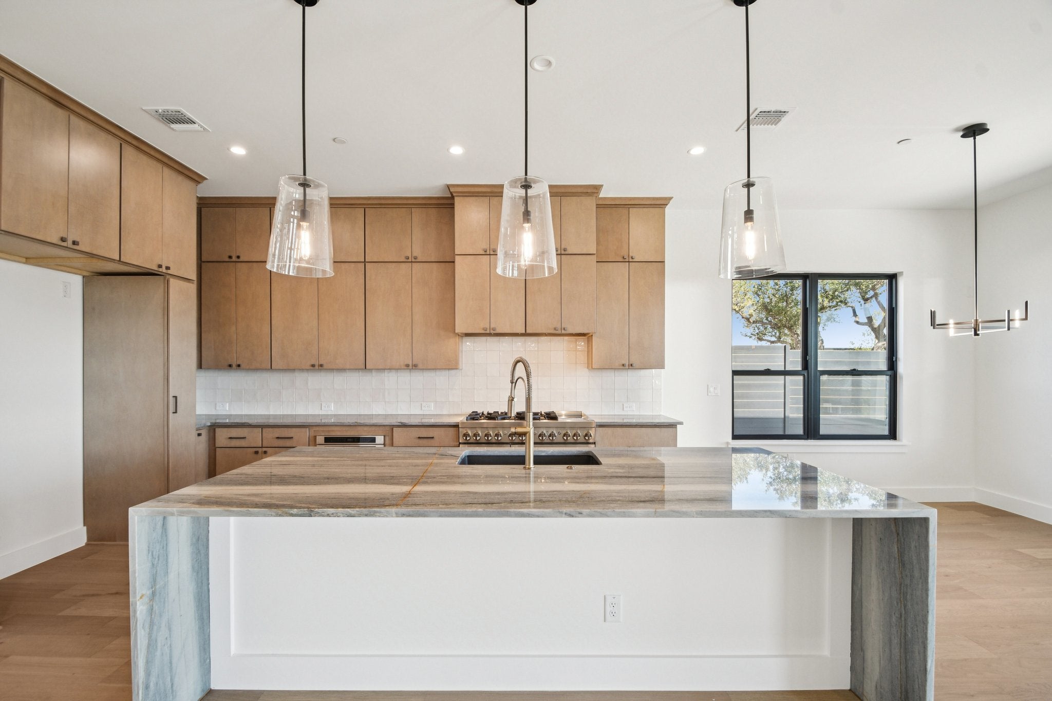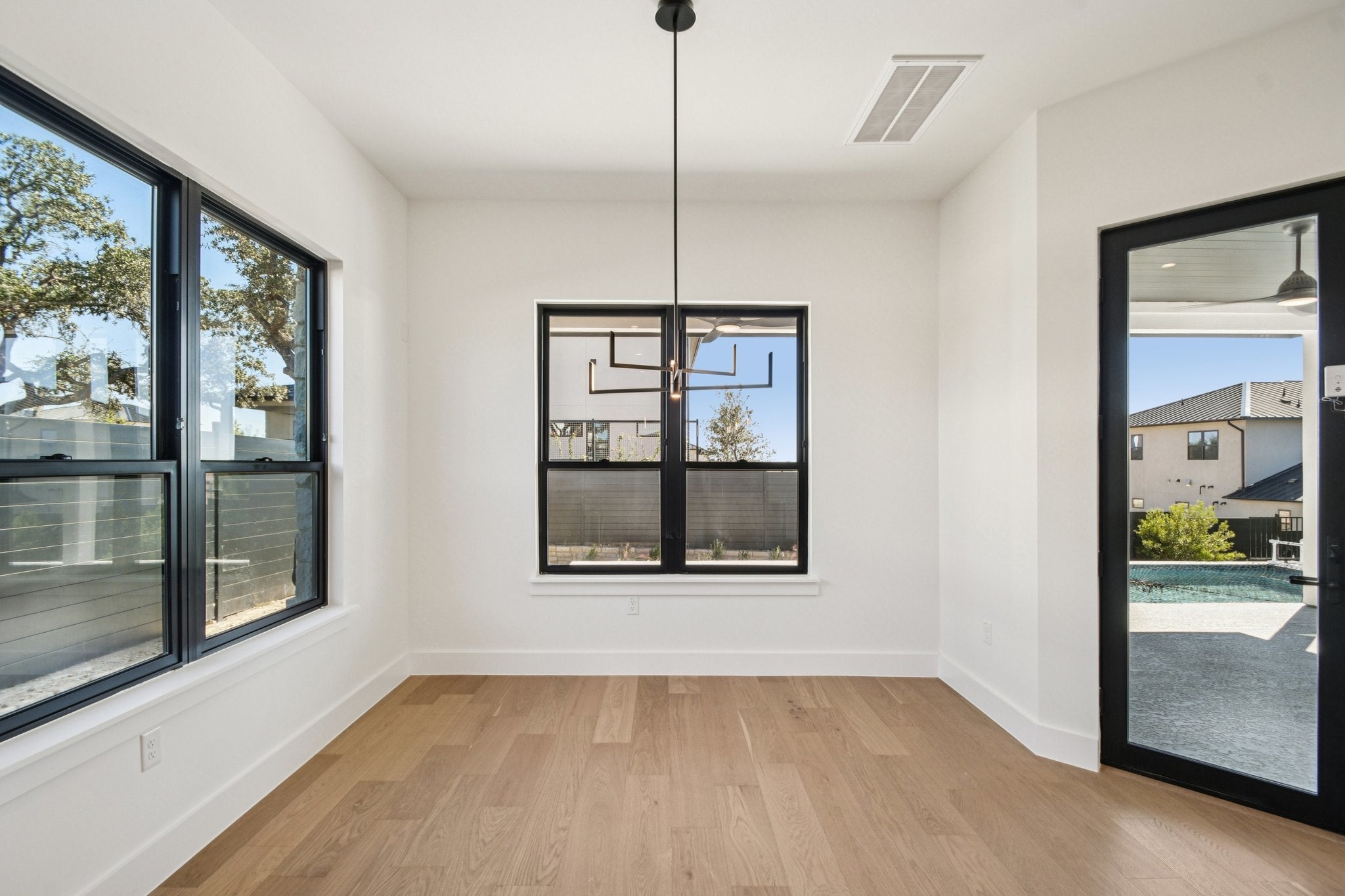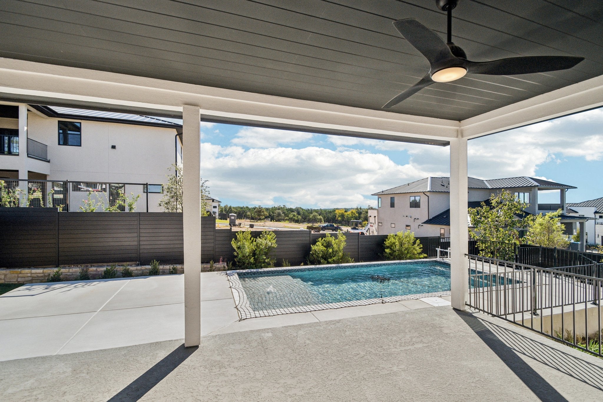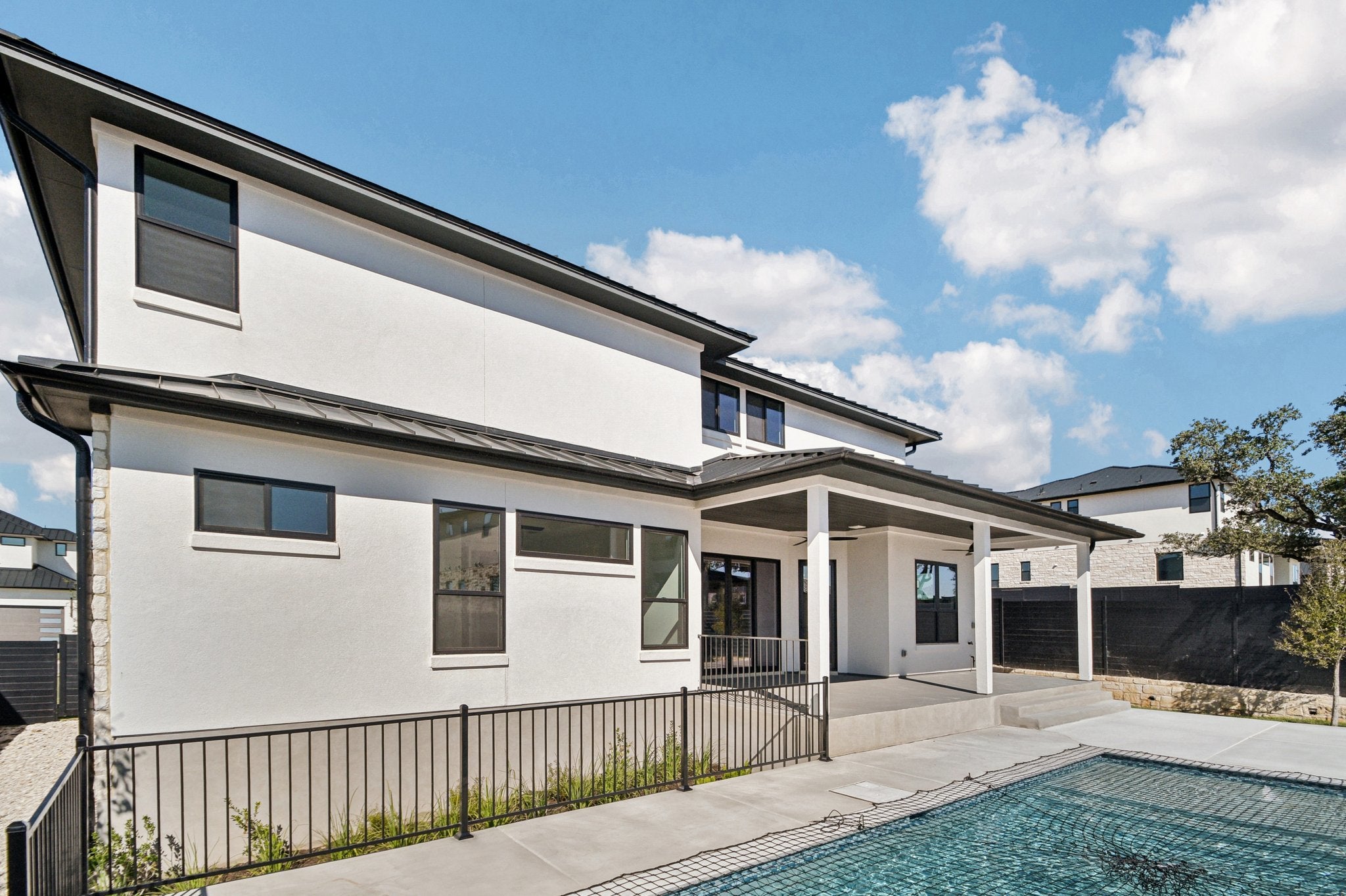 Welcome to 5903 Moondust Way, an exceptional luxury home in Milky Way at River Place, Austin’s highest elevation and the first new home community in this prestigious area in more than a decade. Built by M Signature, this residence features five bedrooms, three full baths, one half bath, and four spacious living areas including a private study, media room, gameroom, and an open-concept family room. A dramatic entry with soaring ceilings and a curved staircase sets the tone for timeless design throughout. Wide plank hardwood and tile flooring extend through every room with no carpet. The gourmet kitchen is designed for both elegance and functionality, offering a waterfall island, 63-inch soft-close cabinetry, a JennAir professional dual-fuel range, and designer finishes that seamlessly connect to the dining and family spaces. The first-floor primary suite is a true retreat, highlighted by vaulted ceilings and a spa-style bath featuring a freestanding soaking tub, walk-in shower, dual vanities, and a generous walk-in closet with direct access to the utility room. Upstairs you’ll find four additional bedrooms, a gameroom with an overlook into the formal dining area, and a media room with barn doors and prewiring for sound and data. Step outside to a beautifully landscaped backyard centered around a private in-ground pool, perfect for relaxing or entertaining. Additional features include a three-car garage, standing seam metal roof, Andersen windows, tankless water heater, spray foam insulation, and a high-efficiency HVAC system with a heat pump. Zoned to River Place Elementary and Vandegrift High and located near River Place Country Club, Sun Tree Park, and miles of scenic trails, this home offers exceptional design, comfort, and location.
