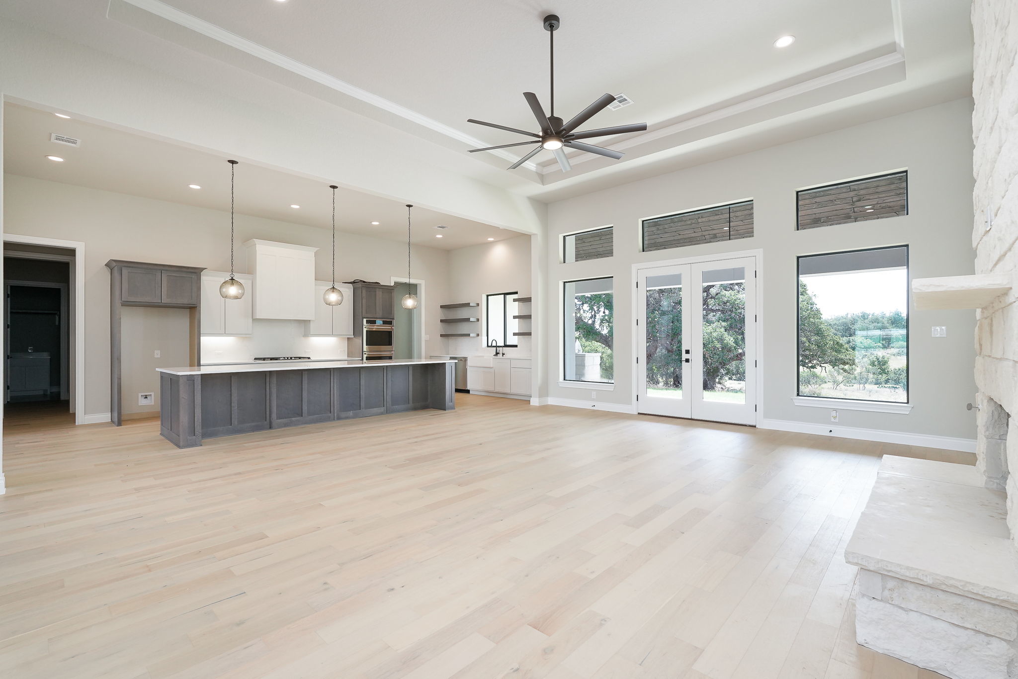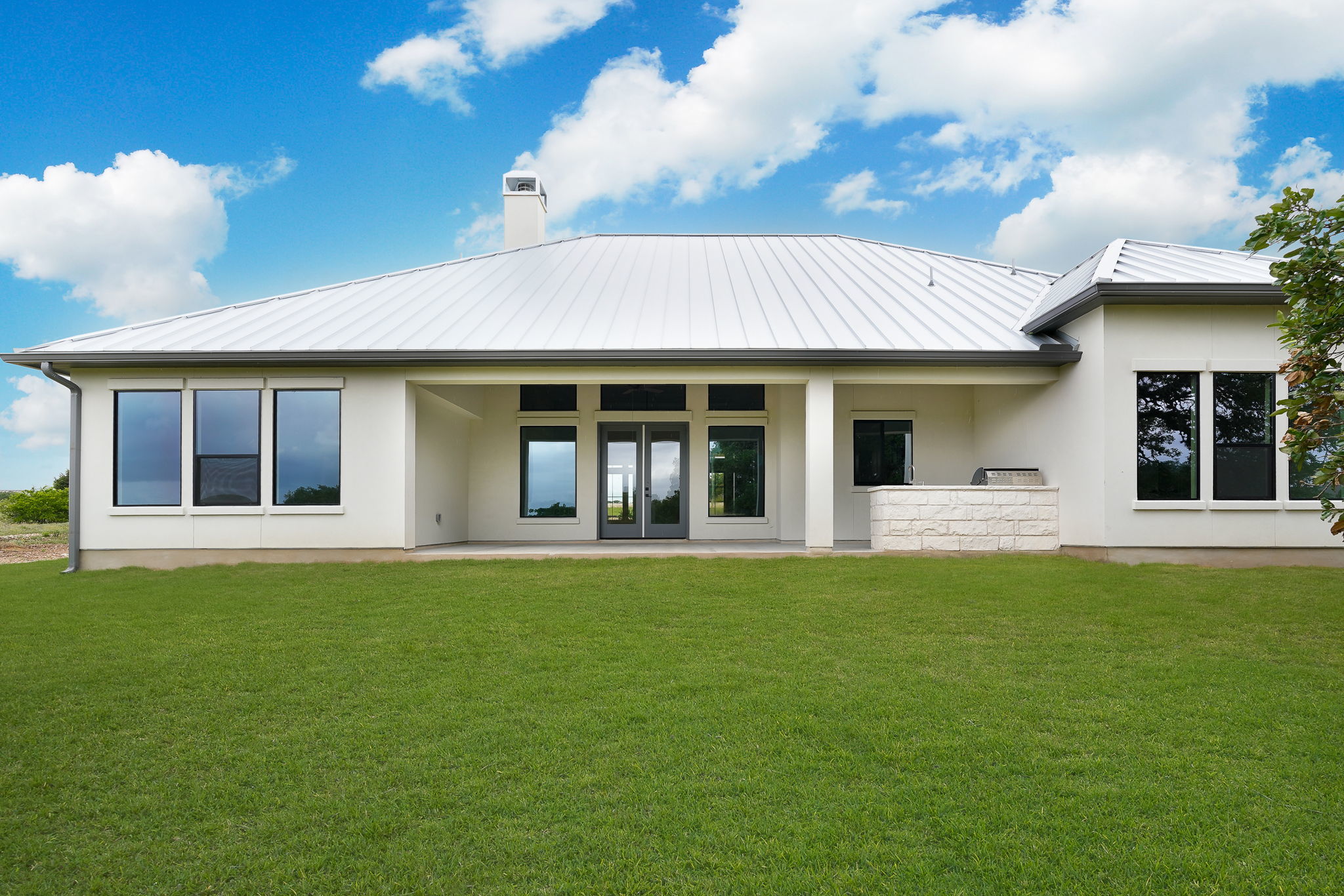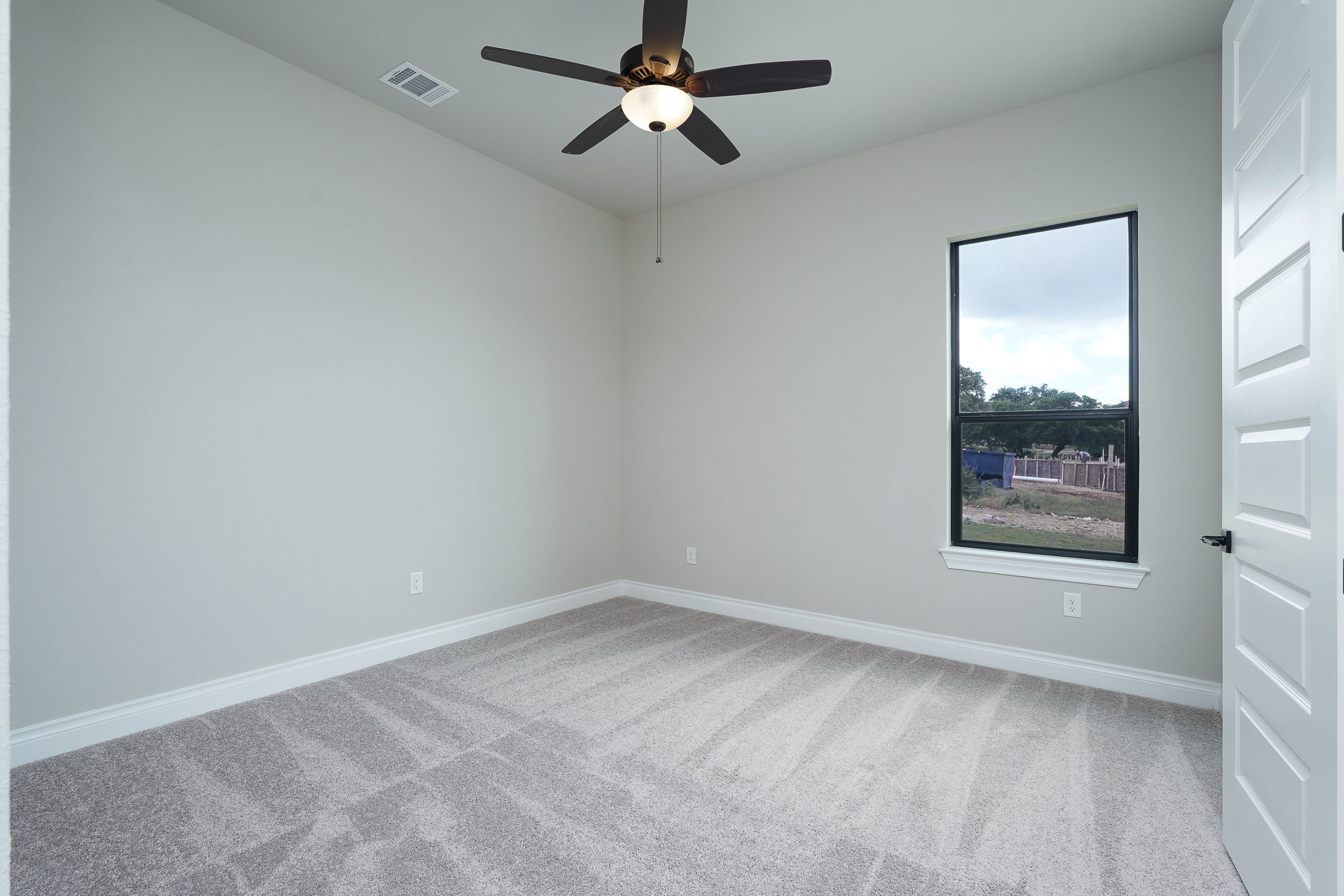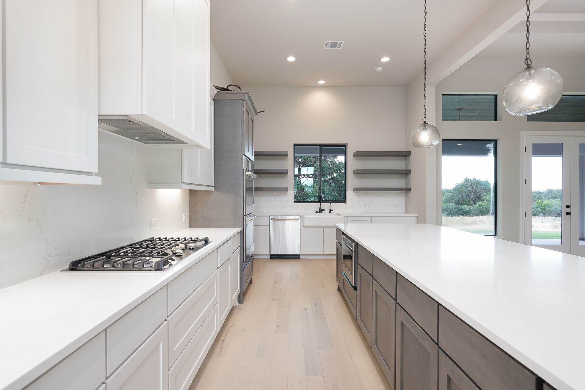 Beautifully designed 4-bedroom, 3.5-bath home in the highly sought-after Vintage Oaks community, where elevated design meets Hill Country living. A welcoming entryway with soaring ceilings flows into the open-concept main living space, featuring wood floors, large black-framed Ply Gem windows, and a stunning stone fireplace. The home offers both a formal dining area and a dedicated home office, providing flexibility for everyday living and entertaining. The chef’s kitchen features an 11ft center island, GE Café appliance package with a built-in double oven and 36” gas cooktop, a Kohler Whitehaven farmhouse sink framed by decorative floating shelves and soft-close cabinetry, and a spacious walk-in pantry. French doors open to a covered patio and backyard with serene Hill Country views, complete with an outdoor kitchen featuring a built-in grill and refrigerator, perfect for al fresco dining and backyard barbecues with friends and family. The primary suite feels like a private retreat with a freestanding tub, walk-through shower with floor-to-ceiling tile, dual vanities, and a walk-in closet with custom built-ins and a full-length mirror. A secondary bedroom with an ensuite bath is ideal for guests, while two additional bedrooms share a Jack-and-Jill bath. Beyond your front door, enjoy access to Vintage Oaks’ unmatched resort-style amenities, including a Tuscan-style clubhouse, miles of trails, a fitness center with saunas, a hot tub, and group classes, multiple pools and a lazy river, a playground, sports courts, picnic areas, and native gardens. Conveniently located just 20 minutes from Canyon Lake, Historic Downtown Gruene, and Downtown New Braunfels, this exceptional home offers the perfect blend of luxury and Hill Country living.