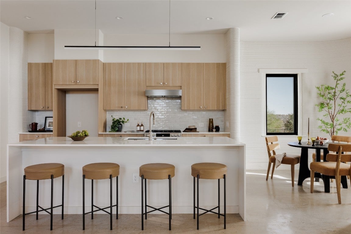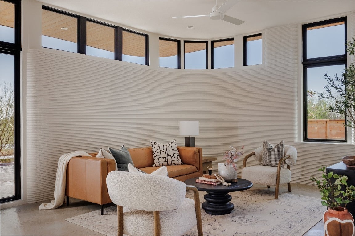 Inquire about preferred lender incentives. ICON’s newest 3D-printed homes are coming to Mueller! Designed by renowned Michael Hsu Office of Architecture and overlooking Mueller’s Southeast Greenway, these homes are the perfect combination of beautiful design, ICON’s resilient construction and an incredible location. This 2-bedroom home features an open-concept layout and modern design. Natural light shapes and enhances the living spaces with floor to ceiling glass facing the private yard, clerestory windows in the living room and oversized windows throughout the rest of the home including views over the Southeast Greenway and Morris Williams Golf Course. The first floor features an inviting open floor plan with a sleek and modern kitchen, sculptural dining alcove and light-filled living room overlooking a large private yard. Upstairs is the exceptional primary suite with massive windows, a beautiful en-suite bath and an additional bedroom and bathroom. The home’s exquisite finishes blend natural materials and luxury living, including polished concrete floors, quartz countertops, wood flooring, Andersen windows, Bosch appliances and standing seam metal roof. ICON builds high-performance, durable homes using robotic technology and proprietary cementitious-based material. Designed and engineered for precision, speed and resiliency, the innovative technology delivers homes with higher levels of insulation that decreases the home’s temperature fluctuations in the summer and winter, and the wall systems are designed to resist water, mold, termites and fire. Conventional construction methods for second story, roofs, windows and doors with elevated finishes are then used to complete the homes. Located in a coveted section of the Mueller community with expansive views of the Southeast Greenway, the innovative homes will be walking distance to restaurants, shopping, parks and more.