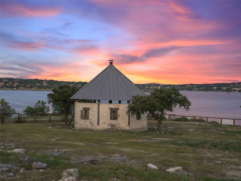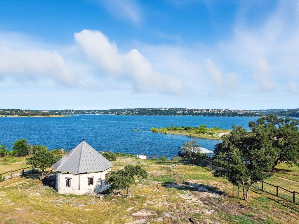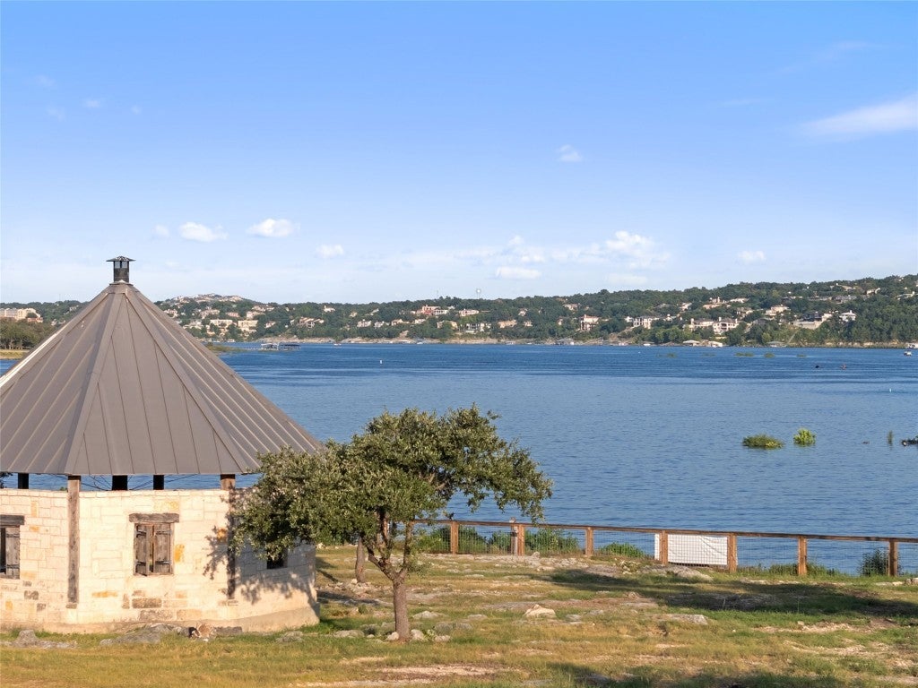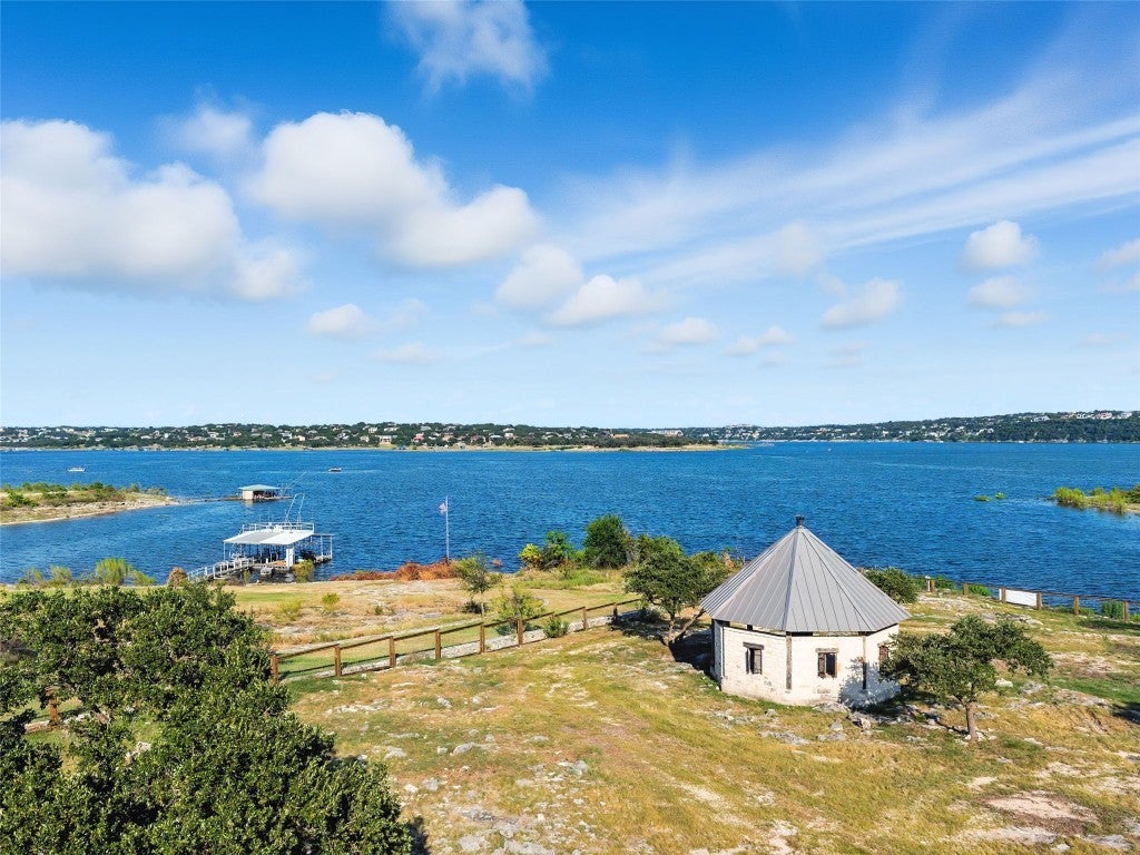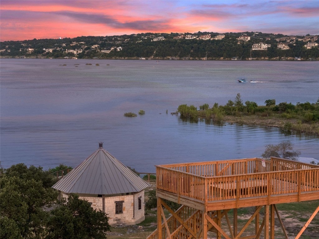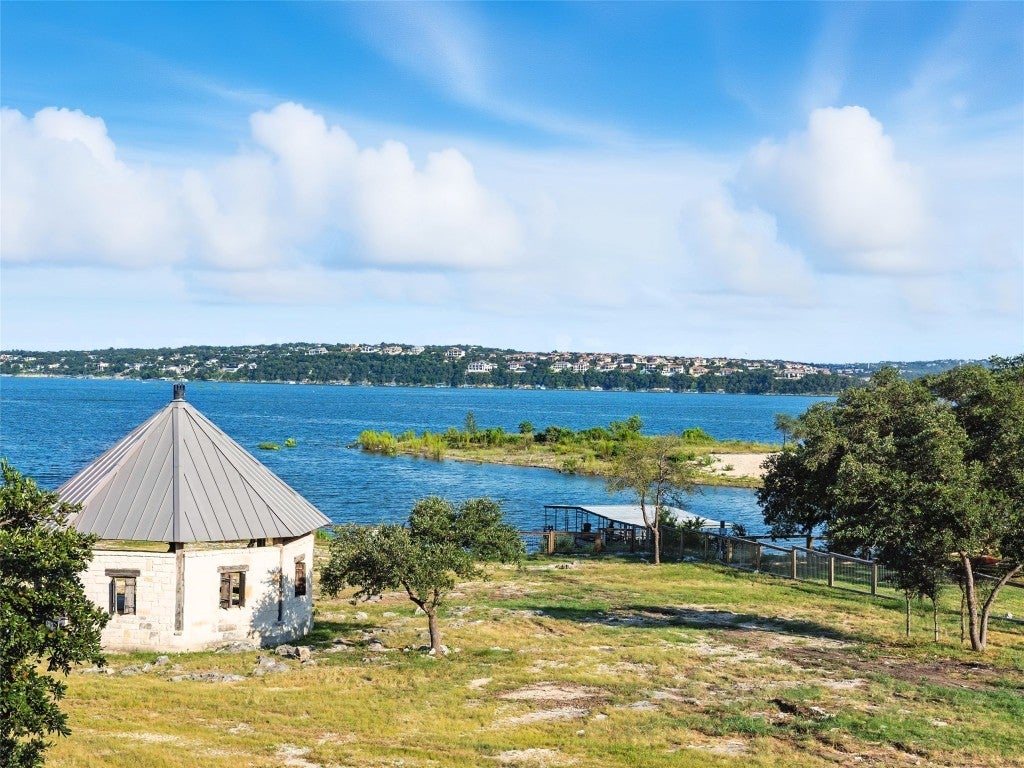 Spectacular 1.9 acre Lake Travis waterfront lot in the heart of Siesta Shores captures one of the best views of the adjacent Signature 5th Par 3 at Travis Club. This rare property boasts an exquisite gazebo visible from Travis Club, Austin's newest and most exclusive luxury golf club. (Artist renderings TravisClubAustin.com.) A viewing platform has been constructed at approximately 721' MSL (LCRA building guidelines) so the new owners may enjoy the breathtaking views of the oh-so-close Signature 5th green and expansive views of Lake Travis all the way from the cliff walls in Lago Vista across from the Reserve through Rough Hollow to Lakeway Resort! This property is ready for the new owners to build their dream estate; the property is fully fenced with 12' gate, 300 amp electrical service from PEC at the boathouse stairs with double railings (down to 656' MSL) serving the deep-water cove. Unincorporated Travis County and friendly POA provide limitless possibilities for unencumbered building of your dream lakefront estate with both waterfront access and views of the exclusive Travis Club golf course. Siesta Shores is a cherished community on the south shore of Lake Travis boasting two community parks and three boat ramps ensuring you will always have access to Lake Travis whether on your private boathouse or through the community parks and deep-water boat ramps. Siesta Shores Drive is currently under renovation by Travis Club and will soon enjoy a wonderful upgrade with two overhead passes serving Travis Club residents. This magnificent property is located within award-winning Lake Travis ISD and mapped to West Cypress Hills Elementary, Lake Travis Middle School, and Lake Travis High School. Do not miss this unique opportunity to enjoy the benefits of being on Lake Travis waterfront, adjacent to Travis Club, with none of the architectural restrictions required by an exclusive luxury club.