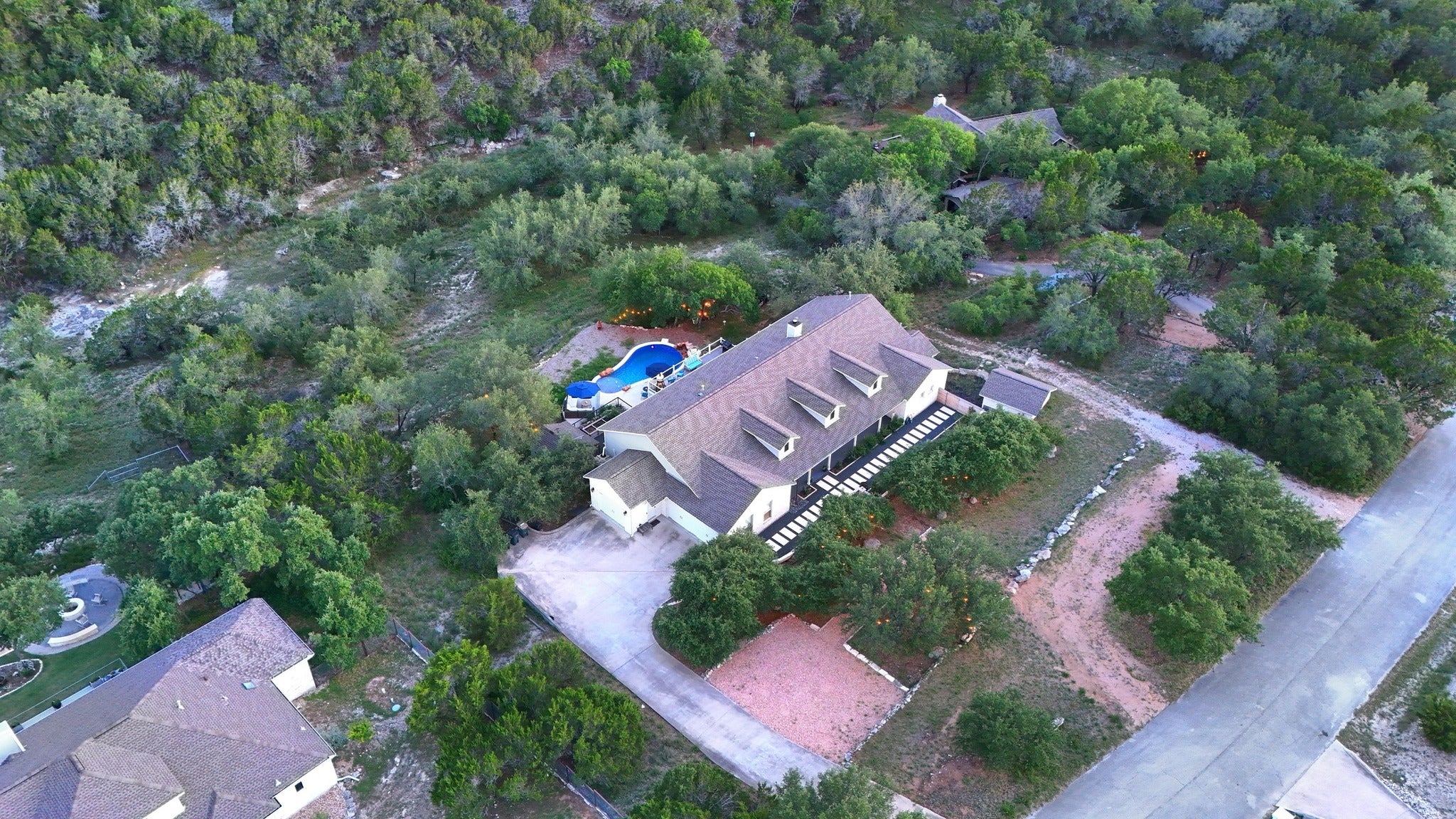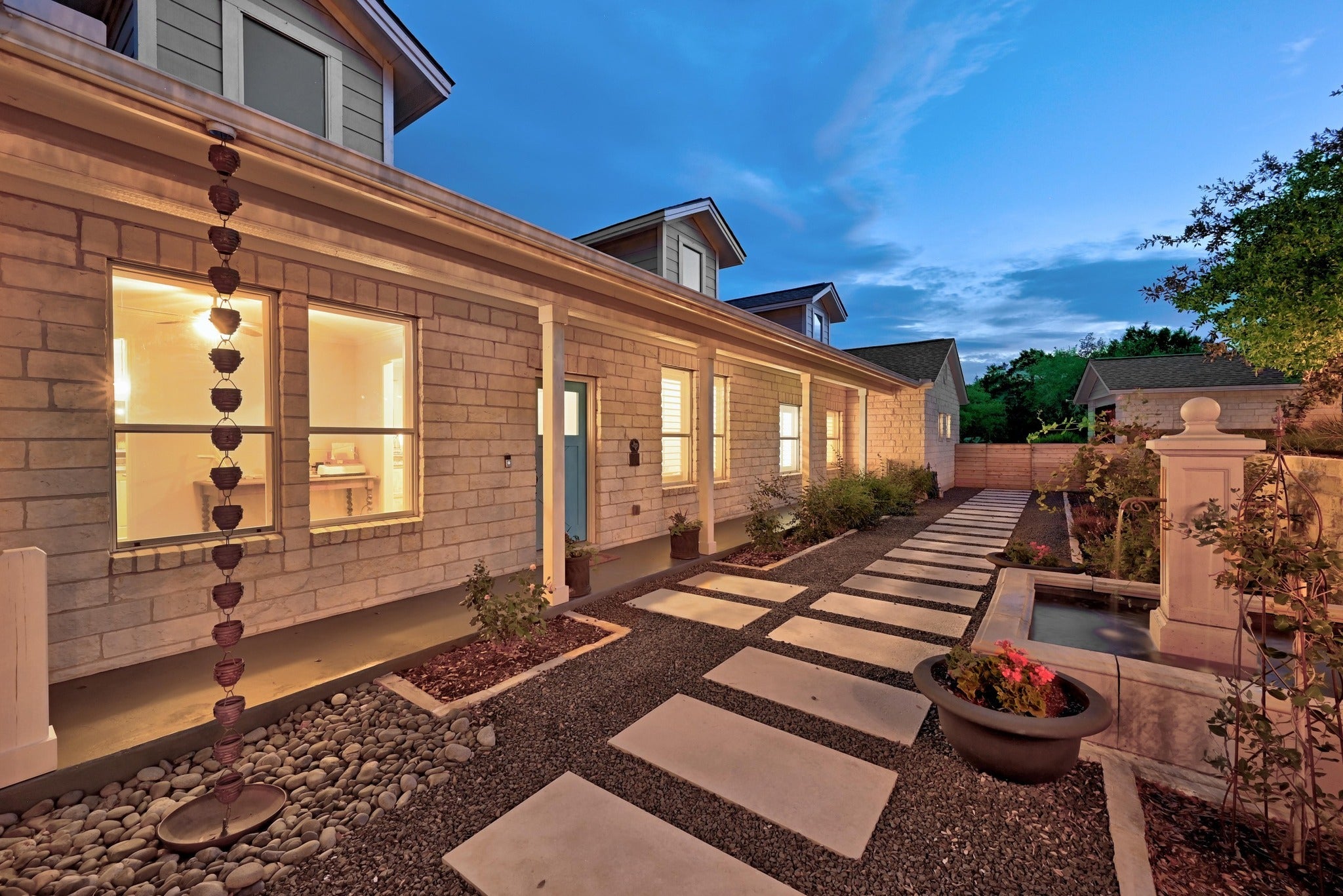 Single-story on 1.72 acres with VIEWS, POOL, and PRIVACY! Thoughtfully and meticulously UPDATED, this home is ready to move-in and begin enjoying. A stone path with a charming fountain leads to the covered front porch. Once inside, natural light fills the open layout and is complemented by a wall of windows that frames the VIEWS. The high-end chef’s kitchen features light cabinetry, honed marble counters, a farmhouse sink, wine fridge, and a commercial-grade 6-burner gas range with griddle and double ovens. The LARGE family room is anchored by a limestone fireplace while the private owner’s suite has everything - including a beautifully UPDATED BATHROOM with a floor-to-ceiling tiled shower, freestanding soaking tub, and spacious walk-in closet. An attached “zen den” makes an ideal spot for yoga, a nursery, or office. The guest/kids wing includes its own flex space, perfect for a playroom or secondary living. Two more rooms near the entry provide an additional home office, sitting area, or formal dining…one that can easily function as a fourth bedroom. Enjoy a true staycation in the resort-style backyard, complete with a QUARTZ-PLASTER POOL and splash pad. Native, easy-care landscaping blends seamlessly while features like a raised garden, potting shed, private well, and rainwater collection support both relaxation and functionality. A wet-weather creek at the back of the property adds to the natural charm for this outdoor lover’s paradise! There is no shortage of storage with a newly added “moody mudroom” which includes custom cabinetry and designer wallpaper. MORE storage in the oversized 3-car garage plus workshop and decked attic. The area is home to some of the region’s best hiking/biking and offering private access to Lake Travis for kayaking, paddleboarding, fishing, and boating. Ideally located near Bee Cave, you can reach Lakeway without ever getting on the highway, or head to Bee Cave and downtown Austin via nearby Hwy 71. Lake Travis ISD and LOW TAXES!