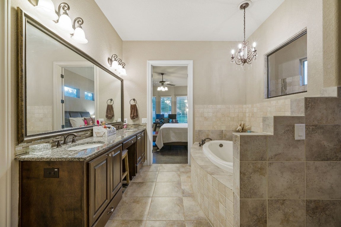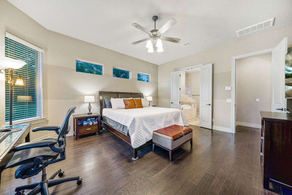 The seller of this property now has one of the most competitive price per SF metrics in this community for a home of it’s class and quality. For anyone seeking a great opportunity based on the math and recent relevant sales this is truly a great candidate. Nestled within the prestigious Gated Community of Copper Ridge, this captivating Jimmy Jacobs home is ready for its new owner- complete with exquisite straight line pool and mature oaks. Total square footage of Guest House and Main Home is 3218 per plans. From the moment you step inside this estate like property, you're greeted by beautiful, well-appointed spaces that effortlessly blend style and functionality. The heart of the home, the kitchen, boasts ample storage, adorned with granite countertops and a convenient breakfast bar, creating a perfect space for culinary endeavors and casual dining alike. Tucked away for ultimate privacy, the master suite invites relaxation with serene views of the backyard pool oasis and the trees behind the property creating a nice degree of privacy for outdoor living. Meanwhile, a versatile study or 4th bedroom at the front of the home offers flexibility to accommodate various lifestyles. Beyond the main residence, step outside to discover a haven of leisure and entertainment perfect for cooling off on warm summer days. This property is complete with separate guest house, offering unparalleled comfort and convenience. Boasting its own kitchen, bathroom, living room, and bedroom, it provides a private retreat for visitors or extended family members. Available for viewing upon second showings due to an elderly family member currently occupying the guest house. Completing this remarkable offering is a three-car garage, providing ample parking and storage space. Backyard actually has approximately 60 additional feet beyond the fence line for added backyard enjoyment.