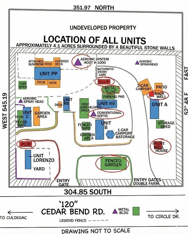 Charming Income-Producing Compound - Ideal for Investors or Owner-Occupants Property highlights include: • 4.1 Private Acres with 6+Rental Units including the Owner-Occupied Main House • Main home includes 3 bedroom/3.5 baths +- 2500 sq.ft with attached sunroom • Additionally, the Main Home offers two decks, a covered pavilion that backs to a wet weather creek and features a panoramic hill country view. • +-1 Acre of undeveloped land for expansion, where additional units could be added • 2 separate gated entries • Beautiful old, hand-stacked stone rock walls surrounding the perimeter of +- 3 acres • Two water wells • Blanco River Access for property owners (a 28-acre member only gated river park) • Full RV Hookups and Private Parking Area • Storage Buildings/Sheds • Plenty of individual parking areas • Community fenced garden area • Plenty of room to add a community pool and/or private pool • High-speed fiber internet available to all sites • Located on a quiet, cul-de-sac street Discover this delightful income-generating family compound, perfect for both investors and owner-occupants. The property boasts a total of six rented single-family dwellings and one rented RV space; each home site features private parking, inviting outdoor living spaces, individual patio or decks and several units have fenced yards ensuring tenant satisfaction year-round. Many of the units have been recently constructed or have undergone extensive updates/remodels and have been meticulously maintained to enhance the appeal of this family compound and/or income-producing property. The current income, including potential rent from the owner-occupied main residence and the other five structures plus RV Site, is approximately $8,500 monthly. Significant increase in potential revenue if used as short-term rentals. Please note that the square footage of the buildings is approximated and combined for all units.