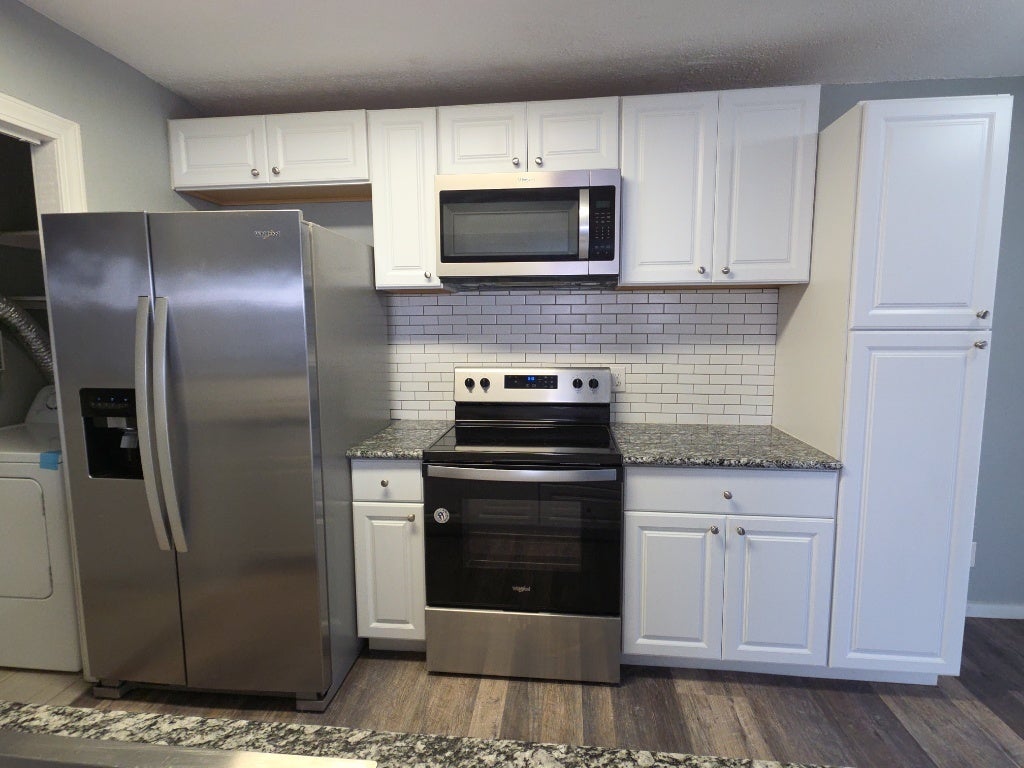 - Cooktop, Dryer, Dishwasher, Electric Cooktop, Electric Oven, Free-Standing Electric Range, Free-Standing Refrigerator, Disposal, Ice Maker, Microwave, Oven, Range, Refrigerator, Range Hood, Stainless Steel Appliance(s), Washer, Free-Standing Electric Oven
