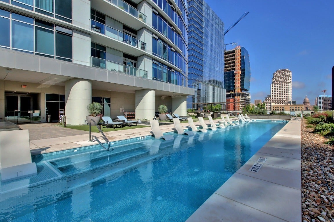 Experience elevated downtown living at The Austonian, Austin’s iconic 56-story luxury high-rise. This sophisticated 14th-floor residence offers 1 bedroom, 1.5 baths, and 1,225 square feet of thoughtfully designed space with sweeping city views and refined finishes throughout. Residents enjoy access to over 40,000 square feet of premier amenities spanning the 10th, 55th, and 56th floors—available day or night. Highlights include a 75-foot saltwater lap pool, spa with private treatment rooms, luxury cabanas, state-of-the-art fitness center, yoga and Pilates studio, wine cellar, library, billiard and game room, private movie theater, dog park with indoor grooming room, and 24-hour concierge service. An exceptional opportunity to live above it all in the heart of Austin, where world-class amenities and effortless urban convenience come together.