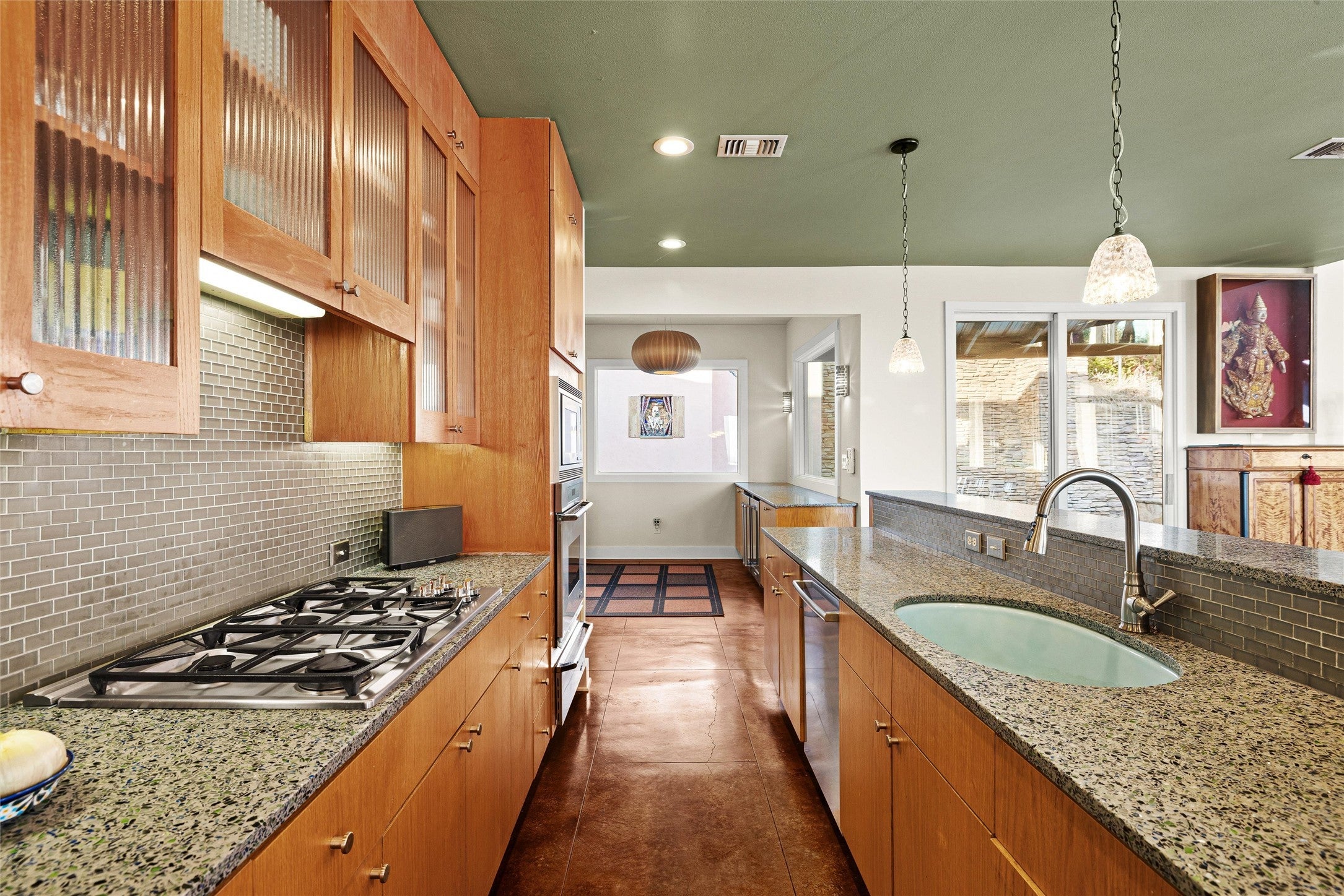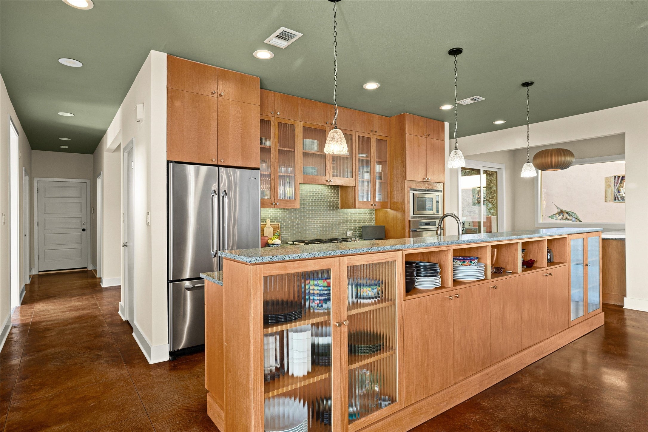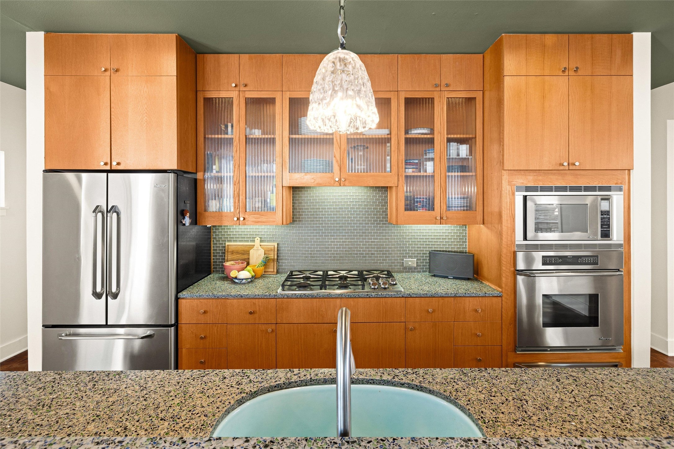 - Built-In Oven, Dryer, Dishwasher, Gas Cooktop, Disposal, Gas Water Heater, Microwave, Oven, Refrigerator, Stainless Steel Appliance(s), Wine Refrigerator, Washer