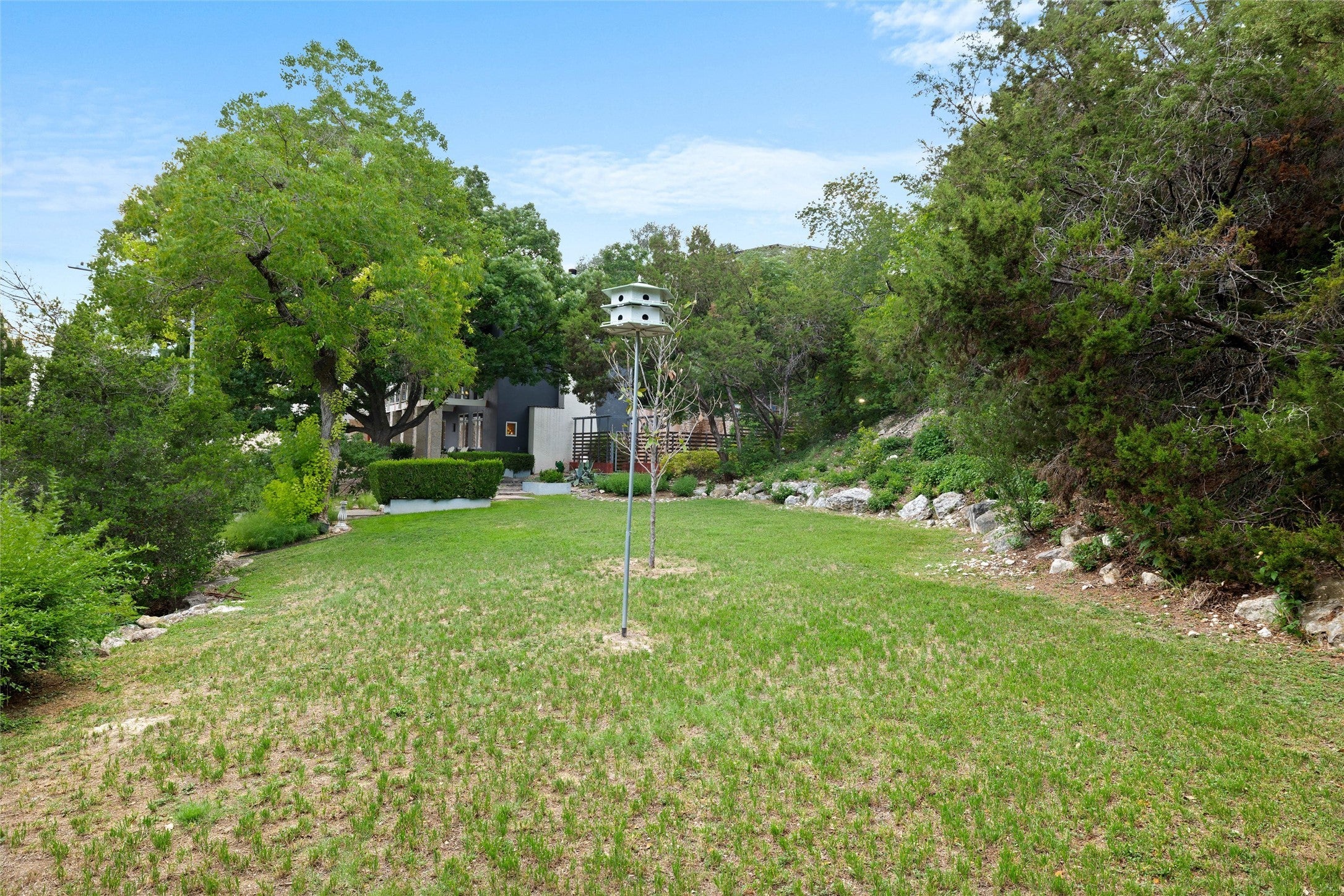 - Bluff, Back Yard, Front Yard, Landscaped, Native Plants, Rolling Slope, Many Trees, Sprinklers Automatic, Views