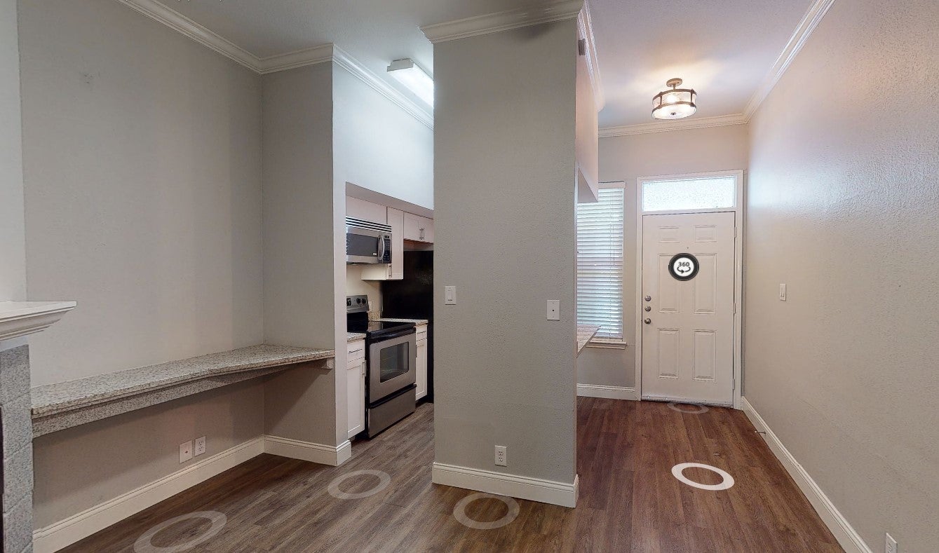 Gated Property, right off The Drag and across from UT Campus. Covered, gated parking included. Open kitchen, with breakfast counter and all appliances. Vinyl and tile flooring throughout. Full bathroom with garden tub and long bathroom vanity. Big window in bedroom, built in shelving dresser and a closet. Private washer & dryer included.
