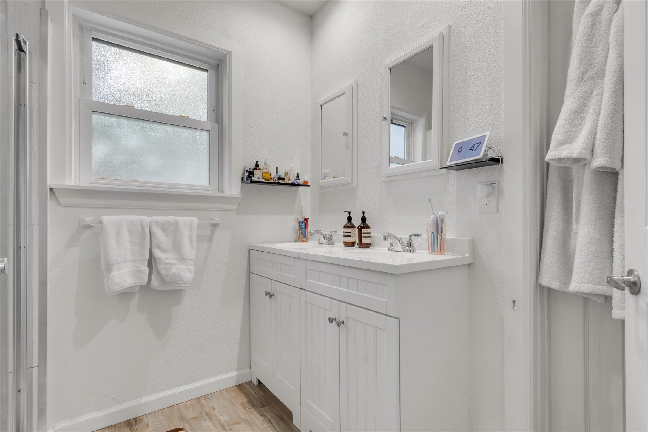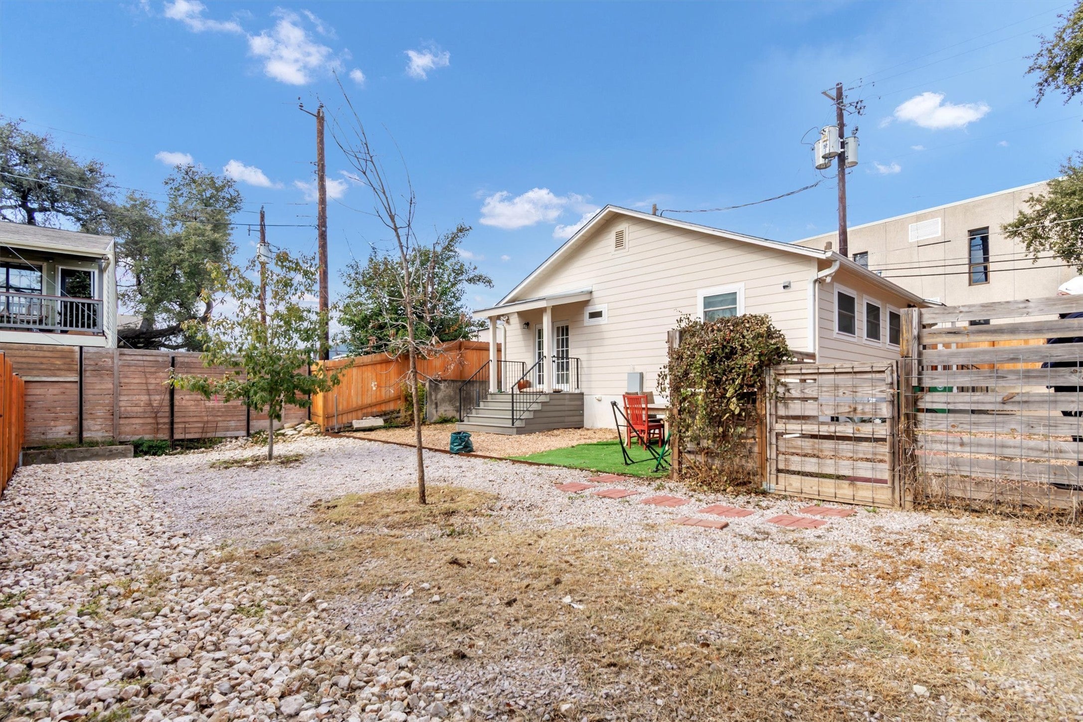 Charming 1934 Downtown Bungalow with Two Separate Living Dwellings for Approx. 2,160 SF Total This is a rare opportunity to own a beautifully preserved 1934 bungalow just steps from the heart of downtown Austin. This unique property offers two separate living dwellings, blending timeless character with modern functionality. The front/main residence spans approximately 1,160 square feet and features three bedrooms and two full bathrooms. Rich in historic charm and this home showcases original woodwork and classic architectural details that reflect the craftsmanship of the era. Includes modern updates like Central AC and ductwork, full size washer dryer, center island and lots of natural light. Tucked behind the main home, the secondary unit offers two bedrooms and two full bathrooms with an open-concept living area designed for modern living. Highlights include a center island, pendant lighting, contemporary finishes, and a full-size washer and dryer. Both units enjoy the convenience of their own one car garage, private enclosed yard spaces, and the added comfort of enhanced security with a custom wrought-iron gated entry with remote or code access for both vehicle and pedestrian entry to the property. This level of privacy and security is rarely found in downtown Austin. Located just one block from South Congress, with easy access to downtown shops, restaurants, entertainment, and the newly remodeled H-E-B on South 1st Street, this property sits in one of Austin’s most desirable and walkable neighborhoods. A fantastic investment opportunity to hold long term or owner occupy the front home while offsetting your mortgage with rental income from the back unit at strong market rental rates.